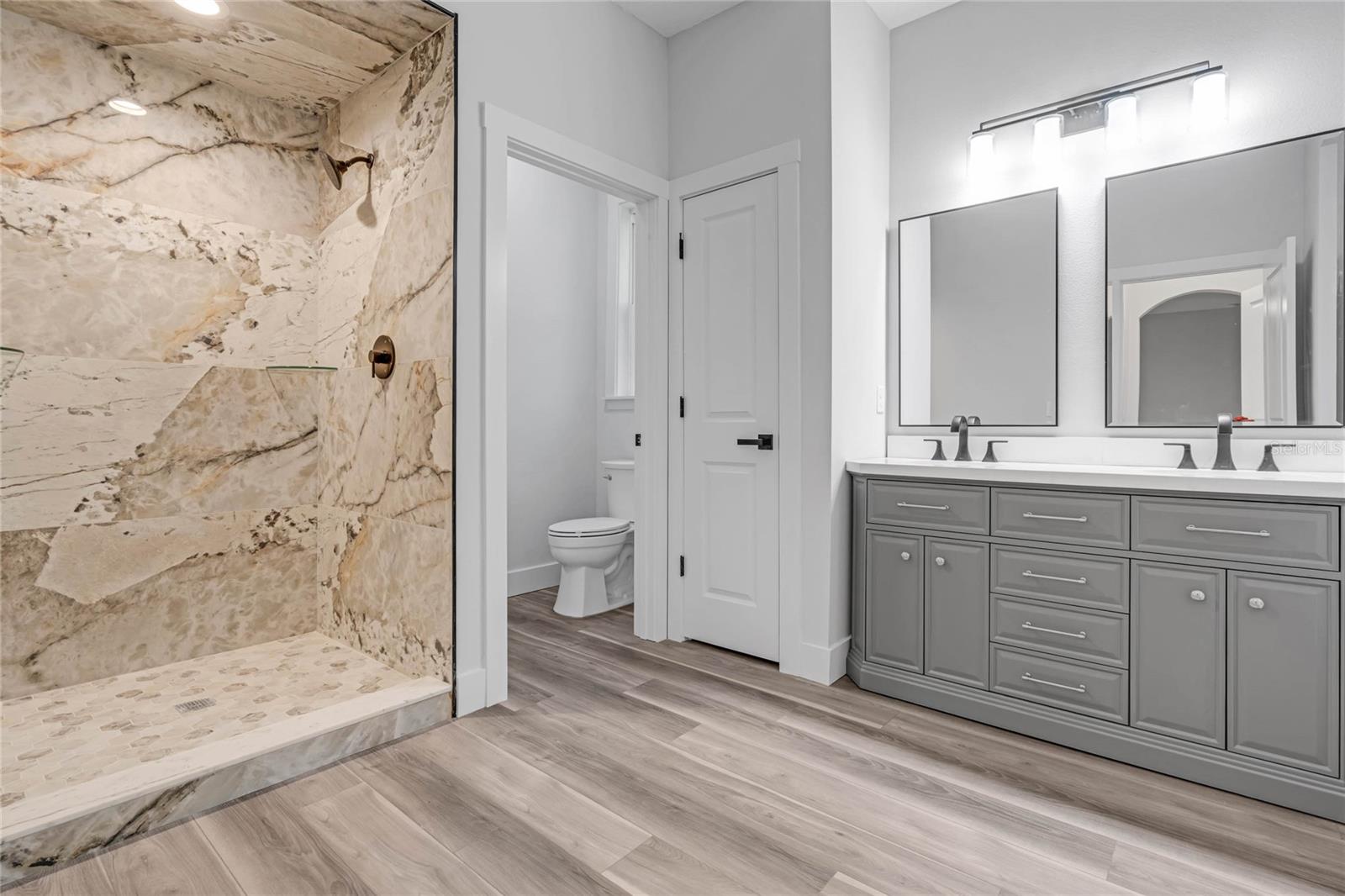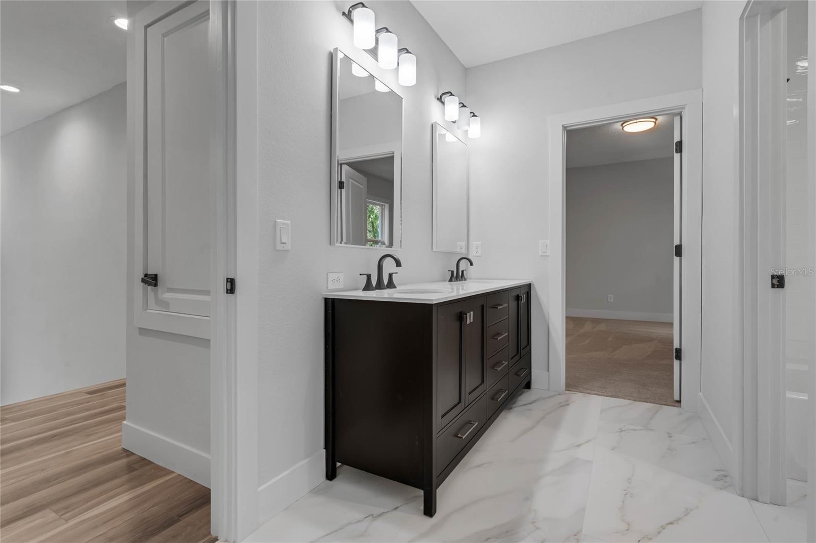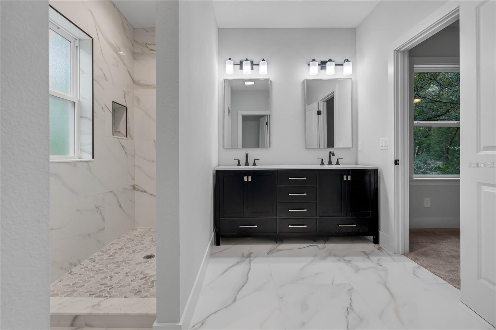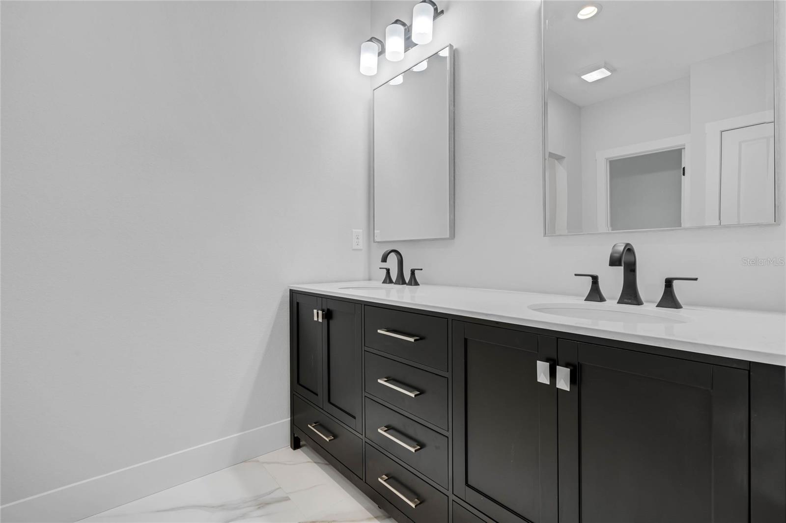 One or more photo(s) has been virtually staged. Welcome to the serene neighborhood of Mount Plymouth, where the essence of country living meets modern convenience. Nestled amidst the charm of this delightful community, this home presents a bespoke two-story, 5-bedroom, 3.5-bathroom residence designed to accommodate the needs of a growing family with style and functionality. This custom-built home stands as a testament to quality craftsmanship, with a sturdy concrete block construction spanning both floors, ensuring durability and peace of mind for years to come. As you step into the foyer, be greeted by soaring 20-foot ceilings, a grandeur that sets the tone for the elegance within. The formal dining room, adjacent to the entry, boasts a regal ambiance complemented by the expansive ceiling height. Throughout the home, attention to detail is evident, with 9-foot 4-inch flat ceilings gracing every room, adorned with refined 1 x 4 casing and 5¼-inch baseboards framing doors and windows. The heart of the home, the kitchen, and laundry areas, feature shaker-style cabinets adorned with 42-inch uppers and luxurious quartz countertops, offering both functionality and aesthetic appeal. A harmonious blend of flooring materials defines each space, with resilient luxury vinyl plank flooring adorning common areas, plush carpeting in the bedrooms, and elegant 24 x 48 porcelain tiles enhancing the bathrooms on the upper floor. Every fixture exudes quality, from Kohler to Price Pfister, ensuring a standard of excellence throughout the home. Designed for comfort and convenience, this residence boasts dual master bedrooms, each offering sanctuary and privacy. The generously sized bedrooms, provide ample space for relaxation and personalization. Meanwhile, the bathrooms showcase furniture-style vanities with double sinks and exquisite quartz countertops, adding a touch of luxury to daily routines. With an eye toward efficiency and sustainability, this home is thoughtfully equipped to minimize future maintenance and monthly living costs. The exterior is adorned with Behr Marquis paint, while the vinyl bead board ceilings in the entry and rear porch exude timeless charm. A Carrier unit with a zone system ensures customizable comfort on each floor, while an 80-gallon hybrid water heater offers both energy efficiency and convenience. Outdoor living is embraced with open arms, thanks to PVC porch railings with steel balusters and a lush St. Augustine grass lawn irrigated by a well, eliminating the need for a city water bill. Ample parking ensures convenience for residents and guests alike, completing the picture of effortless living in this idyllic countryside retreat. Welcome home, where thoughtful design, superior craftsmanship, and modern amenities converge to create a haven for anyone seeking the perfect blend of comfort and style.