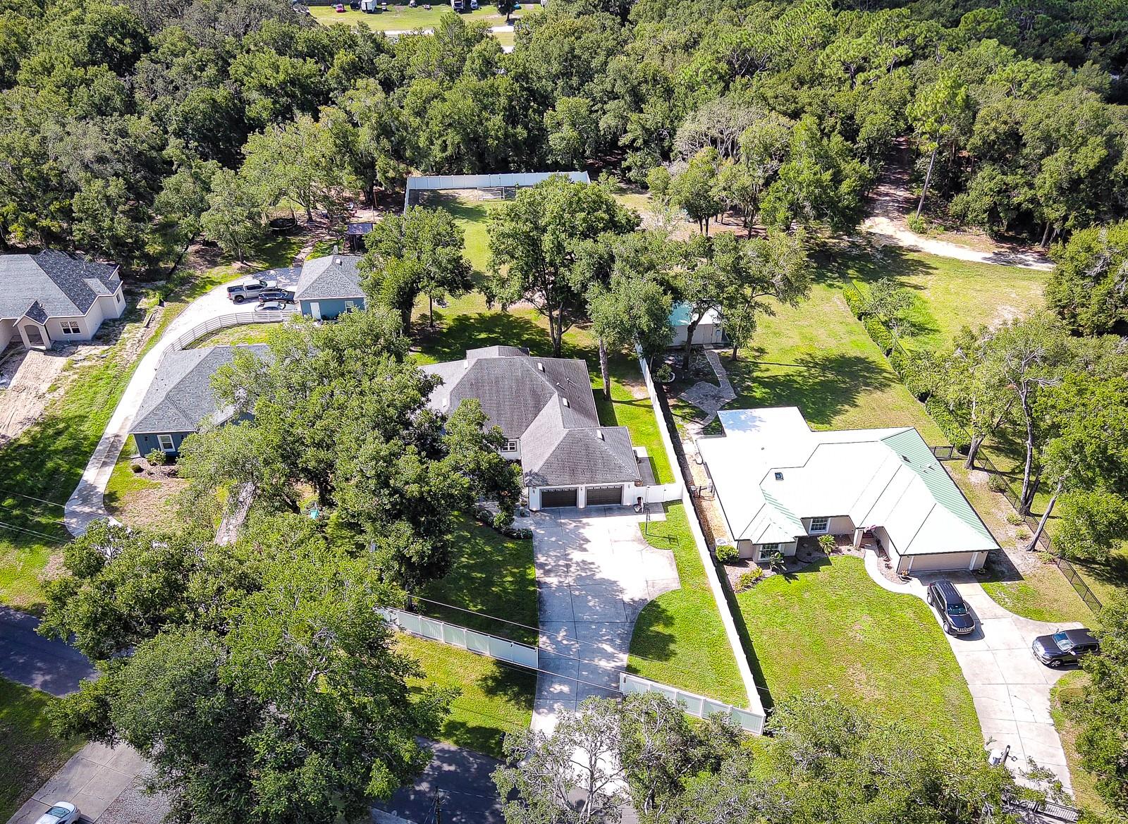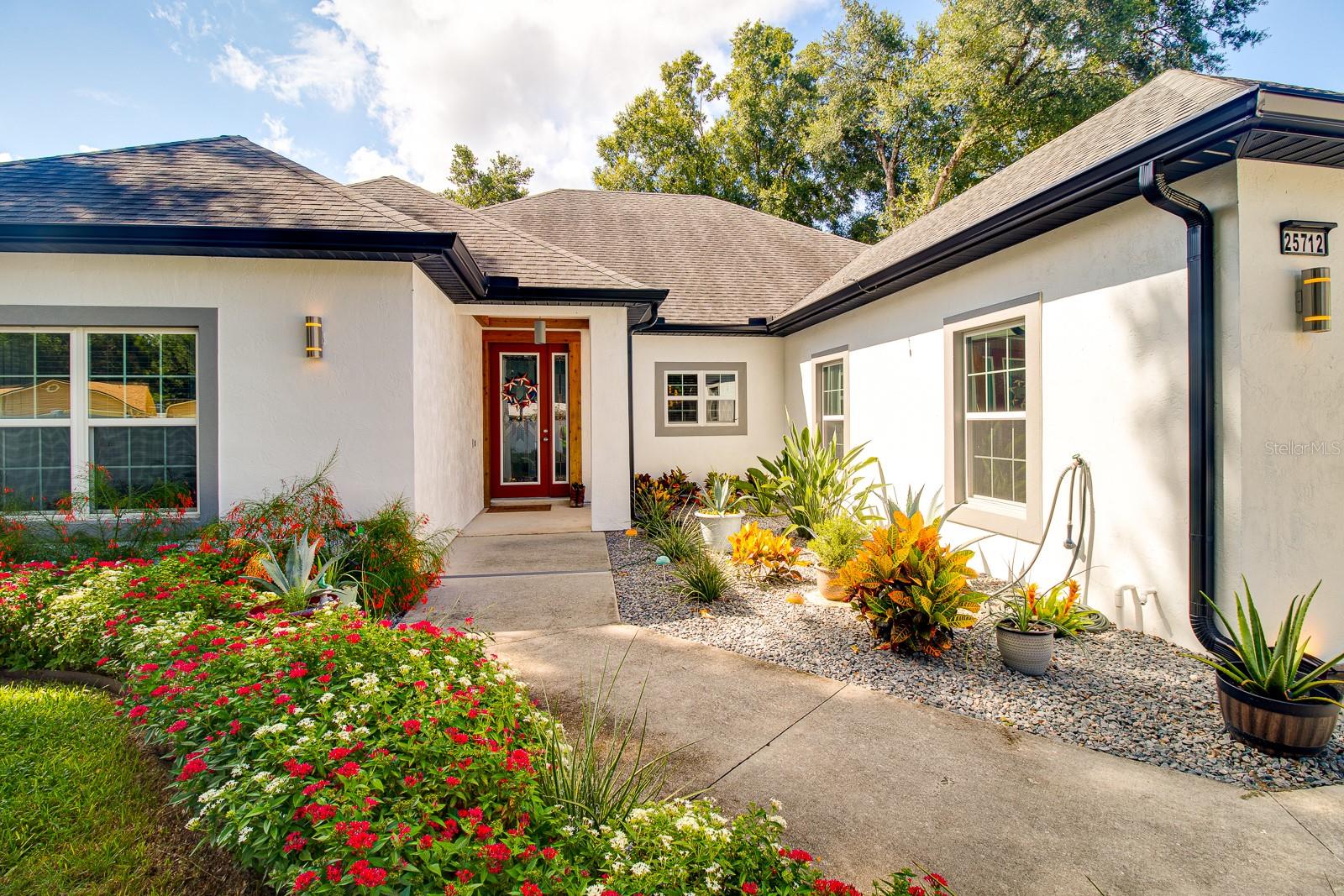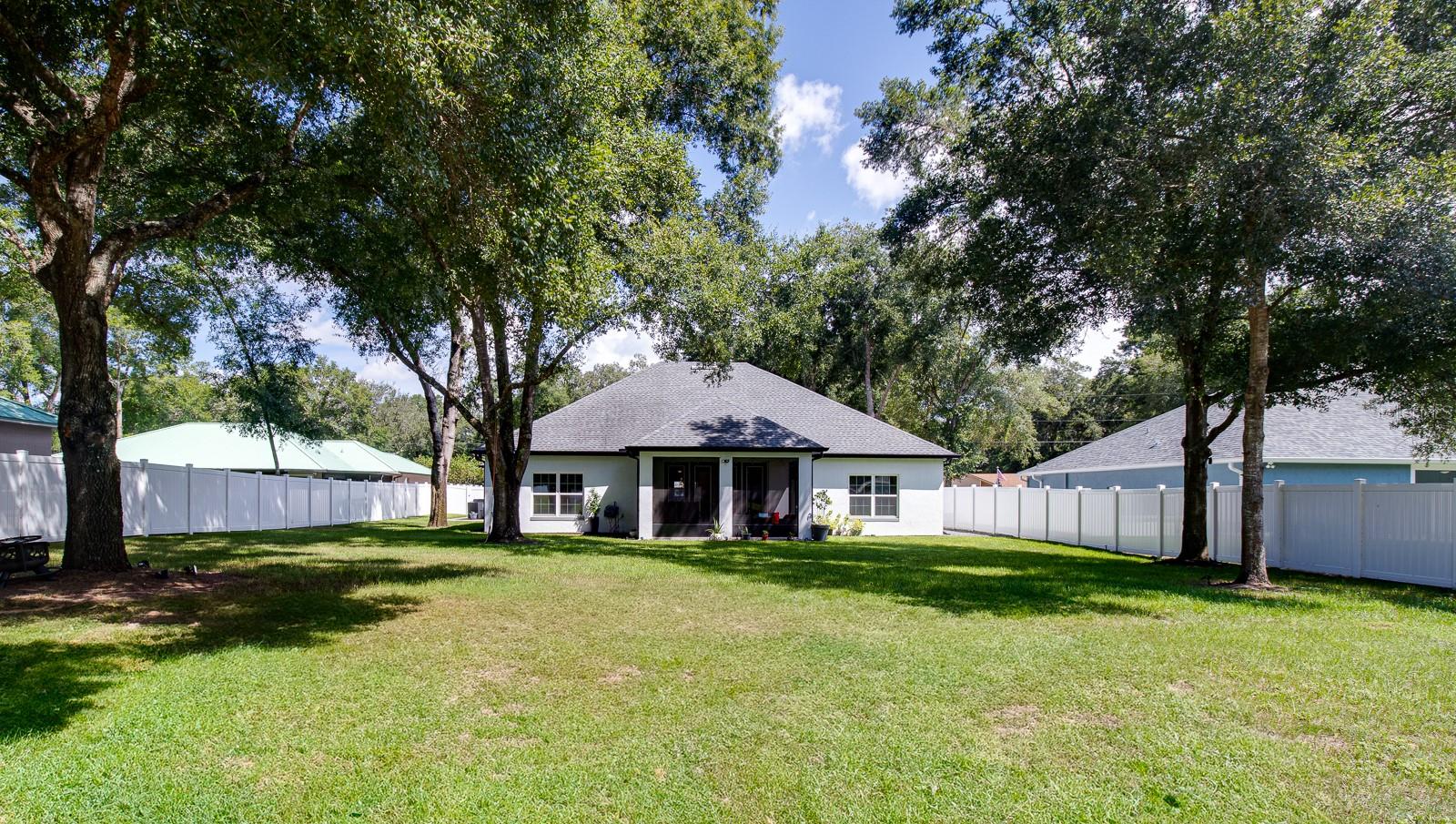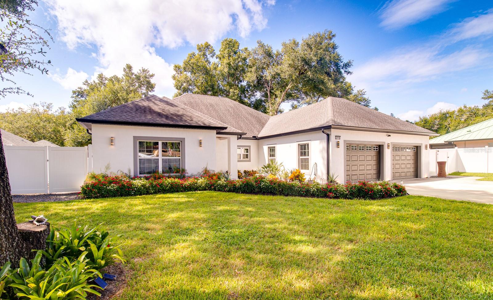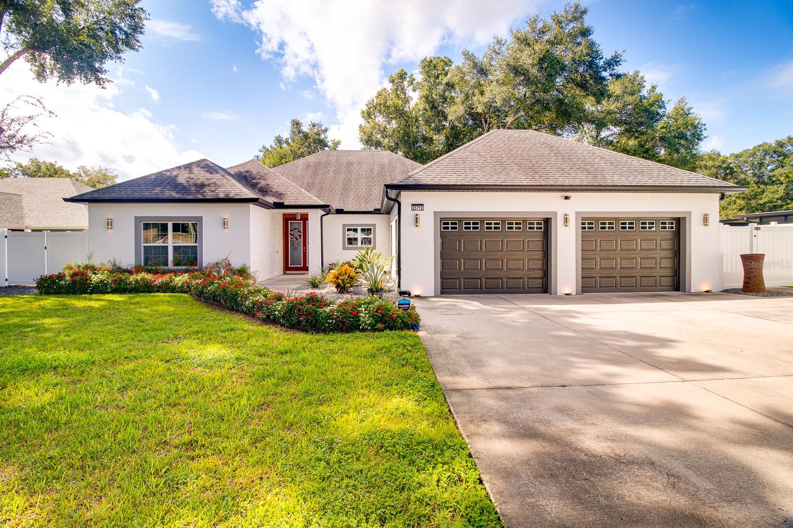 Welcome Home to this Stunning custom home on over 3/4 of an acre and shows proud ownership the minute you arrive with so much attention to details and loaded with high end features. Upon entering the home you will notice the beautiful engineered hardwood flooring, soaring ceilings and double crown moulding. The kitchen, is at the center of this amazing home, is truly a chef's dream. Designed with multiple cooks in mind, it contains two workstations, each with their own farmhouse sink, top of the line whisper quiet stainless steel appliances, a Mercury 48" range with induction stove top, two full size convection ovens and separate broiler, direct vented hood, double stacked cabinets with glass inserts, drawers for all the lower cabinets and granite countertops. The huge 7' by 3' center island offers great prep space and extra seating. The kitchen is open to the living, dining and outdoor screened in porch, providing for easy entertaining for all your family and friends. Private Double Master suites flank each side of the living room. Each wing contains its own en suite bathroom, equipped with stylish porcelain tile, double vanities with granite counters, bluetooth lighted mirrors and a huge handicap accessible shower with body jets and rain-head shower. There is an extra deep soaking tub for relaxing after a long days work in one master, the other bathroom is plumbed and wired for a jetted tub. Each wing also contains large walk-in closets with built-in shelving. The third bedroom and third bathroom are located near the front of the home. Other custom features include 3 separate heating and cooling zones, whole house water filtration, energy efficient LED lighting, fire suppression sprinkler system ,tankless hot water heater,3 Ring security cameras plus a solar powered entry gate security camera, brand new exterior and all interior paint , LED lighted custom tray ceiling in Living room, new irrigation system, custom solar landscape lighting, oak trees professionally canopied, high impact double paned windows, custom blinds and privacy tint just to name a few. Oversized garage with a Versa lift attic storage lifting system and extra long driveway with an in-ground adjustable basketball hoop that can accommodate multiple vehicles with extra parking in the back for storing a boat or RV. Plenty of space in the large fully fenced in property with gate to add a pool or outbuilding. Perfect location for those looking for privacy but want convenient access to all the amenities Lake County and surrounding areas has. Don't miss this one and Schedule your showing today for this fabulous home!
