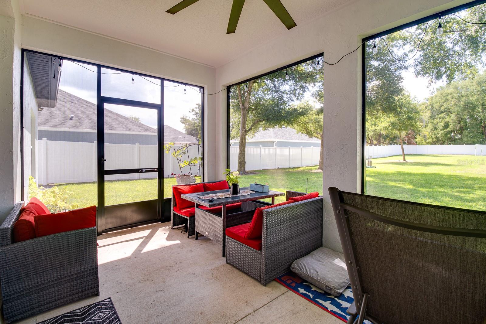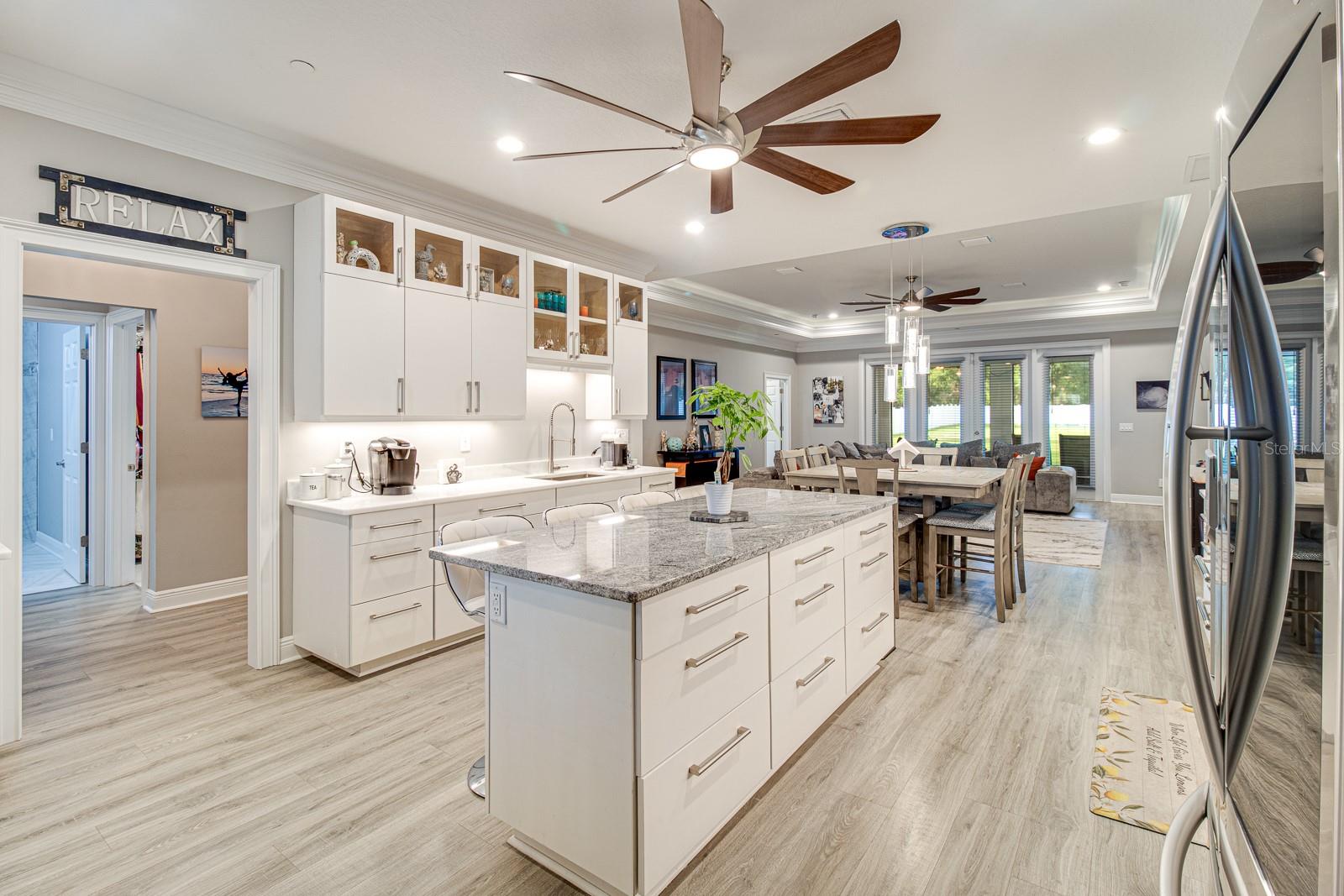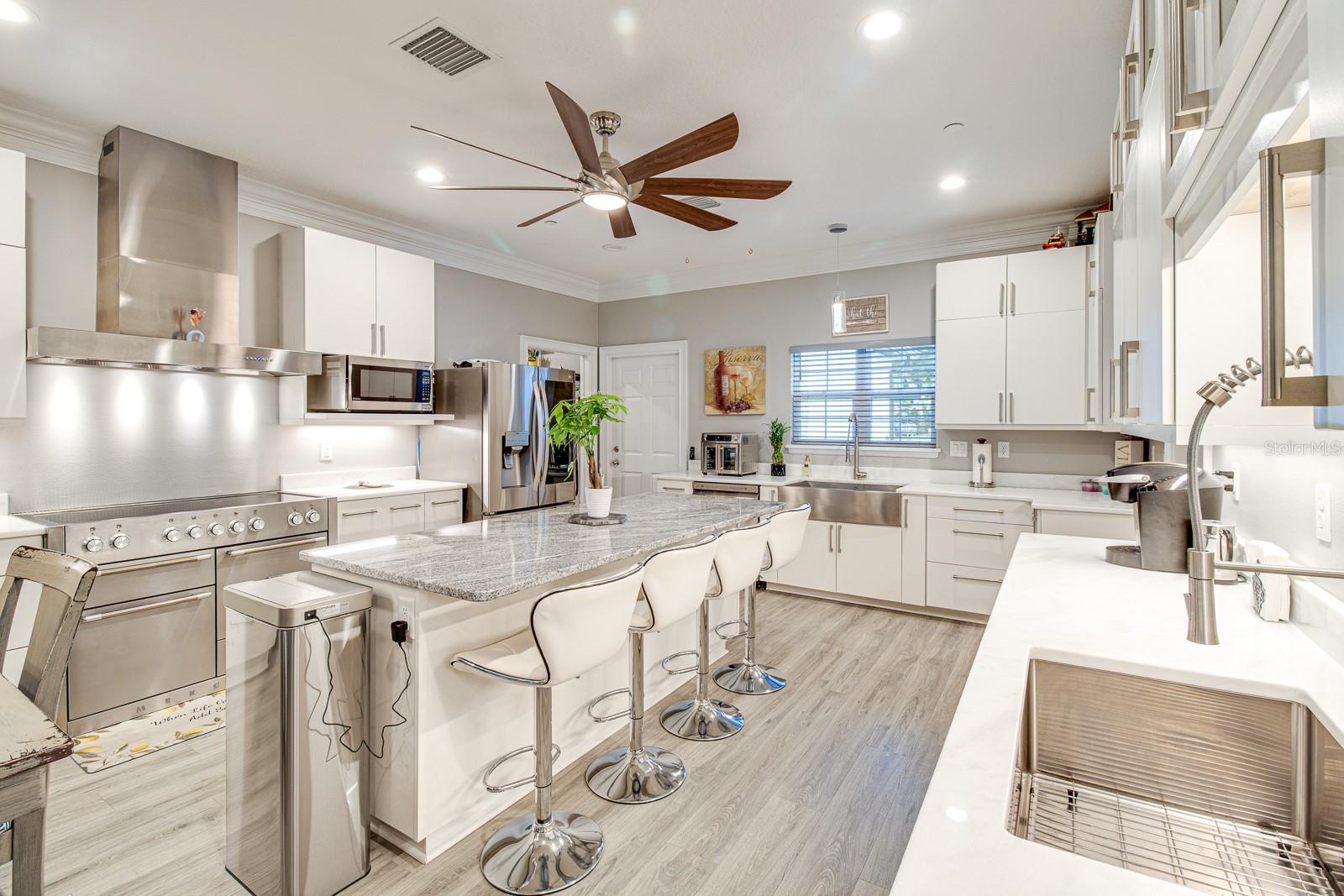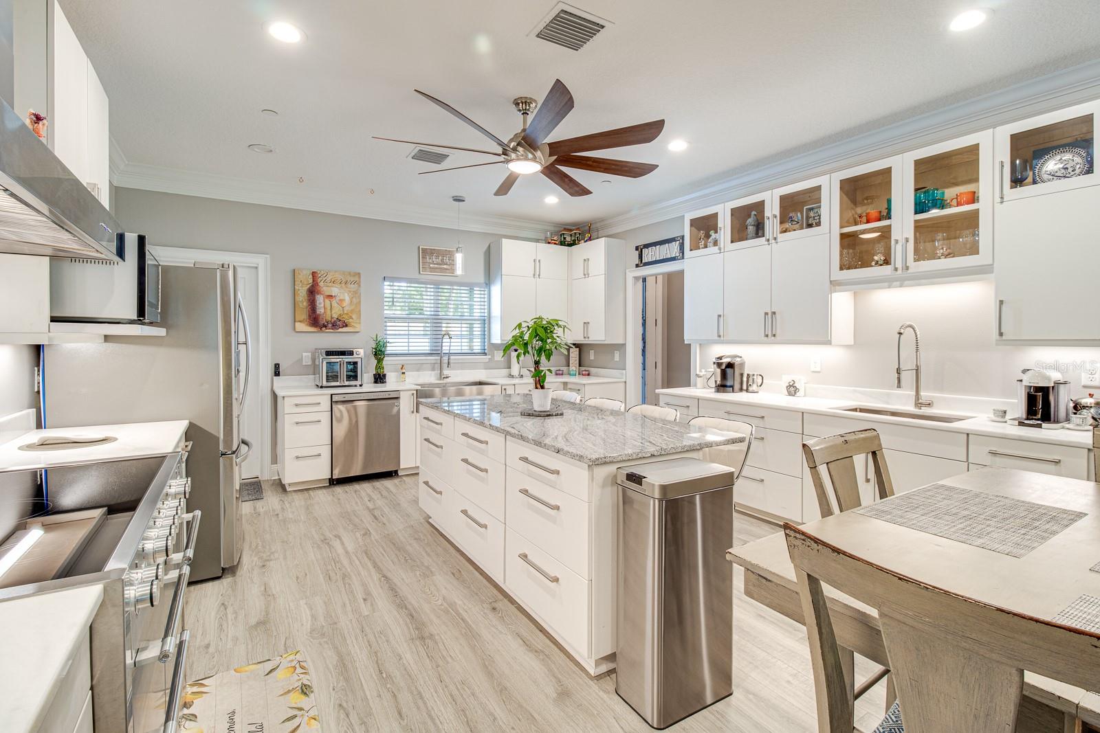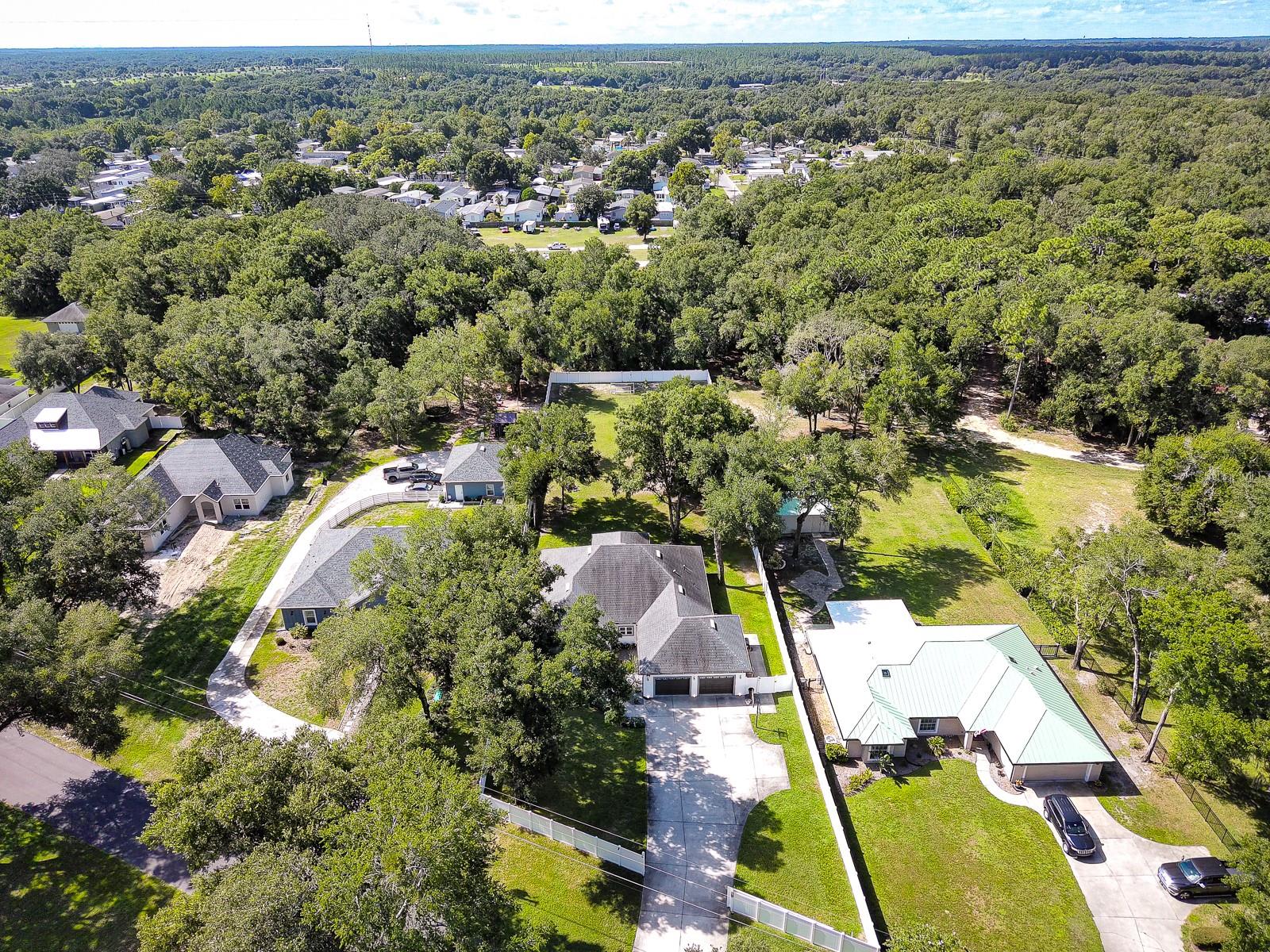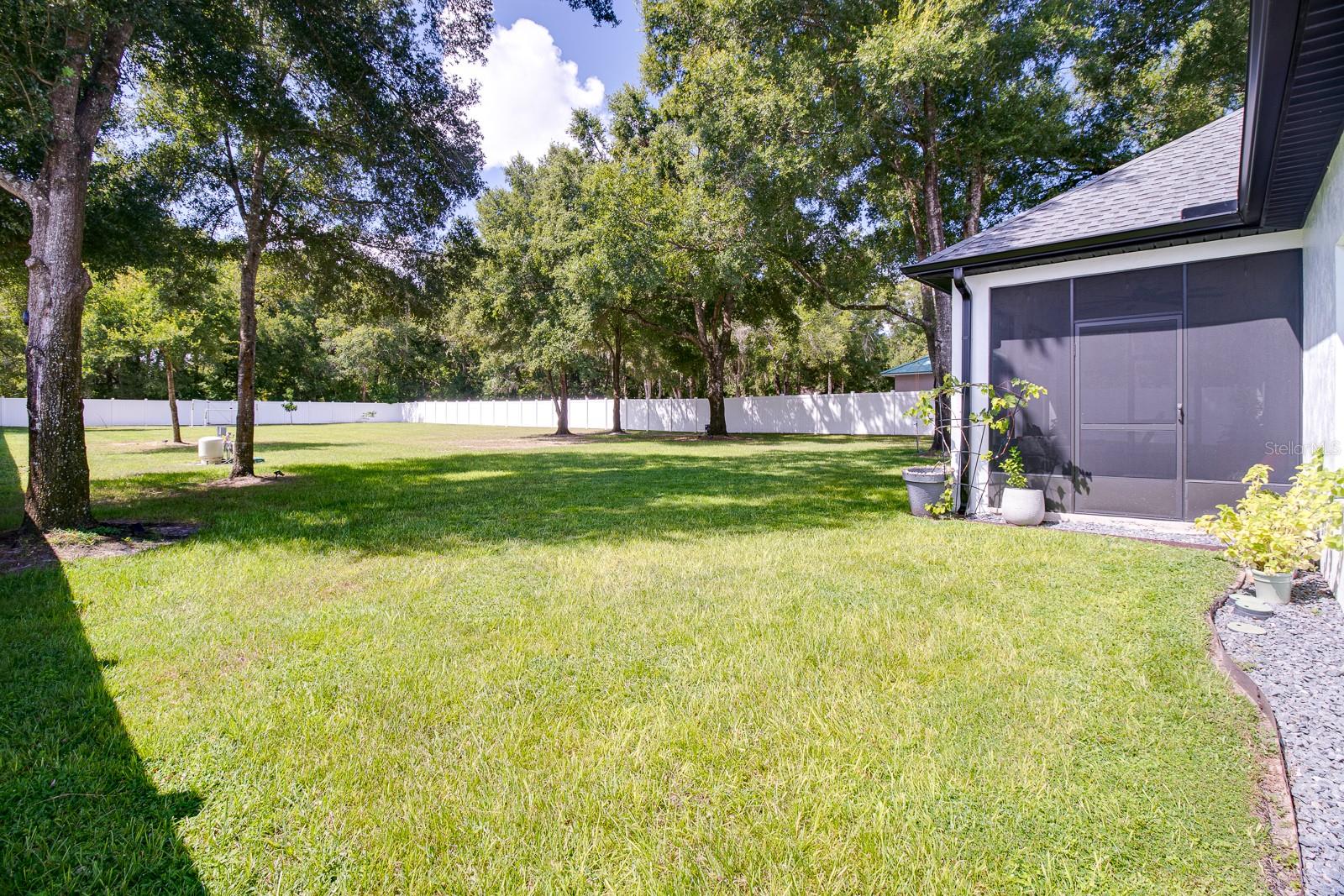 Welcome Home to this Stunning custom home on over 3/4 of an acre and shows proud ownership the minute you arrive with so much attention to details and loaded with high end features. Upon entering the home you will notice the beautiful engineered hardwood flooring, soaring ceilings and double crown moulding. The kitchen, is at the center of this amazing home, is truly a chef's dream. Designed with multiple cooks in mind, it contains two workstations, each with their own farmhouse sink, top of the line whisper quiet stainless steel appliances, a Mercury 48" range with induction stove top, two full size convection ovens and separate broiler, direct vented hood, double stacked cabinets with glass inserts, drawers for all the lower cabinets and granite countertops. The huge 7' by 3' center island offers great prep space and extra seating. The kitchen is open to the living, dining and outdoor screened in porch, providing for easy entertaining for all your family and friends. Private Double Master suites flank each side of the living room. Each wing contains its own en suite bathroom, equipped with stylish porcelain tile, double vanities with granite counters, bluetooth lighted mirrors and a huge handicap accessible shower with body jets and rain-head shower. There is an extra deep soaking tub for relaxing after a long days work in one master, the other bathroom is plumbed and wired for a jetted tub. Each wing also contains large walk-in closets with built-in shelving. The third bedroom and third bathroom are located near the front of the home. Other custom features include 3 separate heating and cooling zones, whole house water filtration, energy efficient LED lighting, fire suppression sprinkler system ,tankless hot water heater,3 Ring security cameras plus a solar powered entry gate security camera, brand new exterior and all interior paint , LED lighted custom tray ceiling in Living room, new irrigation system, custom solar landscape lighting, oak trees professionally canopied, high impact double paned windows, custom blinds and privacy tint just to name a few. Oversized garage with a Versa lift attic storage lifting system and extra long driveway with an in-ground adjustable basketball hoop that can accommodate multiple vehicles with extra parking in the back for storing a boat or RV. Plenty of space in the large fully fenced in property with gate to add a pool or outbuilding. Perfect location for those looking for privacy but want convenient access to all the amenities Lake County and surrounding areas has. Don't miss this one and Schedule your showing today for this fabulous home!