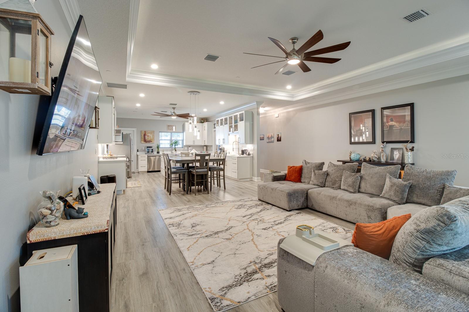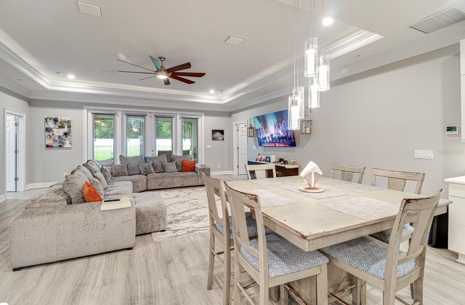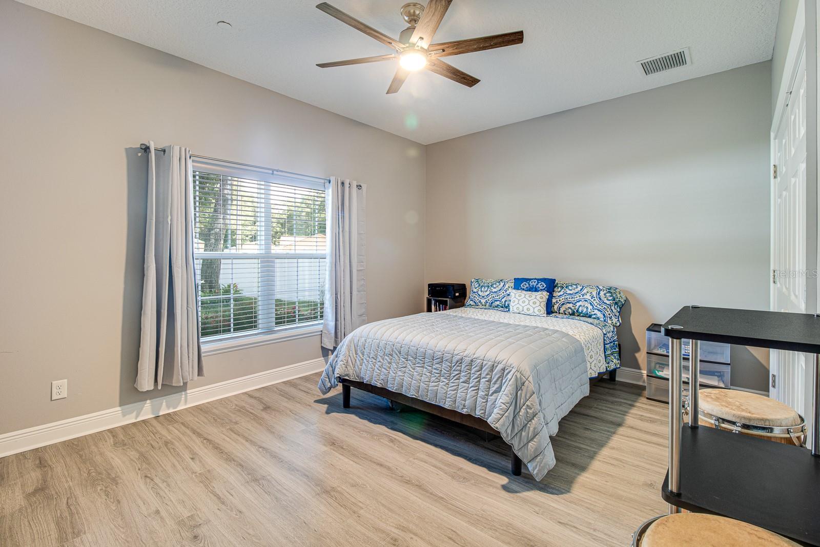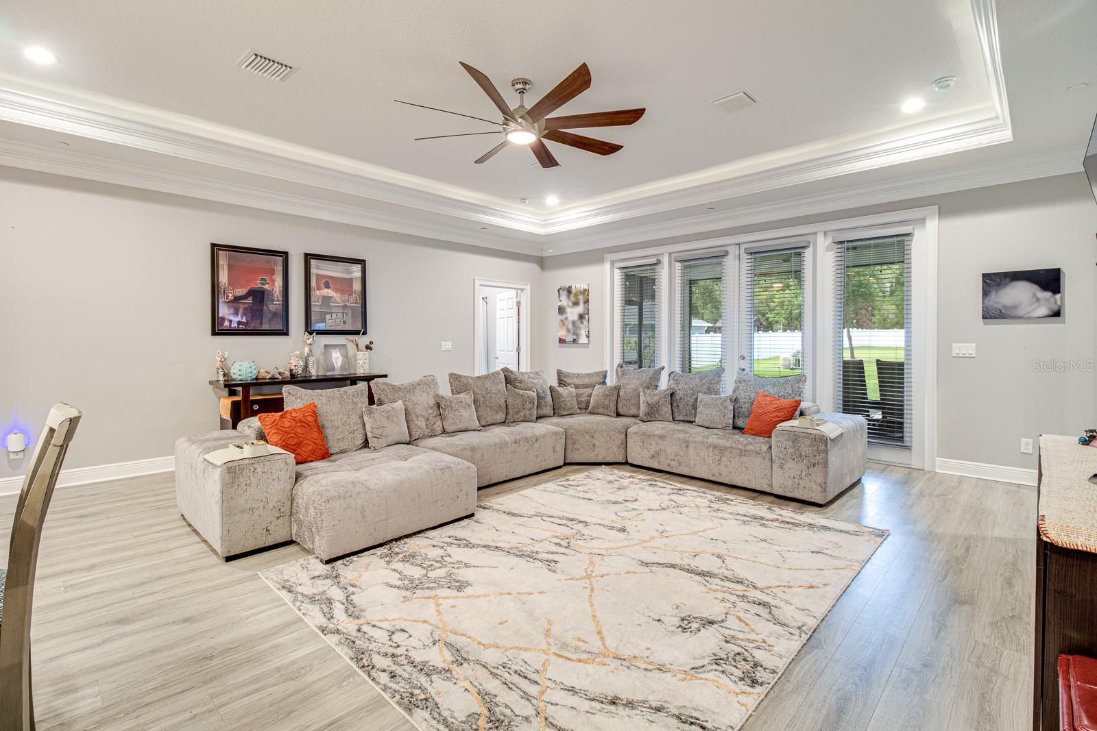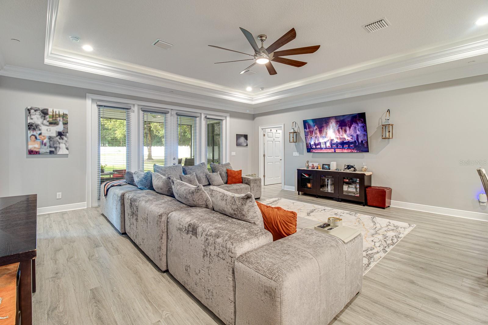 Welcome Home to this Stunning custom home on over 3/4 of an acre and shows proud ownership the minute you arrive with so much attention to details and loaded with high end features. Upon entering the home you will notice the beautiful engineered hardwood flooring, soaring ceilings and double crown moulding. The kitchen, is at the center of this amazing home, is truly a chef's dream. Designed with multiple cooks in mind, it contains two workstations, each with their own farmhouse sink, top of the line whisper quiet stainless steel appliances, a Mercury 48" range with induction stove top, two full size convection ovens and separate broiler, direct vented hood, double stacked cabinets with glass inserts, drawers for all the lower cabinets and granite countertops. The huge 7' by 3' center island offers great prep space and extra seating. The kitchen is open to the living, dining and outdoor screened in porch, providing for easy entertaining for all your family and friends. Private Double Master suites flank each side of the living room. Each wing contains its own en suite bathroom, equipped with stylish porcelain tile, double vanities with granite counters, bluetooth lighted mirrors and a huge handicap accessible shower with body jets and rain-head shower. There is an extra deep soaking tub for relaxing after a long days work in one master, the other bathroom is plumbed and wired for a jetted tub. Each wing also contains large walk-in closets with built-in shelving. The third bedroom and third bathroom are located near the front of the home. Other custom features include 3 separate heating and cooling zones, whole house water filtration, energy efficient LED lighting, fire suppression sprinkler system ,tankless hot water heater,3 Ring security cameras plus a solar powered entry gate security camera, brand new exterior and all interior paint , LED lighted custom tray ceiling in Living room, new irrigation system, custom solar landscape lighting, oak trees professionally canopied, high impact double paned windows, custom blinds and privacy tint just to name a few. Oversized garage with a Versa lift attic storage lifting system and extra long driveway with an in-ground adjustable basketball hoop that can accommodate multiple vehicles with extra parking in the back for storing a boat or RV. Plenty of space in the large fully fenced in property with gate to add a pool or outbuilding. Perfect location for those looking for privacy but want convenient access to all the amenities Lake County and surrounding areas has. Don't miss this one and Schedule your showing today for this fabulous home!