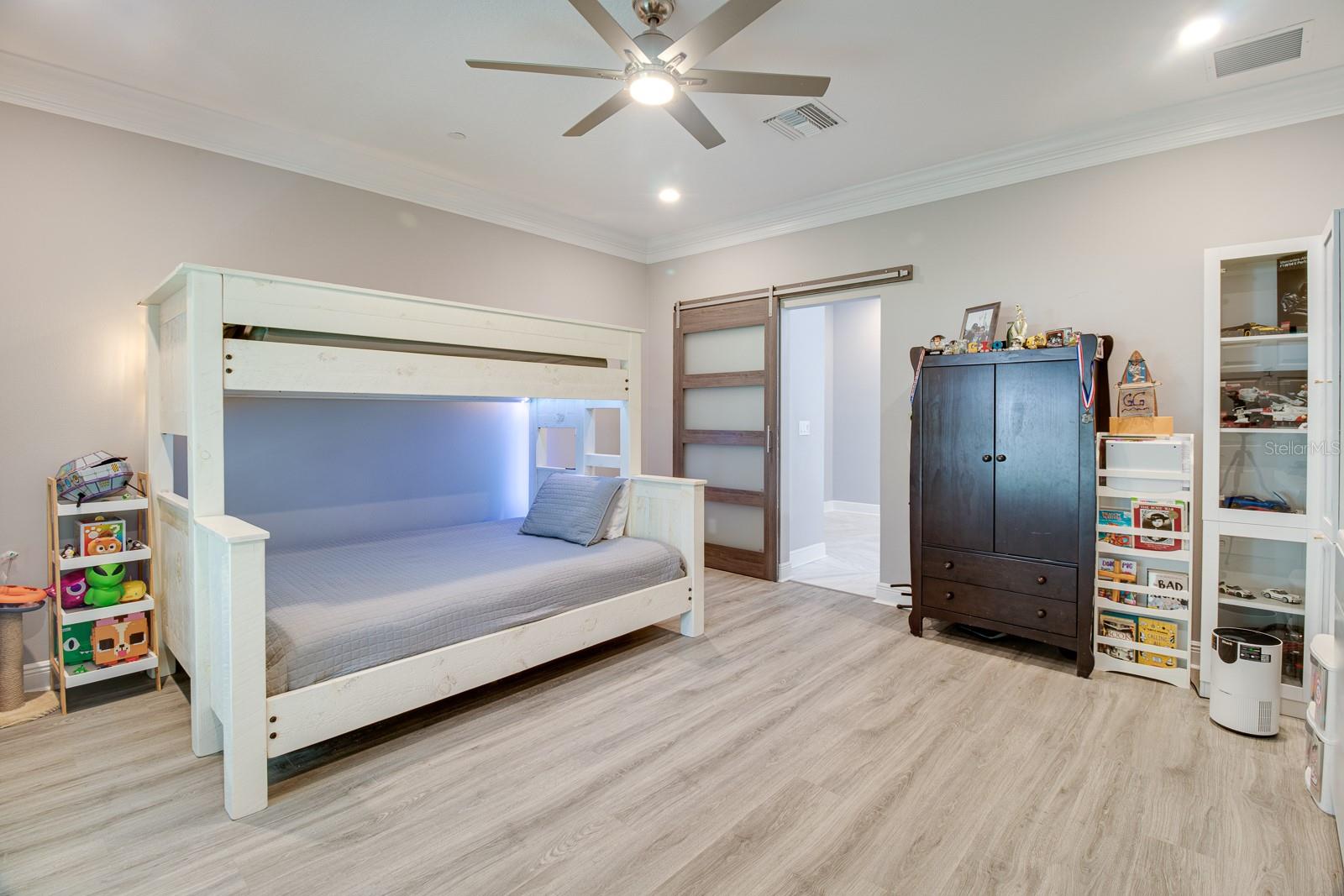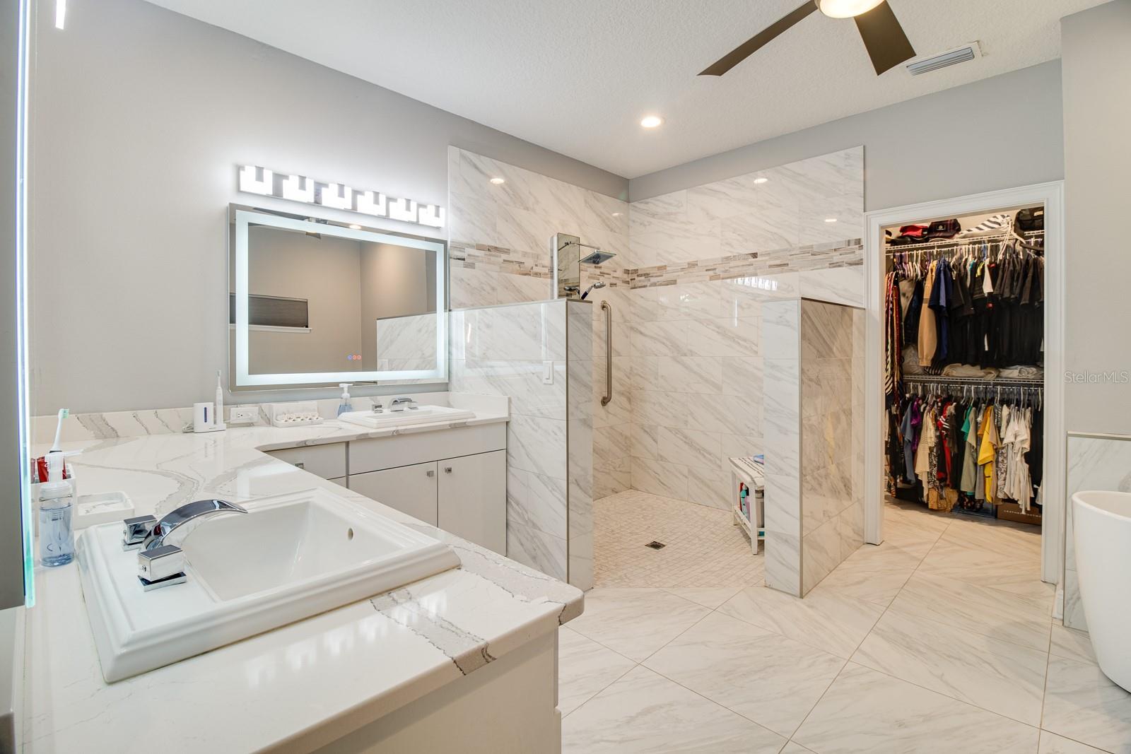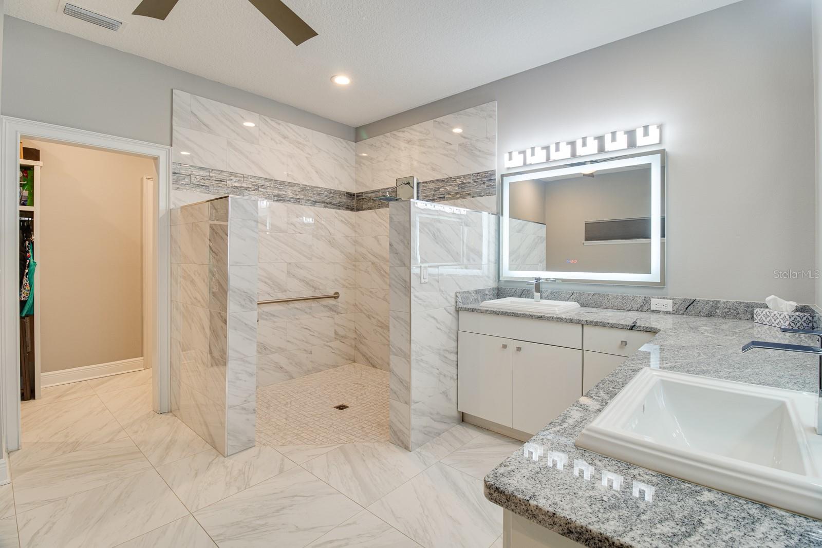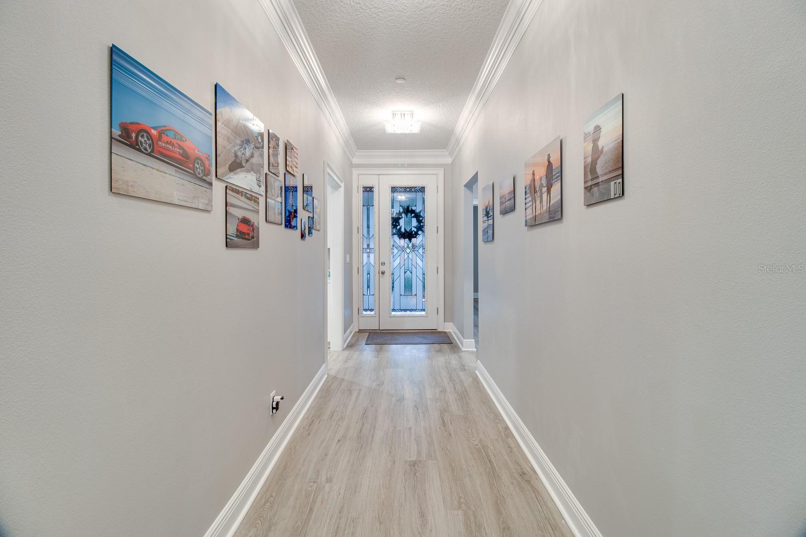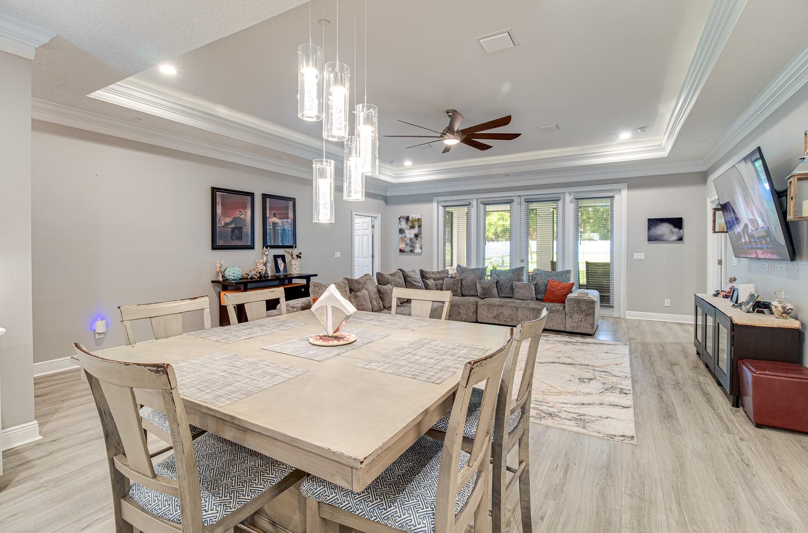 Welcome Home to this Stunning custom home on over 3/4 of an acre and shows proud ownership the minute you arrive with so much attention to details and loaded with high end features. Upon entering the home you will notice the beautiful engineered hardwood flooring, soaring ceilings and double crown moulding. The kitchen, is at the center of this amazing home, is truly a chef's dream. Designed with multiple cooks in mind, it contains two workstations, each with their own farmhouse sink, top of the line whisper quiet stainless steel appliances, a Mercury 48" range with induction stove top, two full size convection ovens and separate broiler, direct vented hood, double stacked cabinets with glass inserts, drawers for all the lower cabinets and granite countertops. The huge 7' by 3' center island offers great prep space and extra seating. The kitchen is open to the living, dining and outdoor screened in porch, providing for easy entertaining for all your family and friends. Private Double Master suites flank each side of the living room. Each wing contains its own en suite bathroom, equipped with stylish porcelain tile, double vanities with granite counters, bluetooth lighted mirrors and a huge handicap accessible shower with body jets and rain-head shower. There is an extra deep soaking tub for relaxing after a long days work in one master, the other bathroom is plumbed and wired for a jetted tub. Each wing also contains large walk-in closets with built-in shelving. The third bedroom and third bathroom are located near the front of the home. Other custom features include 3 separate heating and cooling zones, whole house water filtration, energy efficient LED lighting, fire suppression sprinkler system ,tankless hot water heater,3 Ring security cameras plus a solar powered entry gate security camera, brand new exterior and all interior paint , LED lighted custom tray ceiling in Living room, new irrigation system, custom solar landscape lighting, oak trees professionally canopied, high impact double paned windows, custom blinds and privacy tint just to name a few. Oversized garage with a Versa lift attic storage lifting system and extra long driveway with an in-ground adjustable basketball hoop that can accommodate multiple vehicles with extra parking in the back for storing a boat or RV. Plenty of space in the large fully fenced in property with gate to add a pool or outbuilding. Perfect location for those looking for privacy but want convenient access to all the amenities Lake County and surrounding areas has. Don't miss this one and Schedule your showing today for this fabulous home!