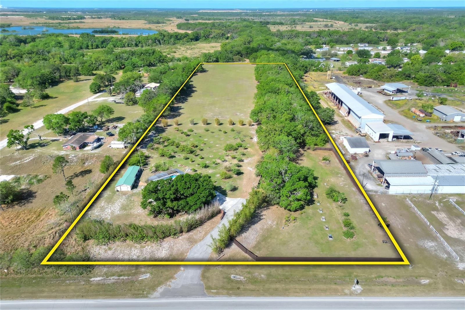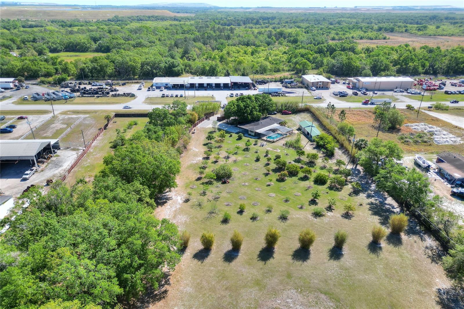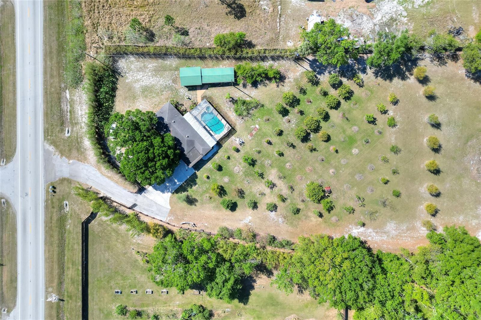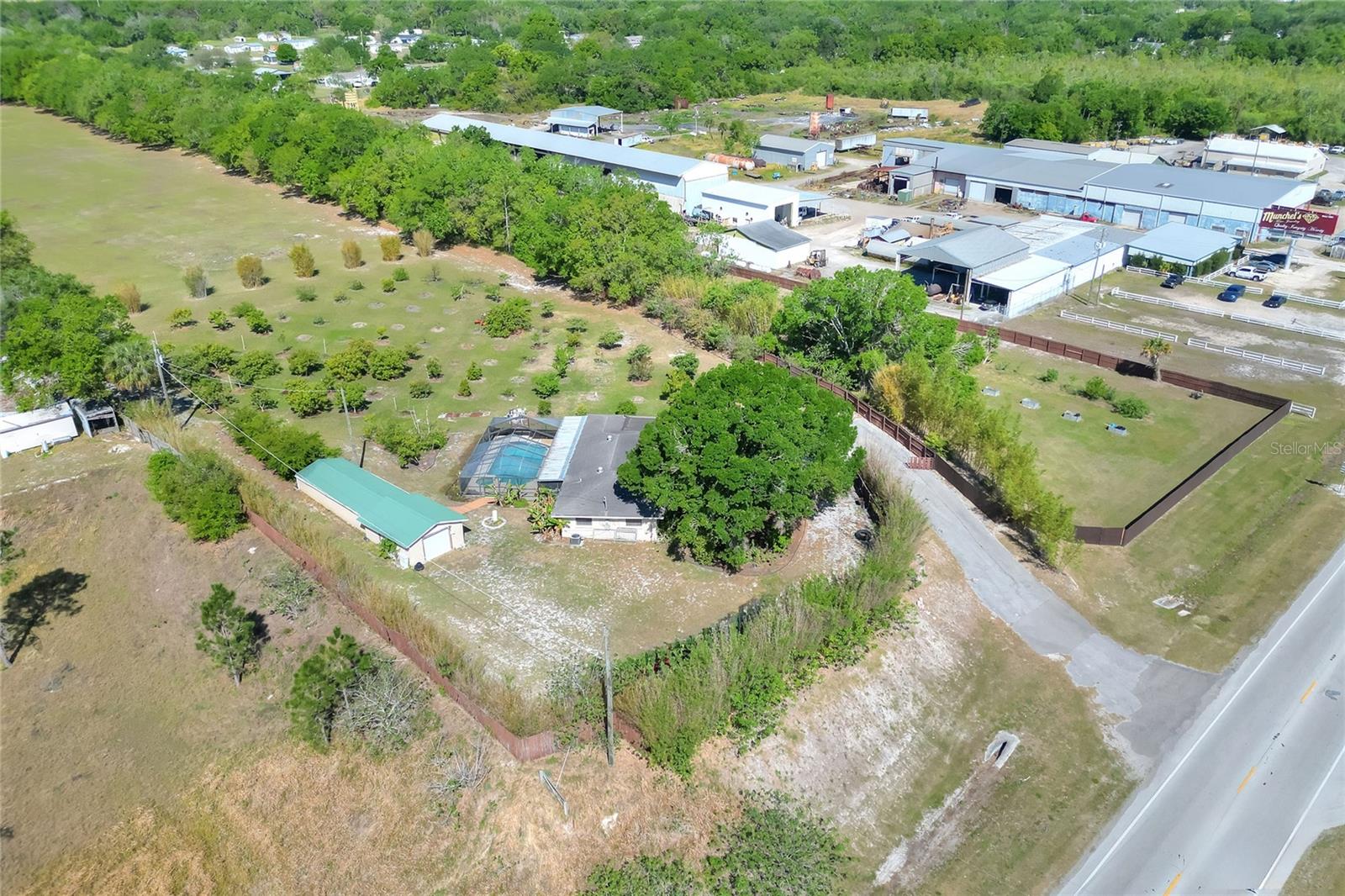 Back on the Market!! Here's your chance to own this incredible hilltop property!! 9.2 acre parcel is ready to set up your paradise! Zoned BPC1 (Business Park Center) creates endless possibilities for the future. What is your vision for this 9.2 Acre Parcel?! Horses, Livestock, Hobby Farm, Apiarist, Orchard, Event Venue, Business? Over 335 feet of frontage property along SR-37 South. Fixer Ranch style, Pool Home will need renovation or possible tear down; replumbed with CPVC, screened in-ground gunite pool with screened area in need of rescreening, but has potential. Detached 16 x 22 Block Structure with Metal Roof used for equipment storage, tools and Laundry. There are ~100 fruit trees with 35 species of mangos, plus papayas, citrus, etc., on the property. There is an abandoned railway on the northern perimeter with service road that is in the shade under 100 year old oak trees. The entire perimeter has wooden fencing. Mature landscaping and Bamboo for privacy. Property is being sold AS-IS. All dimensions are estimated and will need to be verified by Buyer or Buyers' Agent.