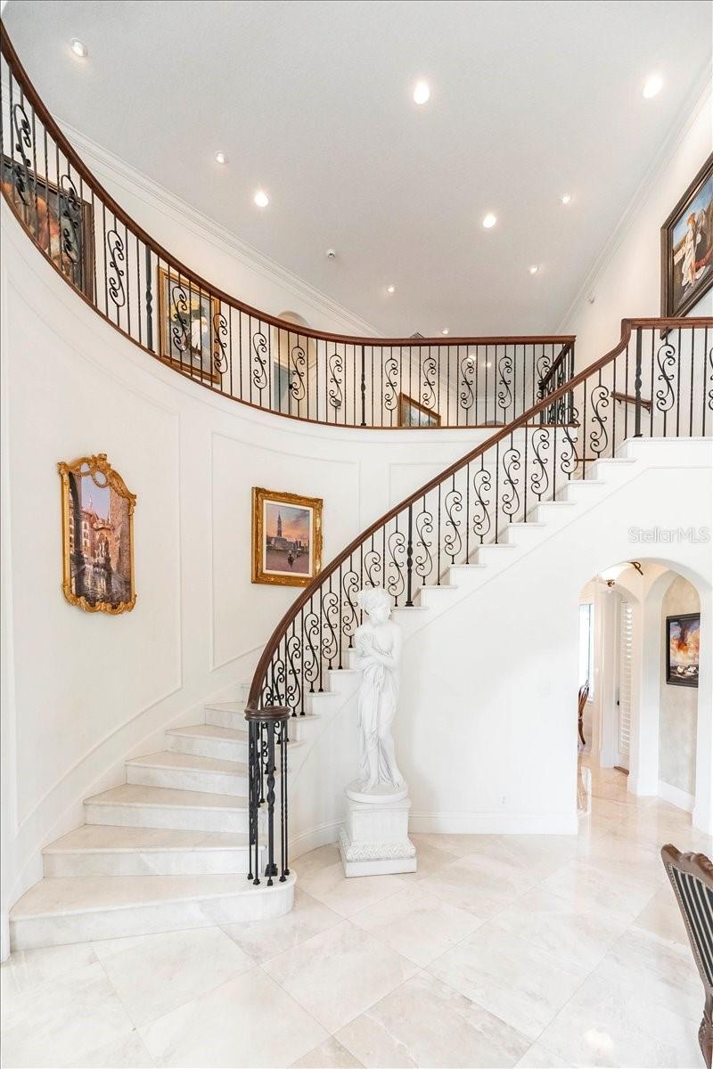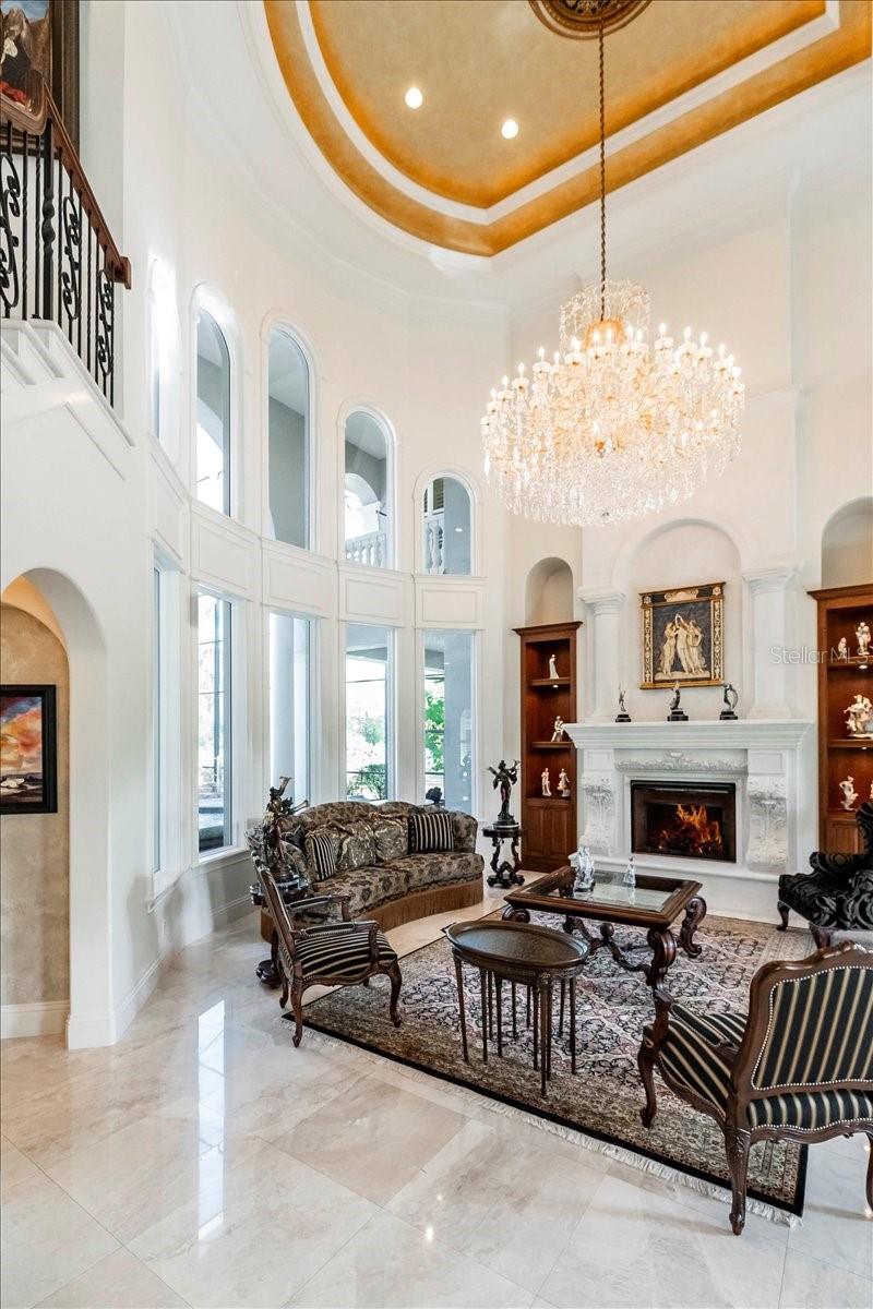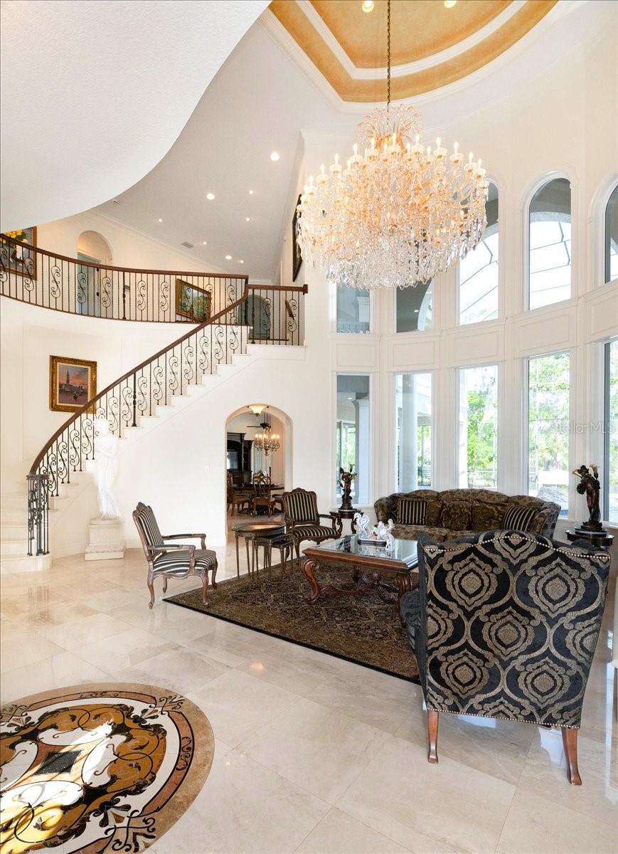 **A Masterpiece of Architectural Grandeur in Canterwood** BRAND NEW ROOF 7/2025 Nestled within the highly desired, gated enclave of Canterwood, 460 Canterwood Drive stands as an opulent testament to masterful craftsmanship and timeless elegance. Conceived by the esteemed Olivera Construction in 2010, this palatial estate sprawls across 2.25 meticulously landscaped acres, enveloped by the tranquil embrace of an HOA-maintained pond. Upon entry, a grand foyer welcomes you with soaring ceilings and a breathtaking wrap-around cascading staircase, an architectural marvel that gracefully ascends to the second-floor loft enhanced with a built in sauna for the health enthusiast. This dramatic entry sets the tone for the home’s unrivaled sophistication, where over 6,300 square feet of living space is designed to accommodate both intimate gatherings and grand-scale entertaining. Five lavishly appointed bedrooms, an executive office, and an inspiring art studio offer both sanctuary and space, while a floor plan tailored for multiple living arrangements ensures versatility without compromising luxury. At the heart of this estate lies a chef’s kitchen, where culinary aspirations meet professional-grade appliances, custom cabinetry, and seamless flow into the expansive living areas. The game room, complete with a bar, boasts an oversized balcony, offering a stunning vantage point to take in the serene landscape. Both the game room and the family room feature corner sliding glass doors that vanish when opened, dissolving the barrier between indoors and out, and creating an unparalleled entertaining experience. Step outside to a private resort, where a sprawling saltwater pool and hot tub—enhanced by a cascading waterfall and exhilarating slide—invite endless relaxation and recreation. With 9,500 square feet under roof, this estate masterfully blends indoor opulence with outdoor splendor, ensuring every space is as captivating as it is functional. A home of this caliber is not merely a dwelling—it is an experience, a statement, a legacy. Behind the exclusive gates of Polk County’s most coveted community, 460 Canterwood Drive stands as a beacon of luxury, ready to welcome its next discerning steward.