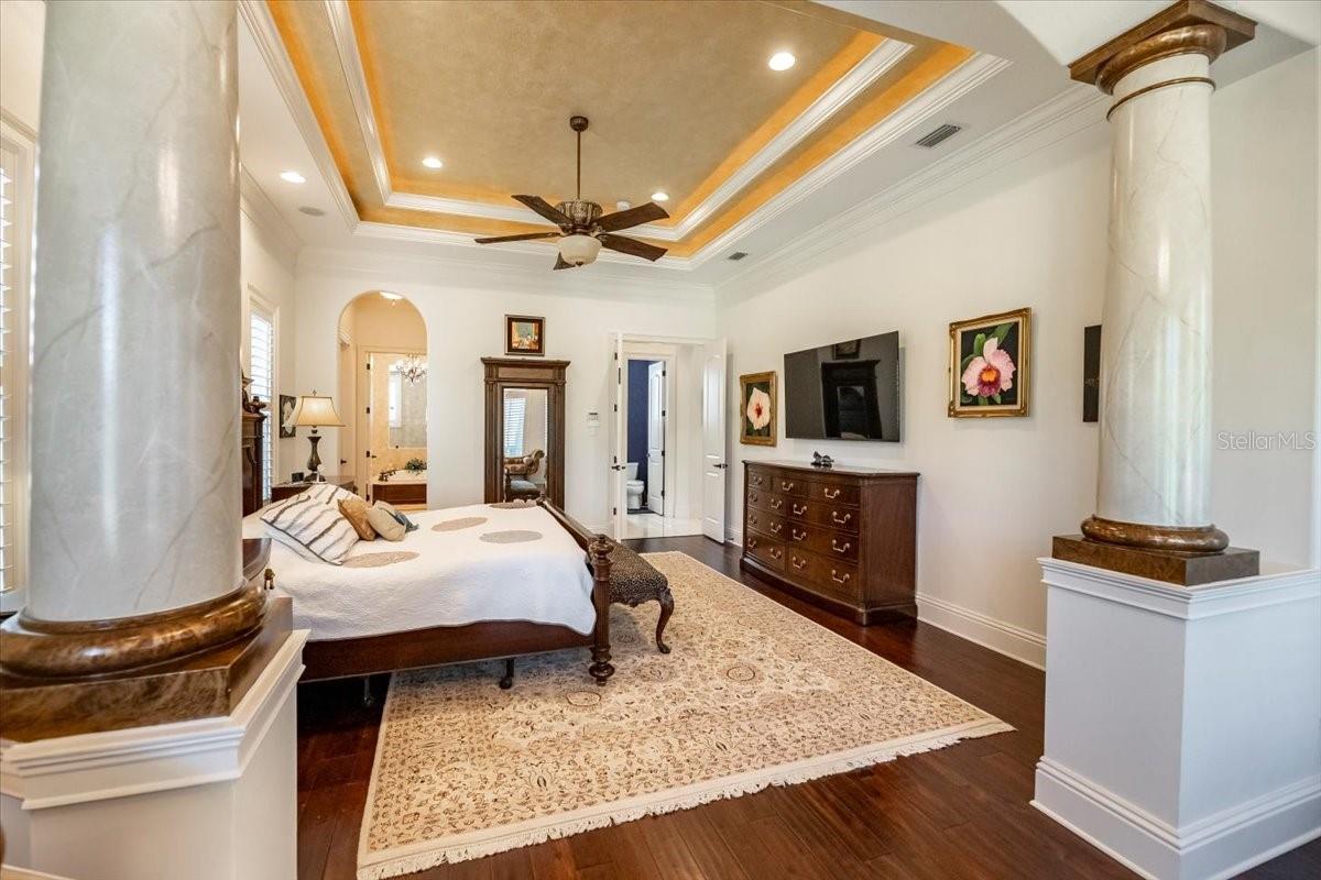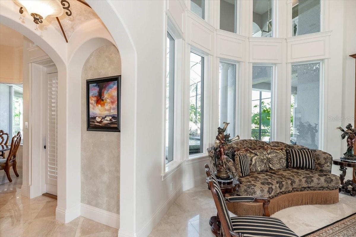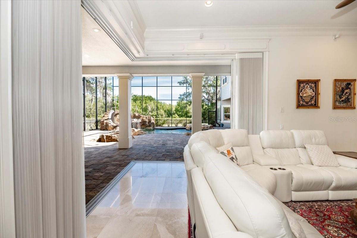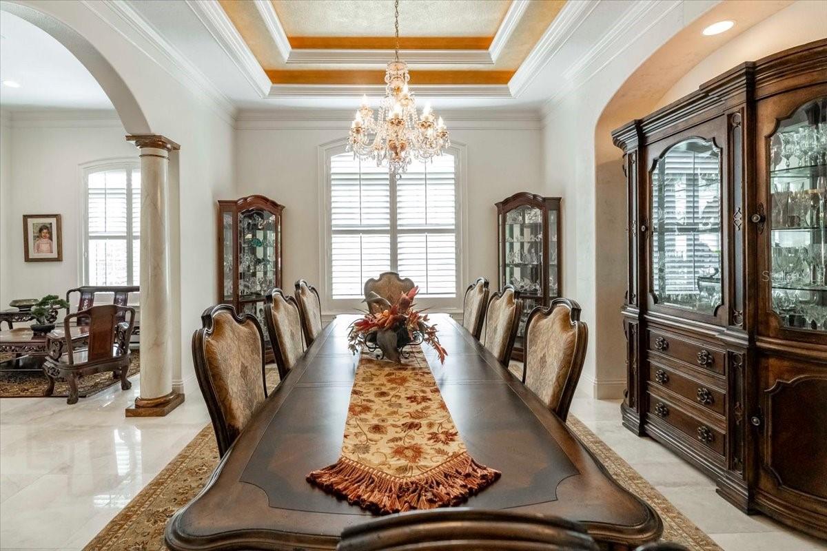 **A Masterpiece of Architectural Grandeur in Canterwood** BRAND NEW ROOF 7/2025 Nestled within the highly desired, gated enclave of Canterwood, 460 Canterwood Drive stands as an opulent testament to masterful craftsmanship and timeless elegance. Conceived by the esteemed Olivera Construction in 2010, this palatial estate sprawls across 2.25 meticulously landscaped acres, enveloped by the tranquil embrace of an HOA-maintained pond. Upon entry, a grand foyer welcomes you with soaring ceilings and a breathtaking wrap-around cascading staircase, an architectural marvel that gracefully ascends to the second-floor loft enhanced with a built in sauna for the health enthusiast. This dramatic entry sets the tone for the home’s unrivaled sophistication, where over 6,300 square feet of living space is designed to accommodate both intimate gatherings and grand-scale entertaining. Five lavishly appointed bedrooms, an executive office, and an inspiring art studio offer both sanctuary and space, while a floor plan tailored for multiple living arrangements ensures versatility without compromising luxury. At the heart of this estate lies a chef’s kitchen, where culinary aspirations meet professional-grade appliances, custom cabinetry, and seamless flow into the expansive living areas. The game room, complete with a bar, boasts an oversized balcony, offering a stunning vantage point to take in the serene landscape. Both the game room and the family room feature corner sliding glass doors that vanish when opened, dissolving the barrier between indoors and out, and creating an unparalleled entertaining experience. Step outside to a private resort, where a sprawling saltwater pool and hot tub—enhanced by a cascading waterfall and exhilarating slide—invite endless relaxation and recreation. With 9,500 square feet under roof, this estate masterfully blends indoor opulence with outdoor splendor, ensuring every space is as captivating as it is functional. A home of this caliber is not merely a dwelling—it is an experience, a statement, a legacy. Behind the exclusive gates of Polk County’s most coveted community, 460 Canterwood Drive stands as a beacon of luxury, ready to welcome its next discerning steward.