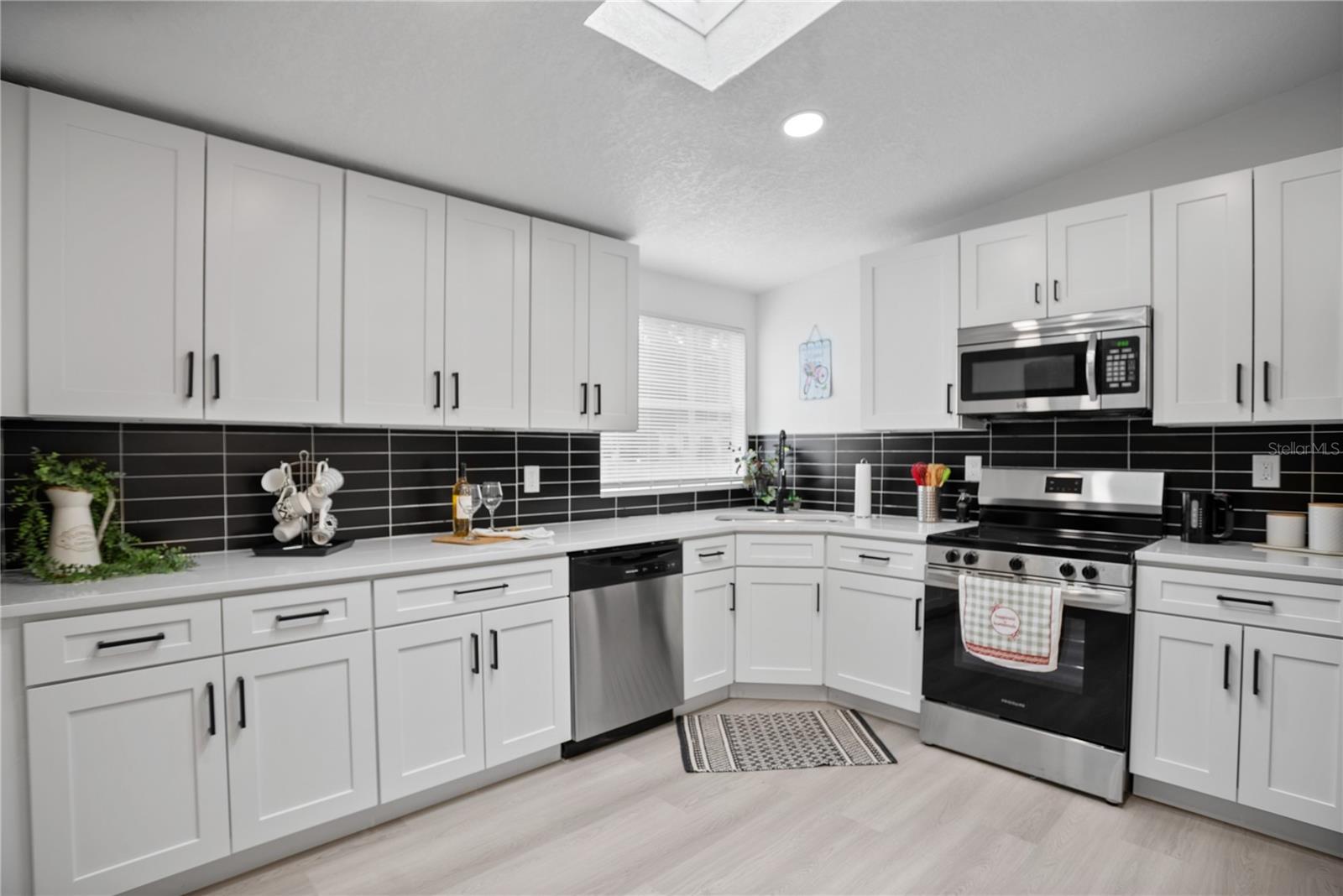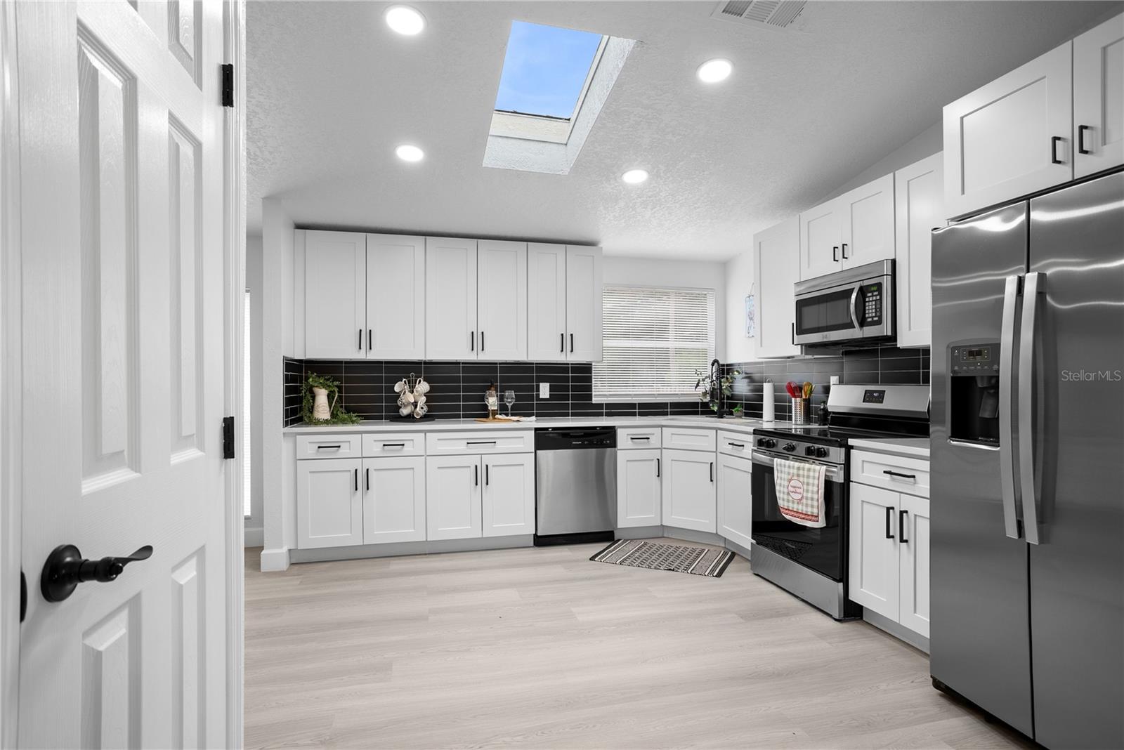 BACK ON THE MARKET!!! !! THE SELLER HAS INSTALLED A BRAND NEW ROOF!!!, adding significant value and peace of mine to the new owner.. Welcome to this charming property! Nestled on a spacious .26 lot, this newly renovated four- bedroom, two bath-rooms gem offers the perfect blend of modern comfort and quiet surrounding. Step inside to discover a bright and airy open floor plan, freshly painted in the interior and exterior. The heart of the home is undoubtedly the stunning kitchen, featuring gleaming new quartz countertops, brand new appliances, and elegant cabinets that provide ample storage. The entire home has beautiful luxury vinyl plank, each of the bathrooms has been tastefully renovated, offering a spa-like retreat for your daily routines. The spacious living room complete with a charming fireplace, sets the perfect scene for relaxation and family gathering. The split bedroom layout ensures privacy for everyone, making it ideal for family and guest. With easy excess to major roads and highway, this home seamlessly connects you to all the conveniences, a peaceful oasis to call your own. Don't miss the opportunity to make this beautiful home yours.