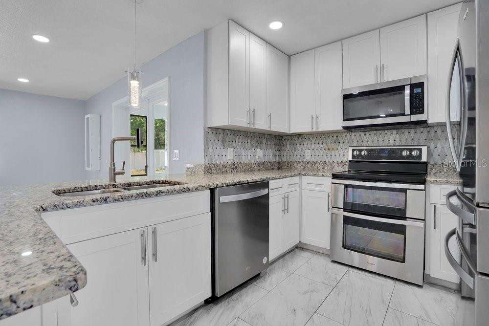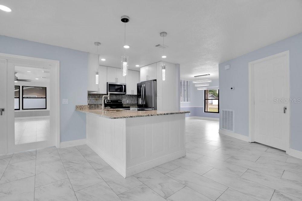 Priced BELOW appraised value! A tastefully updated well maintained one-level 4 bedroom single family home on a spacious & fenced corner lot with NO HOA or CDD. New Roof in 2025 & Accordion Hurricane Shutters for your peace of mind. Inside, enjoy over 2,100 SqFt of thoughtfully distributed living space with seamless tile flooring throughout. The kitchen remodel features granite countertops, stainless steel appliances, wood cabinetry, and a pantry closet. The primary suite includes a walk-in closet, dual granite vanity, and a STANDOUT designed spacious tiled shower. A perfectly remodeled low maintenance single-story home on a private fenced corner lot ready for immediate move-in. Schedule your private tour at your convenience.