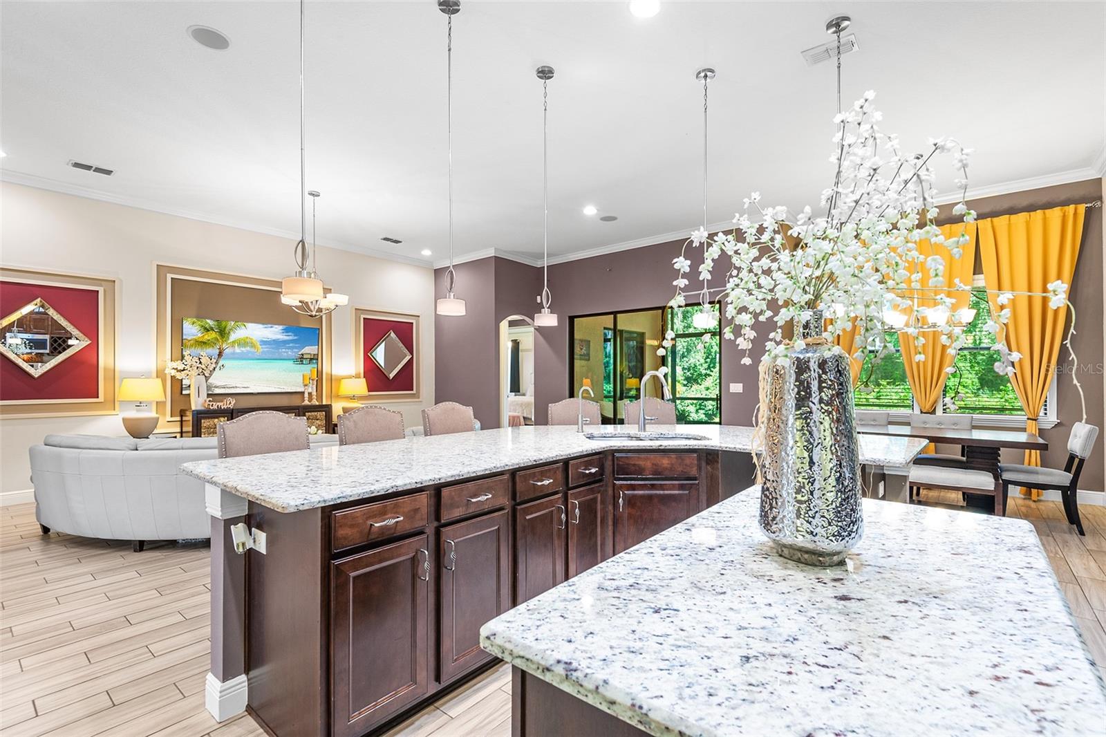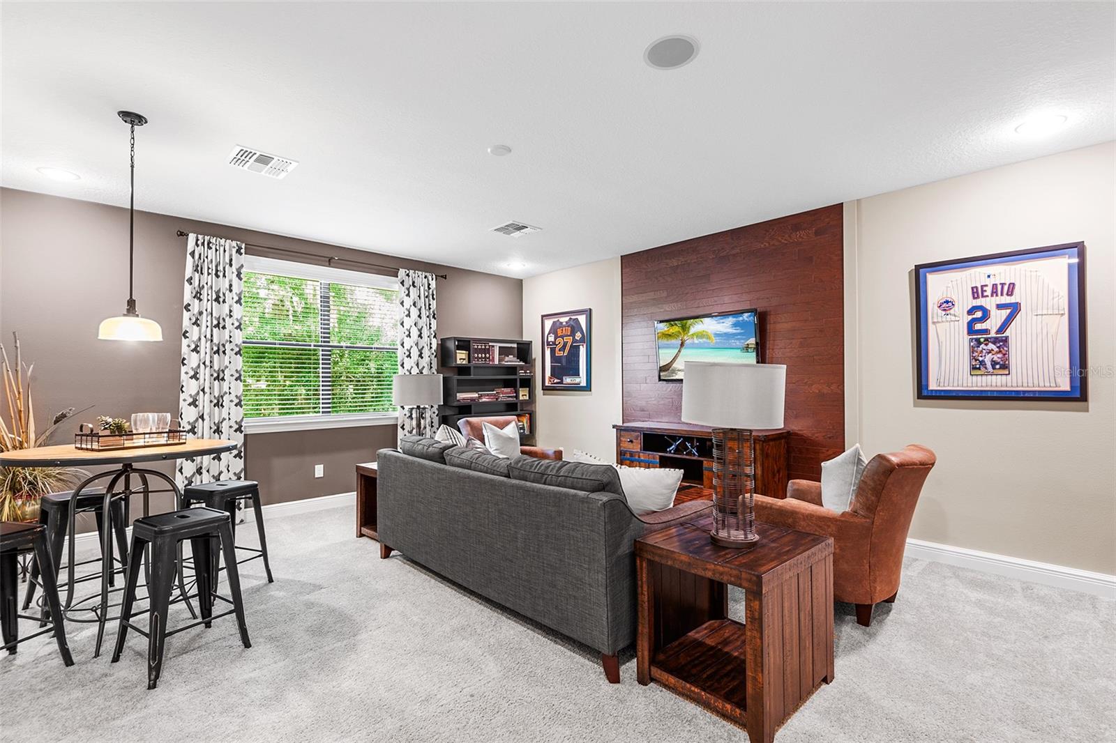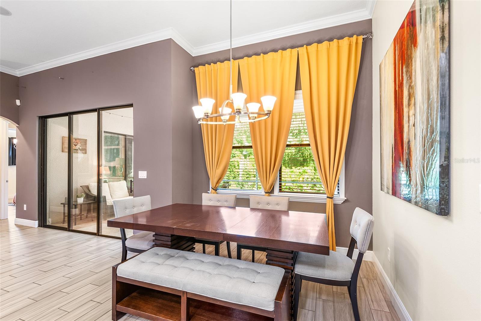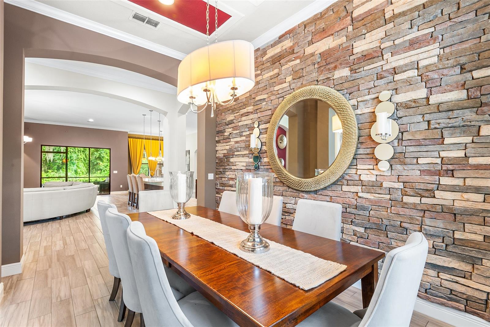PRICE DROP! Welcome to your new home in the highly desired Grandefield on Poley Creek gated community! This stunning home offers a blend of elegance and functionality, making it an ideal choice for discerning buyers. KEY FEATURES: Conservation Lot: Enjoy privacy and tranquility with no rear neighbors on this spacious fenced-in lot. Open Floorplan: The home’s open layout provides flexibility for design and easy flow between living spaces. High Ceilings: Majestic crown moldings accentuate the luxurious style throughout, creating an inviting atmosphere. Gourmet Kitchen: The kitchen features a large walk-in pantry, ceiling-height cabinets, and an island-mounted sink with a reverse osmosis water filtration system. Bluetooth Audio System: Listen to your favorite tunes throughout the house with the full home ceiling-mounted Bluetooth audio system. Outdoor Oasis: Step onto the screened-in patio, which overlooks a larger outdoor space complete with a built-in gas grill and fire pit—perfect for Florida summer nights. Bonus Room: Located upstairs, discover a versatile bonus room that can serve as a home office, fifth bedroom, or entertainment space, complete with its own dedicated full bathroom. Well-Maintained: Rest easy knowing that the HVAC (2015), tile roof (2015), and water heater (2015) have been meticulously cared for. Builder’s Warranty: Enjoy peace of mind with the builder’s warranty in place through September 2026. Miscellaneous: FRESHLY PAINTED EXTERIOR! Full home Culligan water softener system. Skylight in the kitchen. Large side entry three car garage with cabinets lining the walls and a storage closet. Washer & Dryer included! Community: Recreational tennis court for community. Private walking trail for hikes. Don’t miss out—schedule a showing today!