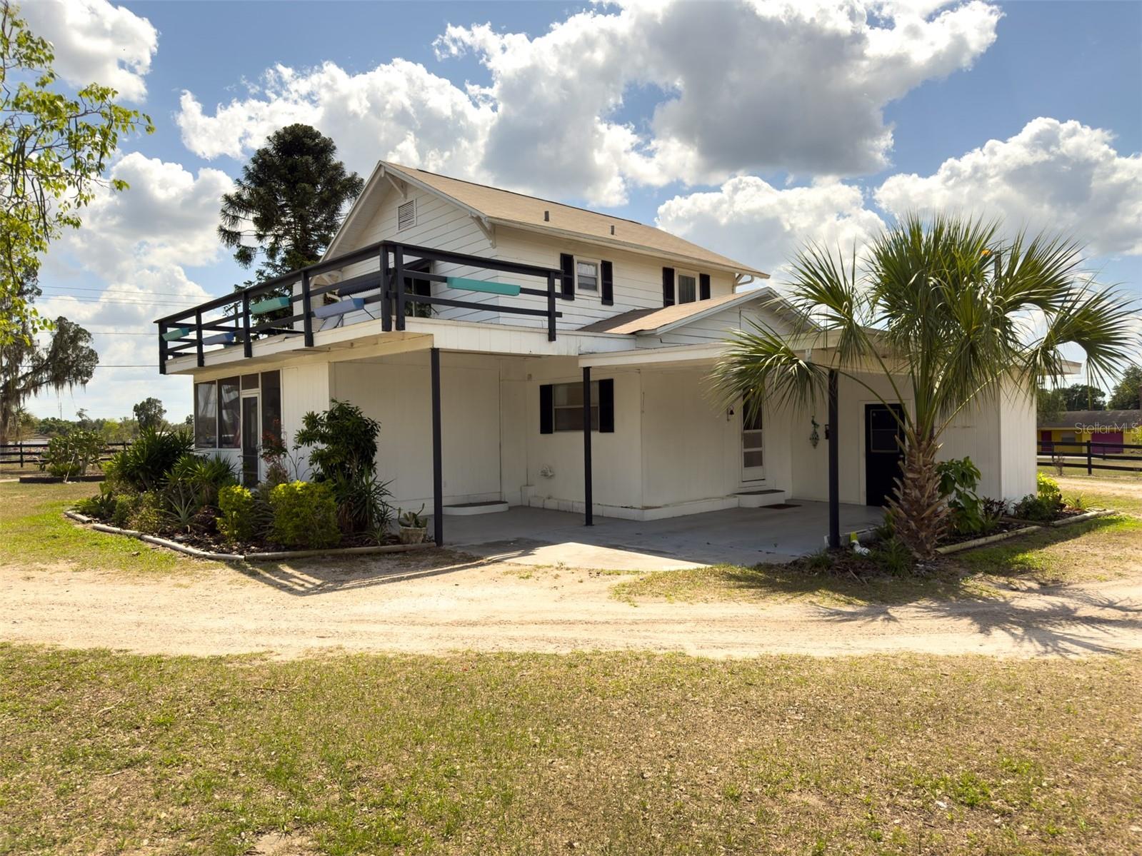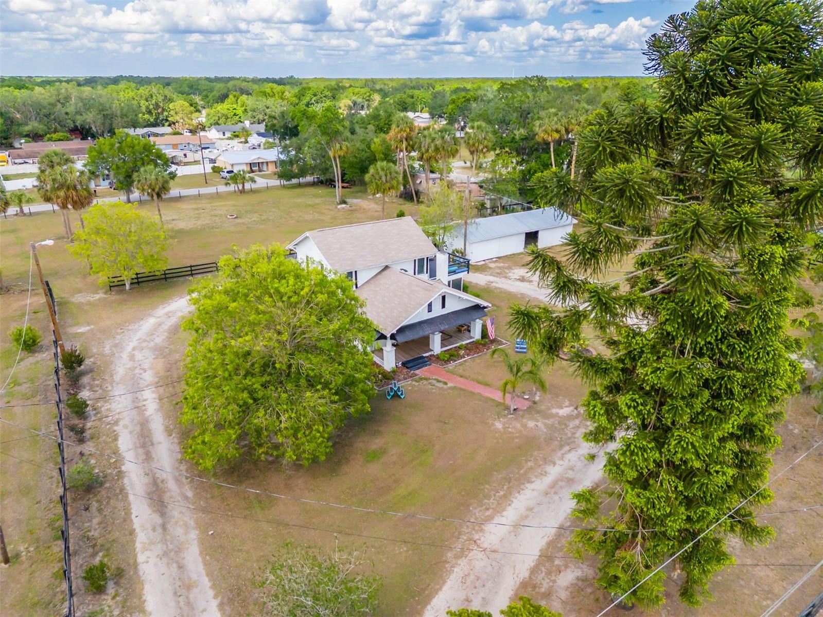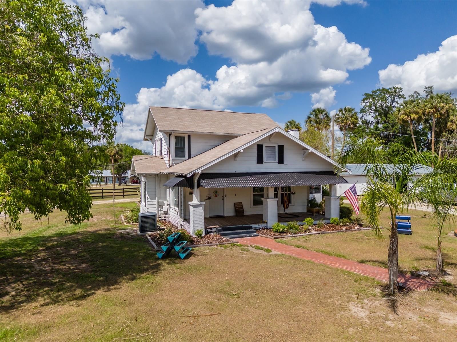 NEW LOWER PRICE! Step into the timeless charm of the adorable 1920s farmhouse, perfectly set on over two acres of serene country living. From the inviting front porch to the side screened porch there are so many spots to enjoy your morning coffee. The spacious living room/dining room has updated flooring and a wood burning fireplace creating warmth and character. The primary bedroom has ample closet space and an en-suite bathroom with custom tilework in the shower. The kitchen ceiling was recently raised with new lighting. There are lots of cabinetry and the perfect spot for a dinette table. Up the spiral staircase are two more bedrooms and a full bathroom, featuring updated countertops, sinks and a refurbished tub. New sliding doors lead to a rooftop deck, with new railings. For hobbyists or those needing extra space, the oversized detached garage features a deluxe workshop and even a potting shed with a sink in the back. The circular drive adds convenience. There's plenty of parking for an RV, boat or many cars! The approval process with the county has already been started to subdivide the parcel into four lots, creating a lot of options for future investment opportunities. New roof March 2025. AC 5 years old. This unique property won't last long! Call today!