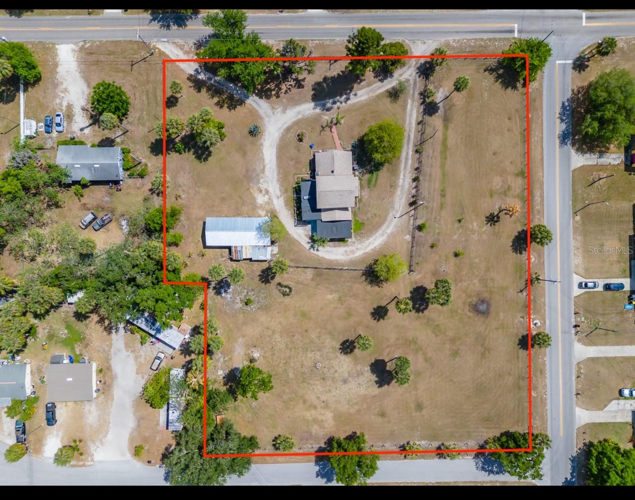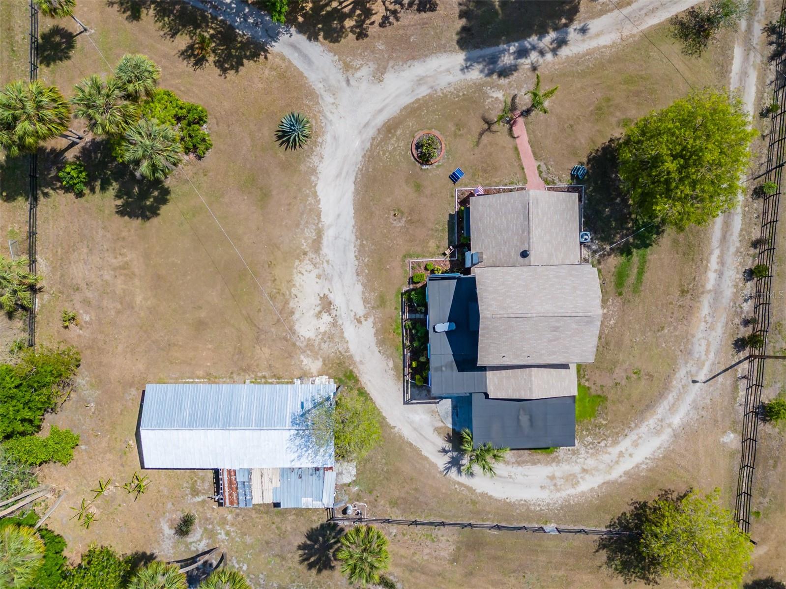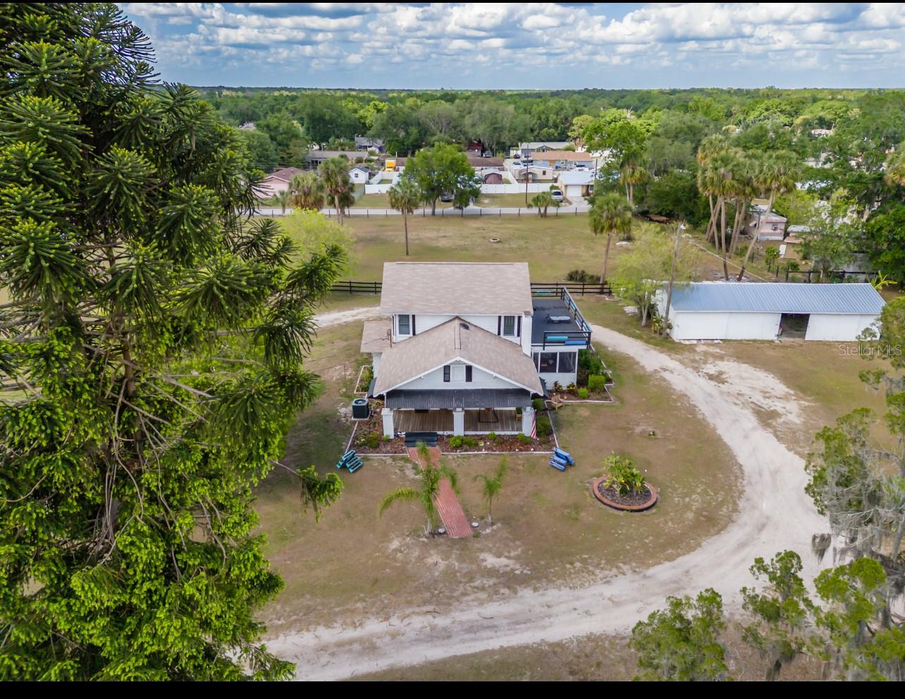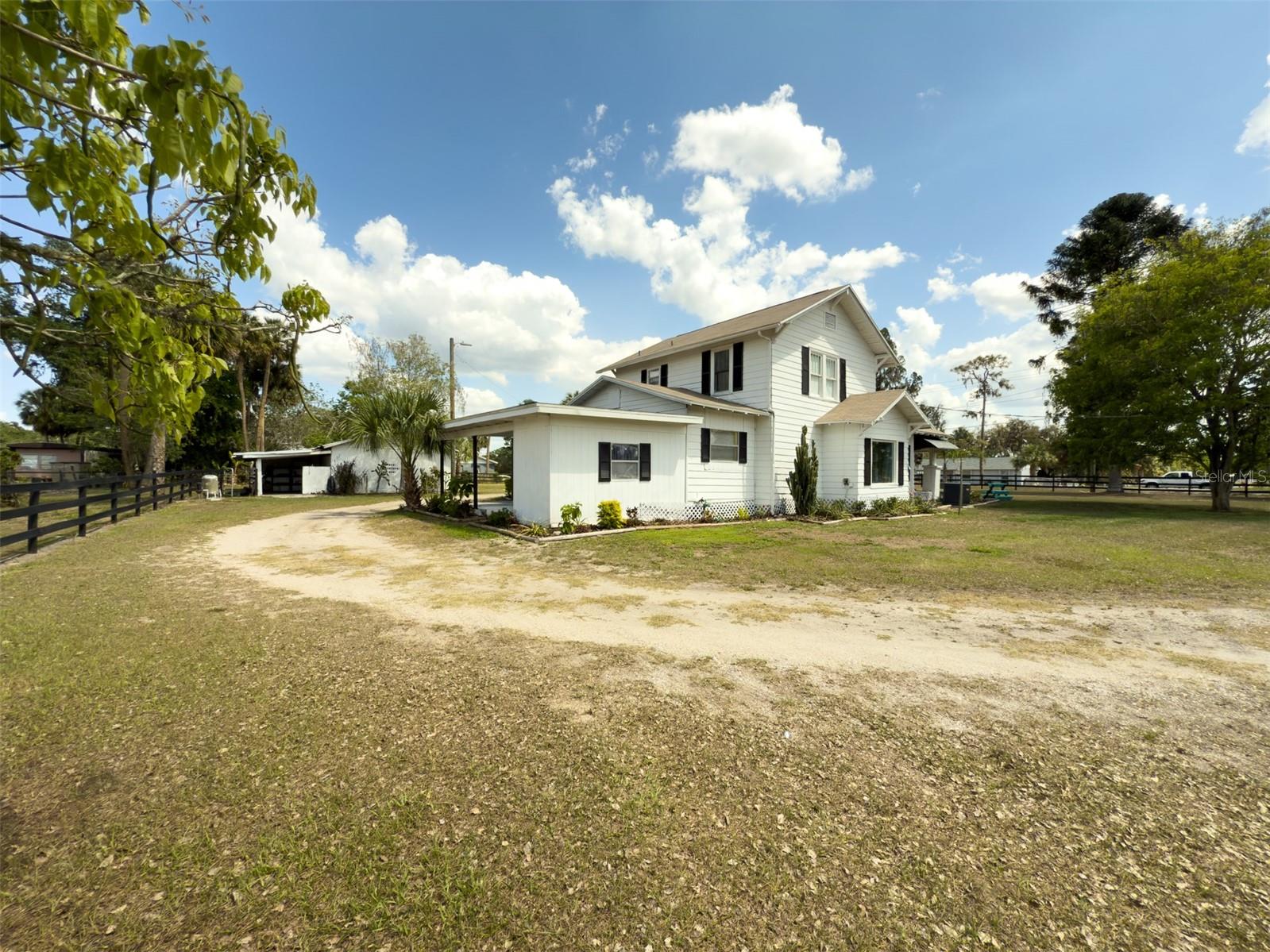 NEW LOWER PRICE! Step into the timeless charm of the adorable 1920s farmhouse, perfectly set on over two acres of serene country living. From the inviting front porch to the side screened porch there are so many spots to enjoy your morning coffee. The spacious living room/dining room has updated flooring and a wood burning fireplace creating warmth and character. The primary bedroom has ample closet space and an en-suite bathroom with custom tilework in the shower. The kitchen ceiling was recently raised with new lighting. There are lots of cabinetry and the perfect spot for a dinette table. Up the spiral staircase are two more bedrooms and a full bathroom, featuring updated countertops, sinks and a refurbished tub. New sliding doors lead to a rooftop deck, with new railings. For hobbyists or those needing extra space, the oversized detached garage features a deluxe workshop and even a potting shed with a sink in the back. The circular drive adds convenience. There's plenty of parking for an RV, boat or many cars! The approval process with the county has already been started to subdivide the parcel into four lots, creating a lot of options for future investment opportunities. New roof March 2025. AC 5 years old. This unique property won't last long! Call today!