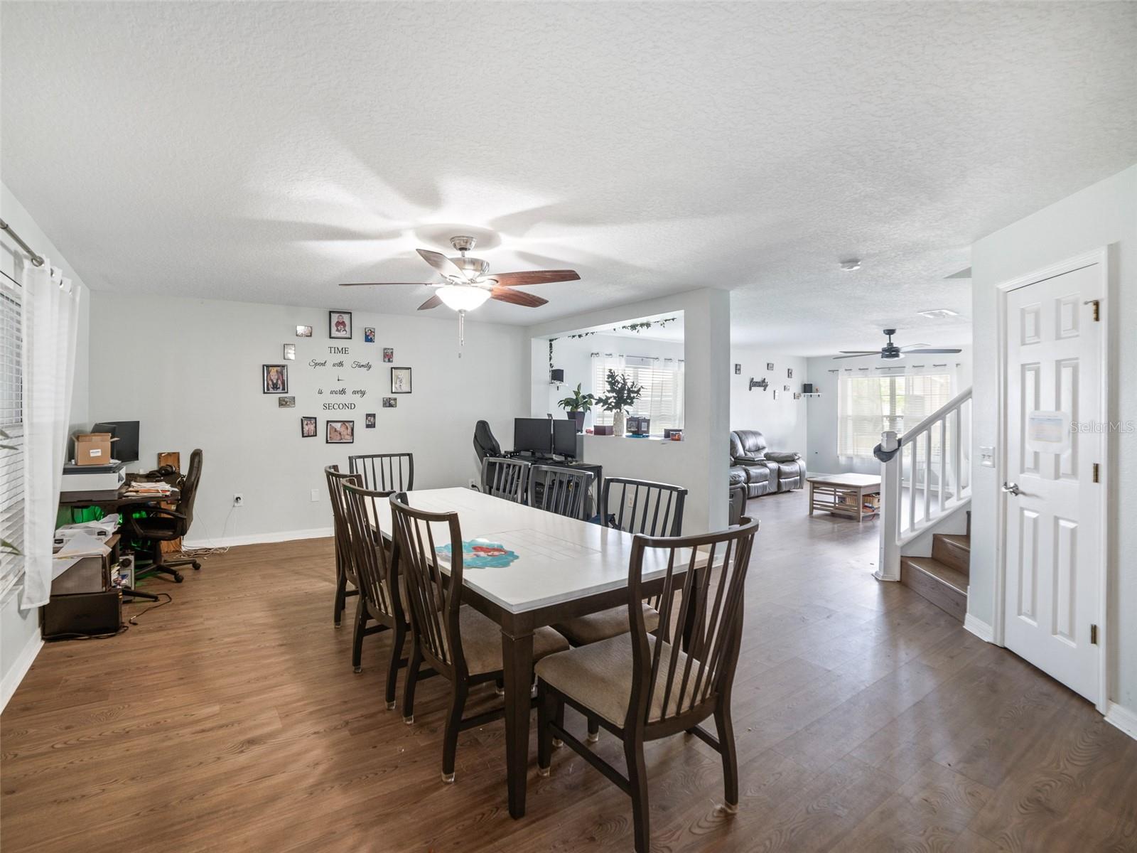 Welcome to this beautiful 5-bedroom, 2.5-bath home nestled in the highly sought-after Park at Sunridge neighborhood. This spacious residence combines comfort, style, and functionality. Step inside to discover stunning luxury vinyl plank (LVP) flooring throughout, offering both durability and modern appeal along with a New AC unit in 2024. The heart of the home is the updated kitchen, featuring sleek countertops, stainless steel appliances, and ample cabinet space—ideal for entertaining. The open-concept living and dining areas provide a seamless flow, while large windows allow natural light to pour in, creating a bright and inviting atmosphere. Upstairs, you’ll find four generously sized bedrooms, including a serene primary suite complete with a private bath and walk-in closet as well as an enclosed den currently being used as a 5th bedroom. Directly off the kitchen/dining room, you'll find a fully enclosed lanai. Outside, enjoy a spacious backyard ready for relaxation or play, along with access to the community's parks and walking trails. Conveniently located near shopping, dining, this home offers the best of suburban living with modern upgrades.