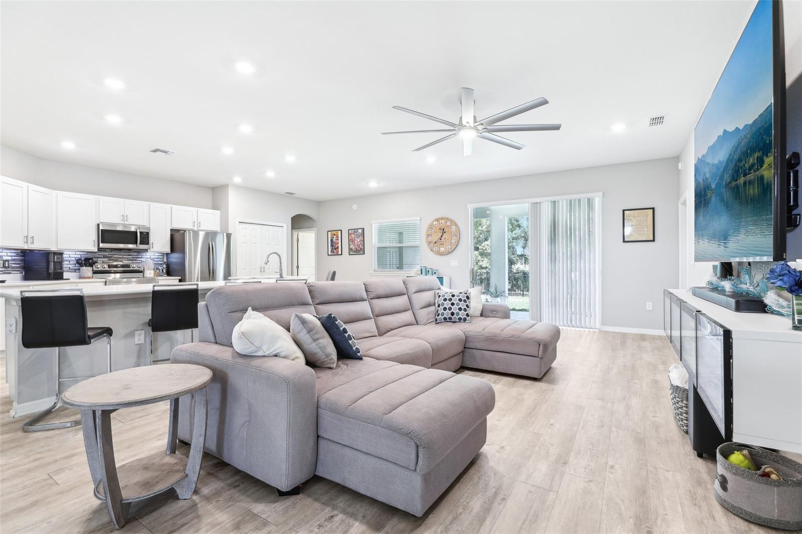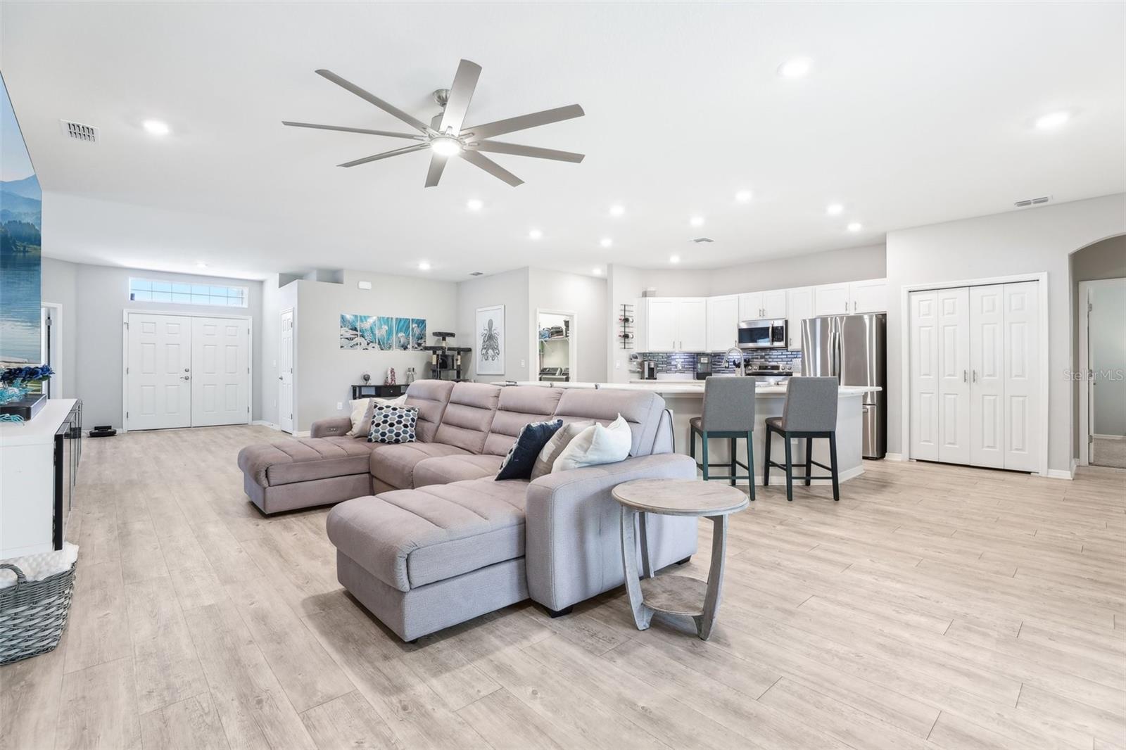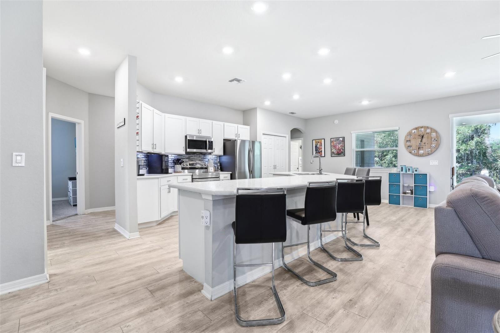 Get ready to fall in love with this gorgeous, single-story home that’s big on style and even bigger on comfort — and with no CDD and a super low HOA, it's a win all around. Sitting on one of the most private lots in the neighborhood (no rear neighbors!), you’ll enjoy peaceful water views — perfect for chilling out after a long day. Inside, the open floorplan is made for real life — think five roomy bedrooms, a flexible den, three full bathrooms, and a huge three-car garage with smart Wi-Fi openers. The whole place is full of upscale touches like luxury vinyl plank flooring, designer kitchen cabinets, and modern bathrooms. The primary suite? Total retreat vibes, with spa-like finishes, gorgeous tile, and classy cabinetry. There’s more: upgraded appliances, sleek recessed lighting, ceiling fans throughout, and stylish paint that ties everything together. Love the outdoors? The lanai, and fenced backyard are ready for relaxing. The front lawn and flower bed areas have a Rain Bird in-ground sprinkler system for our drier months. Plus, this home is smart and efficient, with a water softener and blinds already installed on every window for that extra layer of privacy. Location-wise, you’re in the highly-rated Mulberry School District and just minutes from local hot spots like Reasy Donuts, the new food hall, and Seven Wetlands Park. Commuting’s easy too, with quick access to FL-570, I-4, and Tampa. Homes like this — with this much space, privacy, and upgrades — don’t come around often. Come see it for yourself and find out why this one’s a must-see!