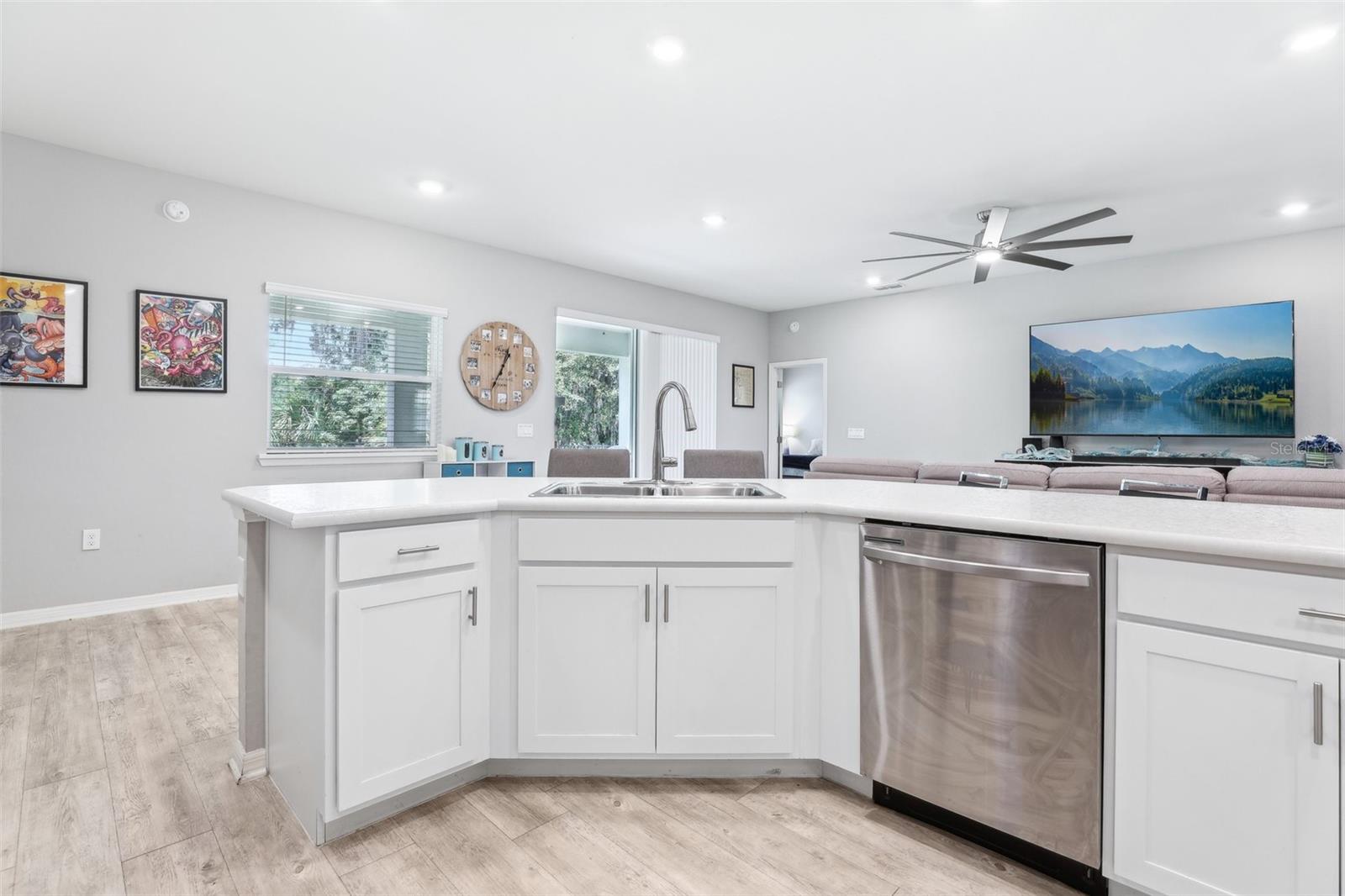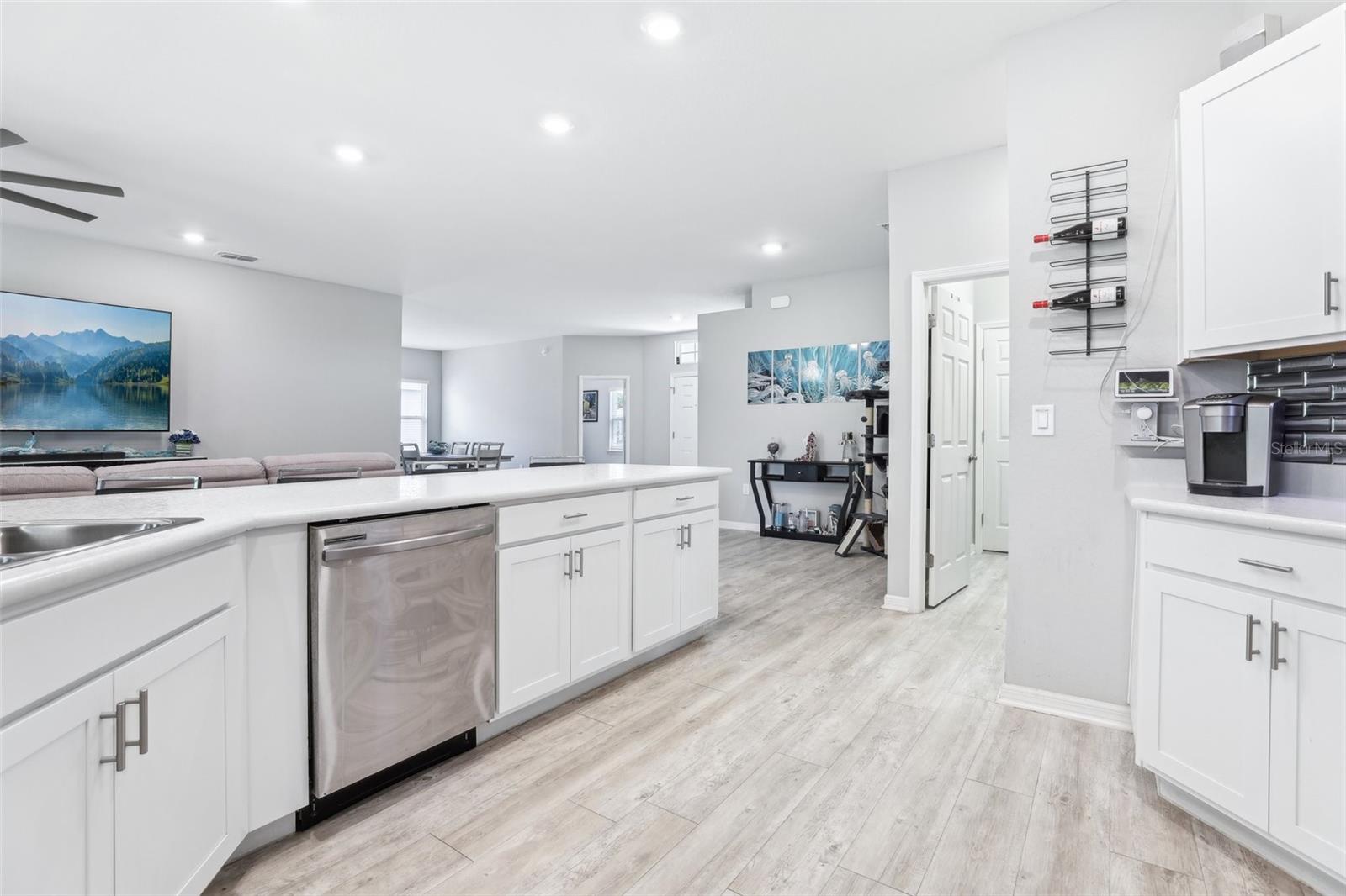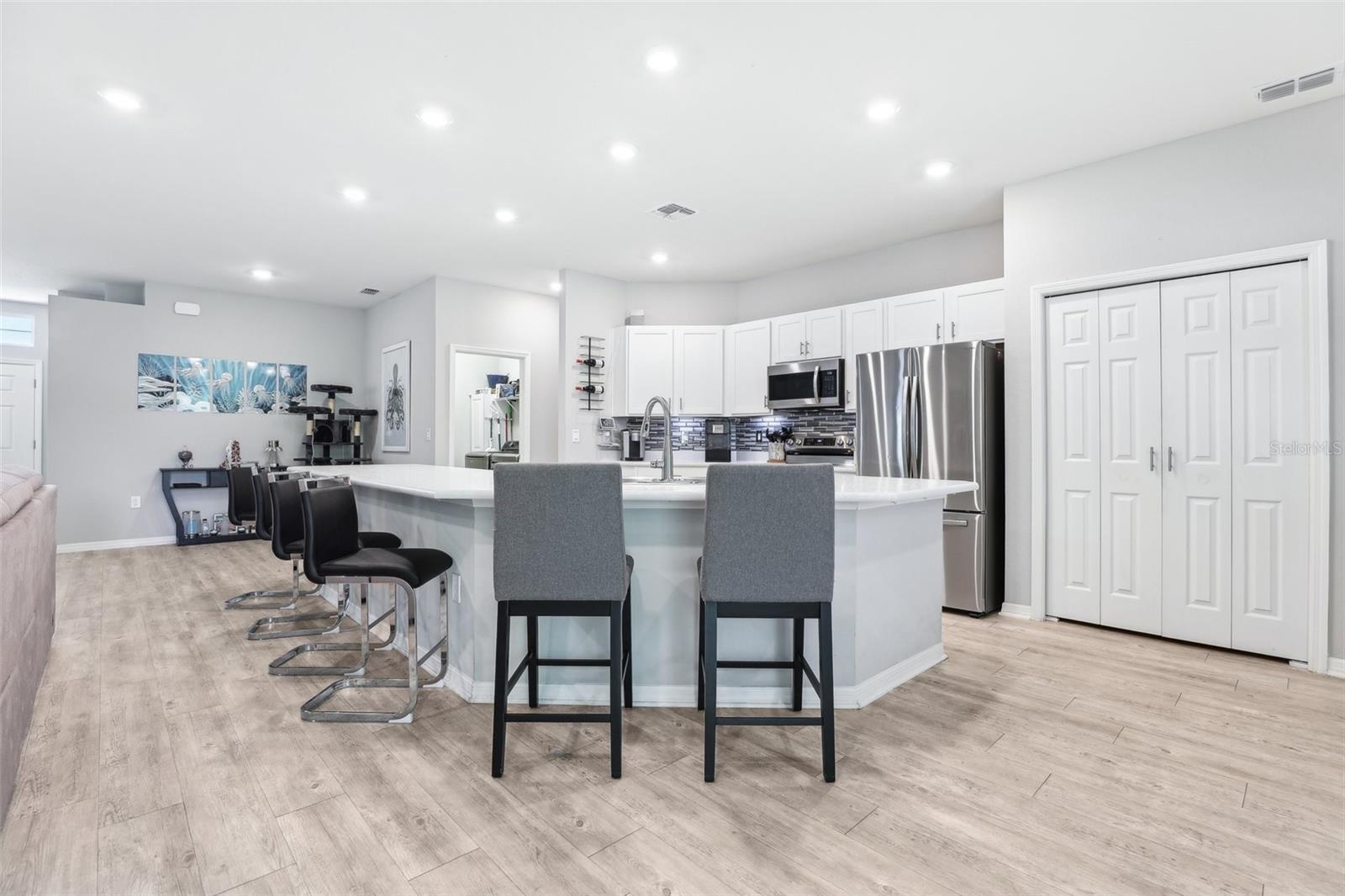 Get ready to fall in love with this gorgeous, single-story home that’s big on style and even bigger on comfort — and with no CDD and a super low HOA, it's a win all around. Sitting on one of the most private lots in the neighborhood (no rear neighbors!), you’ll enjoy peaceful water views — perfect for chilling out after a long day. Inside, the open floorplan is made for real life — think five roomy bedrooms, a flexible den, three full bathrooms, and a huge three-car garage with smart Wi-Fi openers. The whole place is full of upscale touches like luxury vinyl plank flooring, designer kitchen cabinets, and modern bathrooms. The primary suite? Total retreat vibes, with spa-like finishes, gorgeous tile, and classy cabinetry. There’s more: upgraded appliances, sleek recessed lighting, ceiling fans throughout, and stylish paint that ties everything together. Love the outdoors? The lanai, and fenced backyard are ready for relaxing. The front lawn and flower bed areas have a Rain Bird in-ground sprinkler system for our drier months. Plus, this home is smart and efficient, with a water softener and blinds already installed on every window for that extra layer of privacy. Location-wise, you’re in the highly-rated Mulberry School District and just minutes from local hot spots like Reasy Donuts, the new food hall, and Seven Wetlands Park. Commuting’s easy too, with quick access to FL-570, I-4, and Tampa. Homes like this — with this much space, privacy, and upgrades — don’t come around often. Come see it for yourself and find out why this one’s a must-see!