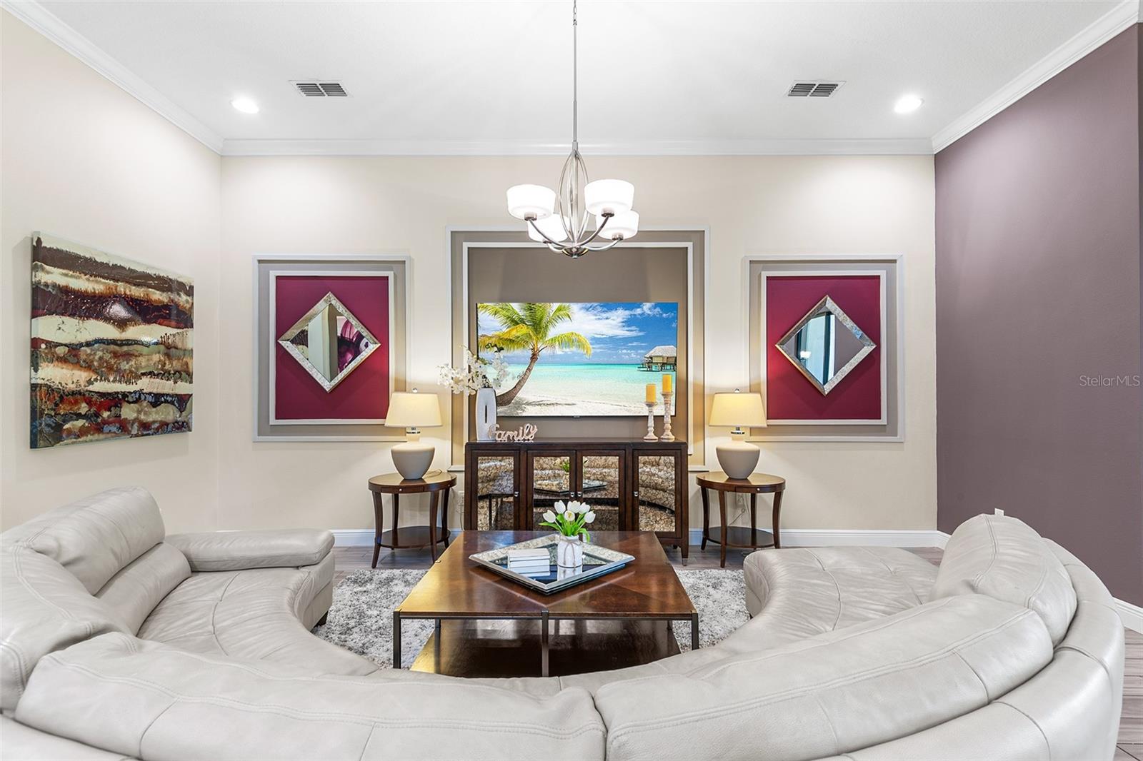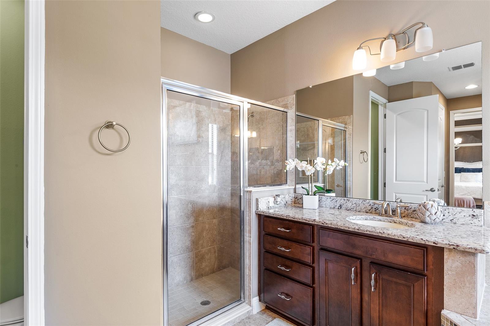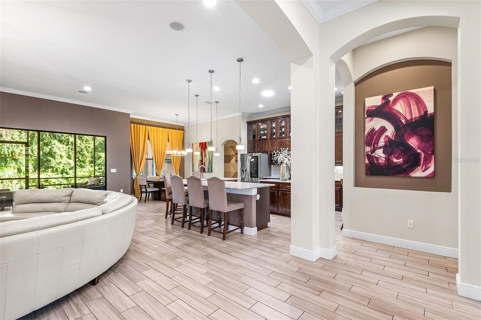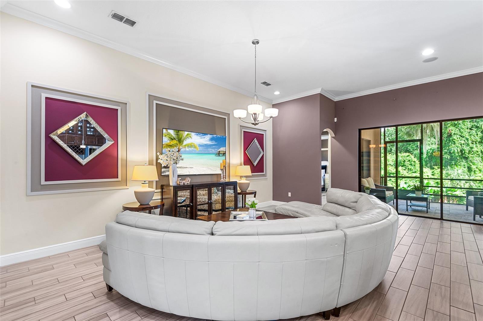 PRICE ADJUSTMENT! Seller may consider downpayment assistance. Welcome to Your Dream Home in Grandefield of Poley Creek. From the moment you step inside, this magnificent spec home will take your breath away. A floor-to-ceiling custom stone accent wall sets the tone for the attention to detail you’ll find throughout. The heart of the home is the spacious kitchen, complete with dark walnut cabinetry that spans floor-to-ceiling, granite countertops, and an oversized layout perfect for entertaining. With built-in Bluetooth speakers throughout, hosting family and friends has never been more enjoyable. Premium finishes abound, including 12-ft ceilings, 8-ft doors, elegant crown and base moldings, graceful archways, and a durable tile roof. Modern upgrades such as a Culligan whole-home water softener with reverse osmosis system, security cameras, and a fully fenced backyard ensure both comfort and peace of mind. Step outside to your screened-in lanai and take in the tranquil view of the private nature preserve—no backyard neighbors, ever. Designed for flexibility, this home offers an office and an upstairs bonus room with a private bath, easily adaptable into additional bedrooms—giving you up to 5 bedrooms total. And with an oversized 3-car garage, there’s no shortage of space for vehicles, storage, or hobbies. Nestled in the highly sought-after gated community of Grandefield of Poley Creek, you’ll enjoy resort-style amenities including tennis and pickleball courts, scenic walking trails, and a community park. Don’t miss the opportunity to make it yours. Schedule your private showing today!