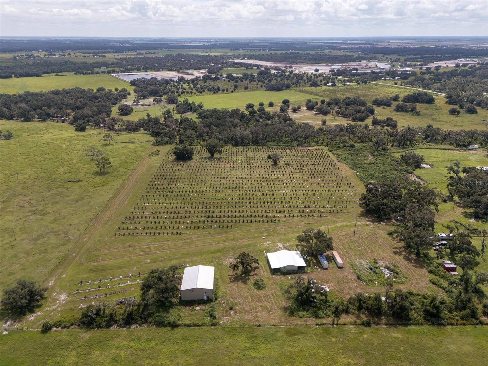 Established Orange Grove & Barndominium. Discover this beautifully maintained Myakka City agricultural property featuring an established citrus grove of approximately 1,500+ orange trees now reaching harvest stage. Nearly all usable land with AG exemption and low taxes. The modern 60x40 barndominium offers approx. 1,000 sq. ft. of living space (1 bed / 3 baths) plus large storage and equipment areas. Property includes two wells, septic, electric, and internet, irrigation across the entire property, along with Kubota tractor, ATV, and attachments. Zoning allows horses, cattle, and farming uses. High and dry for Myakka City with deeded road access and about 15 miles to I-75. Perfect for those seeking a turn-key farmstead or future income-producing grove with modern living convenience or other potential business opportunities.