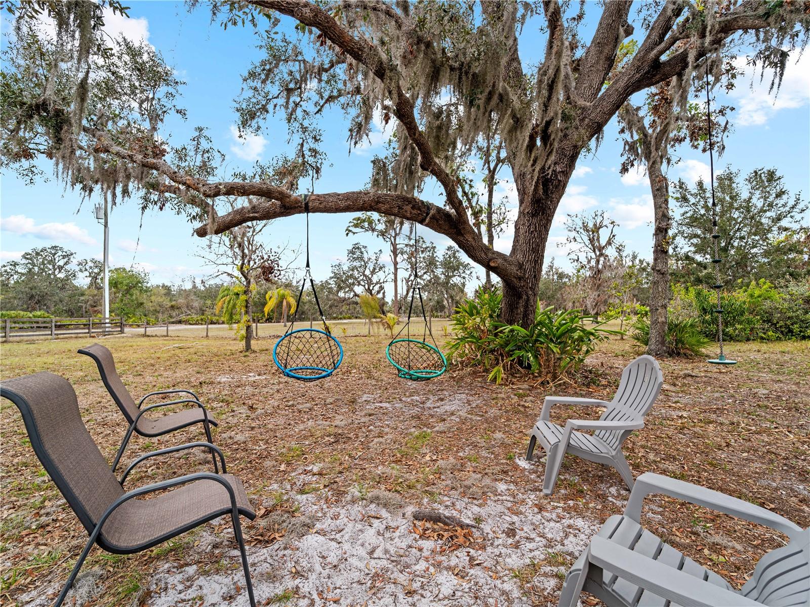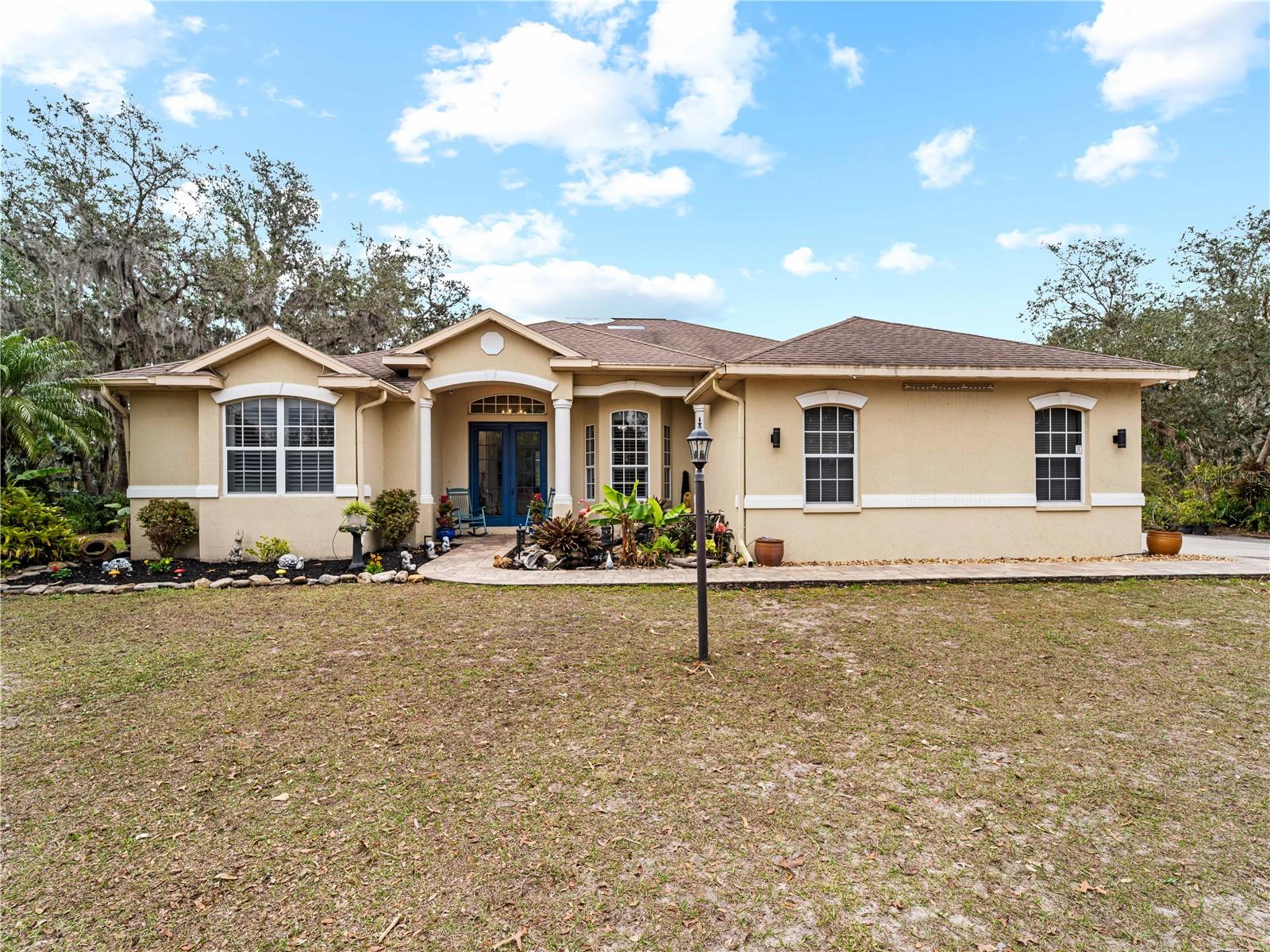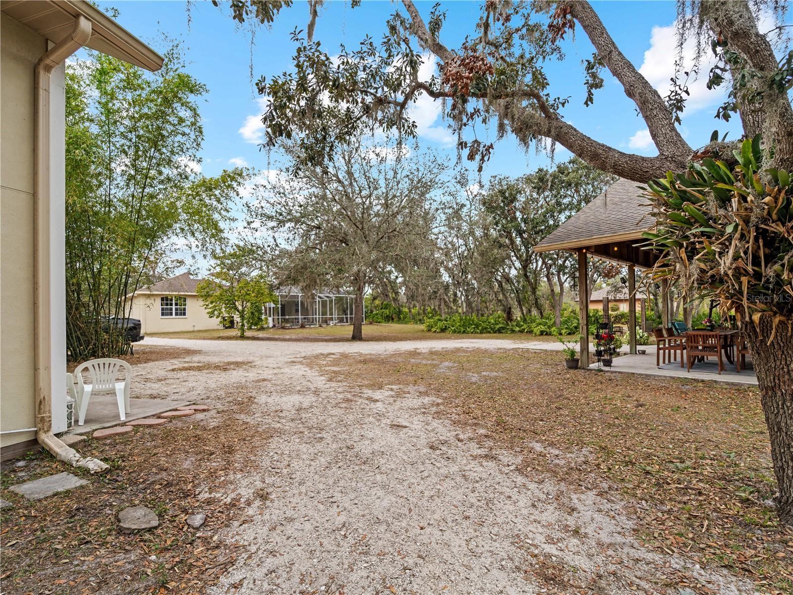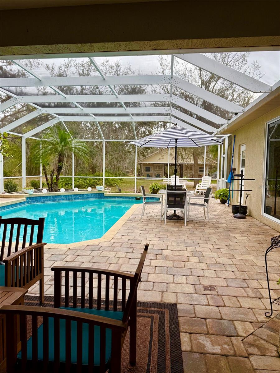 Price correction! This home is staged for you and vacant. Where are you going to find over 5 acres, a single family home, a Pole Barn and RV Garage for this price? Come live near everything the Lakewood Ranch area has, but with all the space that you need! Located in Saddlebag Creek Ranches, This Four bedroom, Three bath, Pool home is situated on a beautiful 5+ acre property! You are greeted by a Brand new $10,000 front gate installed in 2024 with a keypad for entry. Down the extensive driveway, take the sidewalk to the front door and pass by the beautiful Koi pond and lush landscaping. Walk through the large double front doors into the formal living room with its cathedral ceilings and sliders out to the lanai with beautiful pavers. The dining room, with its plantation shutters and ample space for all of your family gatherings. The beautifully remodeled kitchen is accented by a breakfast bar to sit and enjoy conversations with the cook. Complemented by a walk in pantry, island work station and built in computer desk alongside the kitchen nook overlooking the pool through the aquarium window. There is a separate laundry room and another set of washer/dryers in the RV garage for all that dirty yard clothing! The Primary bedroom is very spacious and has His and Hers walk in closets, a large bathroom with two separate sinks, a vanity area, a Garden tub and a large walk in shower. Bedrooms 1 and 2 are located on the opposite end of the house in their own separate wing, with a shared bathroom in between and a pocket door for privacy. The Fourth bedroom is located off the Family room at the back of the house with an ensuite bathroom with walk in shower. This room can also be used as an office or den as well as the pool bathroom. There is a 30 x 16 Saltwater pool with new pool equipment. A new well pump was installed in 2024 for the septic tank. The garage is a very spacious 3 car side entry. Did I mention that the Roof is being replaced before closing? Further back into the yard there is a large pole barn (48 x 36) built in 2018 with (Three) 12 x 12 Stalls with automated water, (Two) 6 x 12 Mini stalls, a 12 x 12' Feed room and a 12 x 12 Tack room with storage above. The barn has a 12 x 36 covered front porch area to sit and enjoy your evening looking at the stars while enjoying a glass of wine. Opposite the pole barn is a 34 x 24 garage that can house your RV or Boat with a floor to ceiling 20' peak! The two front doors are 12 foot tall roll doors. The back door is 10 ft tall and the garage has an elevated 12 x 12 storage space and underneath that a workspace with dedicated electric for those late nights tinkering. You will also find in the garage a spare set of washer and dryers for all the dirty clothes from yard work! The entire perimeter of this property is fenced with field fencing and cross fenced as well. Along the front of the property it is four board fenced. There is water access for the pastures in multiple locations as well as a covered feed and water area for the cows and horses. The property has an irrigated garden area as well as fruit trees such as: Orange, Grapefruit, Tangerine, Fig, Mango, Guava and Avocado! Topping it off with a 2 1/2 mile wooded bridle trail within the neighborhood. The livestock is also available for purchase through a separate addendum. Come out and see this property and enjoy the fresh air before it is SOLD!