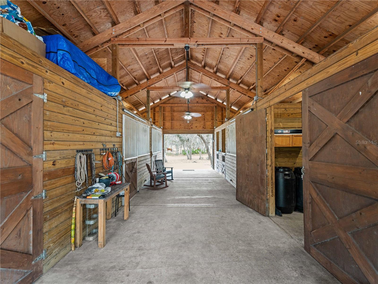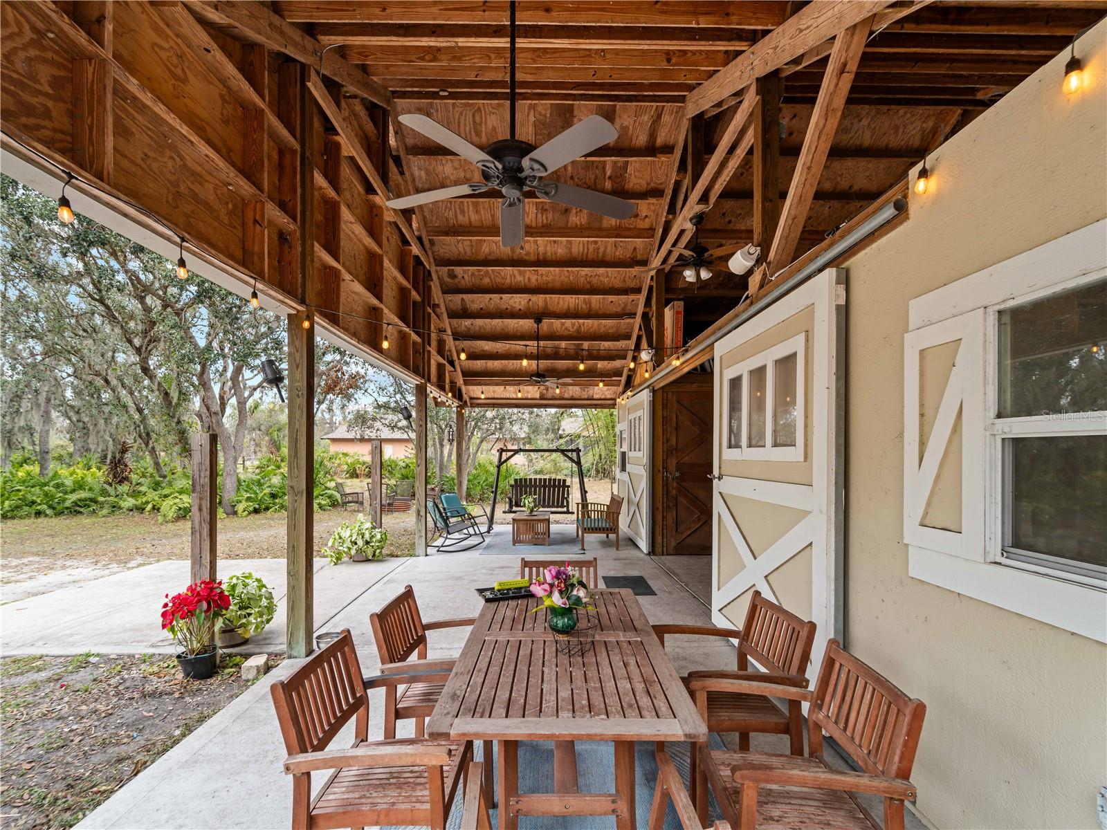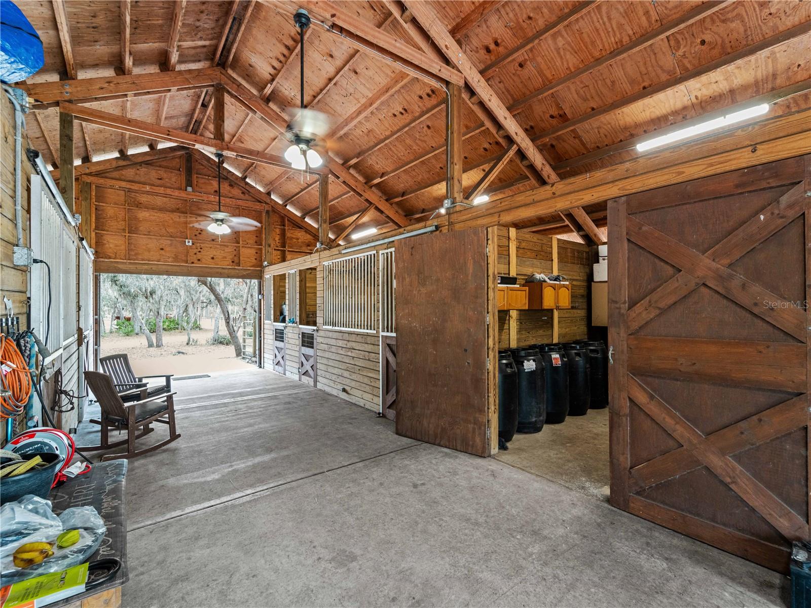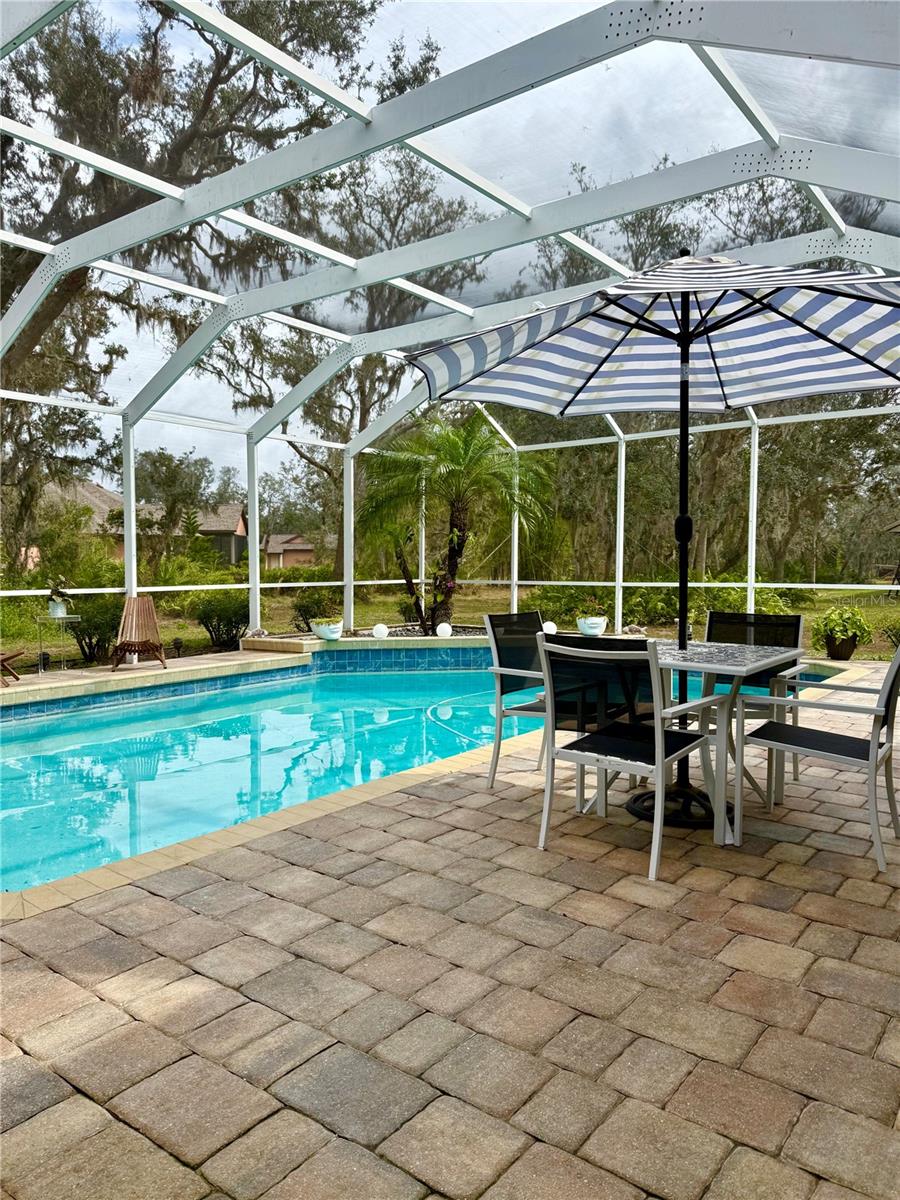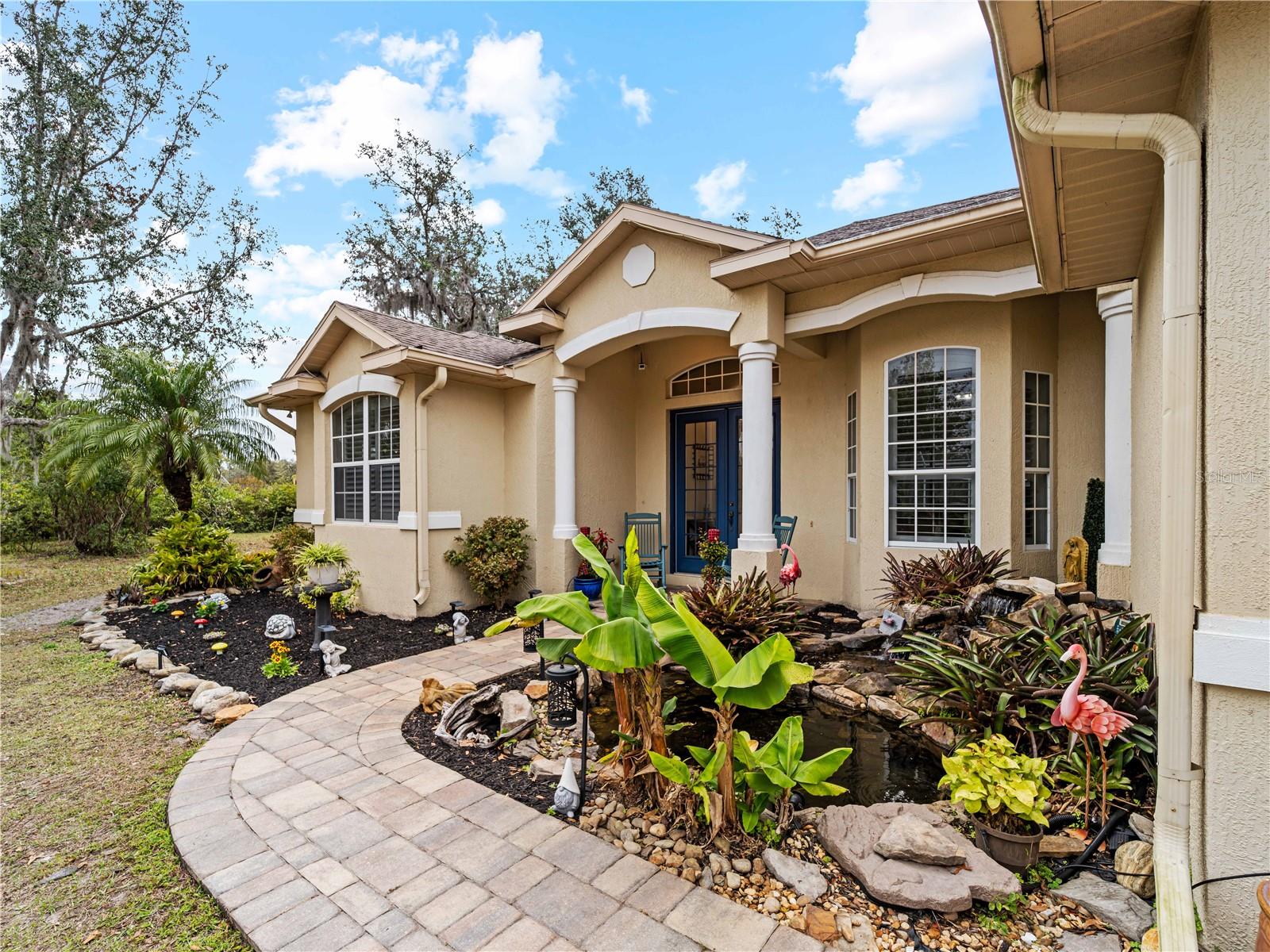 Price correction! This home is staged for you and vacant. Where are you going to find over 5 acres, a single family home, a Pole Barn and RV Garage for this price? Come live near everything the Lakewood Ranch area has, but with all the space that you need! Located in Saddlebag Creek Ranches, This Four bedroom, Three bath, Pool home is situated on a beautiful 5+ acre property! You are greeted by a Brand new $10,000 front gate installed in 2024 with a keypad for entry. Down the extensive driveway, take the sidewalk to the front door and pass by the beautiful Koi pond and lush landscaping. Walk through the large double front doors into the formal living room with its cathedral ceilings and sliders out to the lanai with beautiful pavers. The dining room, with its plantation shutters and ample space for all of your family gatherings. The beautifully remodeled kitchen is accented by a breakfast bar to sit and enjoy conversations with the cook. Complemented by a walk in pantry, island work station and built in computer desk alongside the kitchen nook overlooking the pool through the aquarium window. There is a separate laundry room and another set of washer/dryers in the RV garage for all that dirty yard clothing! The Primary bedroom is very spacious and has His and Hers walk in closets, a large bathroom with two separate sinks, a vanity area, a Garden tub and a large walk in shower. Bedrooms 1 and 2 are located on the opposite end of the house in their own separate wing, with a shared bathroom in between and a pocket door for privacy. The Fourth bedroom is located off the Family room at the back of the house with an ensuite bathroom with walk in shower. This room can also be used as an office or den as well as the pool bathroom. There is a 30 x 16 Saltwater pool with new pool equipment. A new well pump was installed in 2024 for the septic tank. The garage is a very spacious 3 car side entry. Did I mention that the Roof is being replaced before closing? Further back into the yard there is a large pole barn (48 x 36) built in 2018 with (Three) 12 x 12 Stalls with automated water, (Two) 6 x 12 Mini stalls, a 12 x 12' Feed room and a 12 x 12 Tack room with storage above. The barn has a 12 x 36 covered front porch area to sit and enjoy your evening looking at the stars while enjoying a glass of wine. Opposite the pole barn is a 34 x 24 garage that can house your RV or Boat with a floor to ceiling 20' peak! The two front doors are 12 foot tall roll doors. The back door is 10 ft tall and the garage has an elevated 12 x 12 storage space and underneath that a workspace with dedicated electric for those late nights tinkering. You will also find in the garage a spare set of washer and dryers for all the dirty clothes from yard work! The entire perimeter of this property is fenced with field fencing and cross fenced as well. Along the front of the property it is four board fenced. There is water access for the pastures in multiple locations as well as a covered feed and water area for the cows and horses. The property has an irrigated garden area as well as fruit trees such as: Orange, Grapefruit, Tangerine, Fig, Mango, Guava and Avocado! Topping it off with a 2 1/2 mile wooded bridle trail within the neighborhood. The livestock is also available for purchase through a separate addendum. Come out and see this property and enjoy the fresh air before it is SOLD!