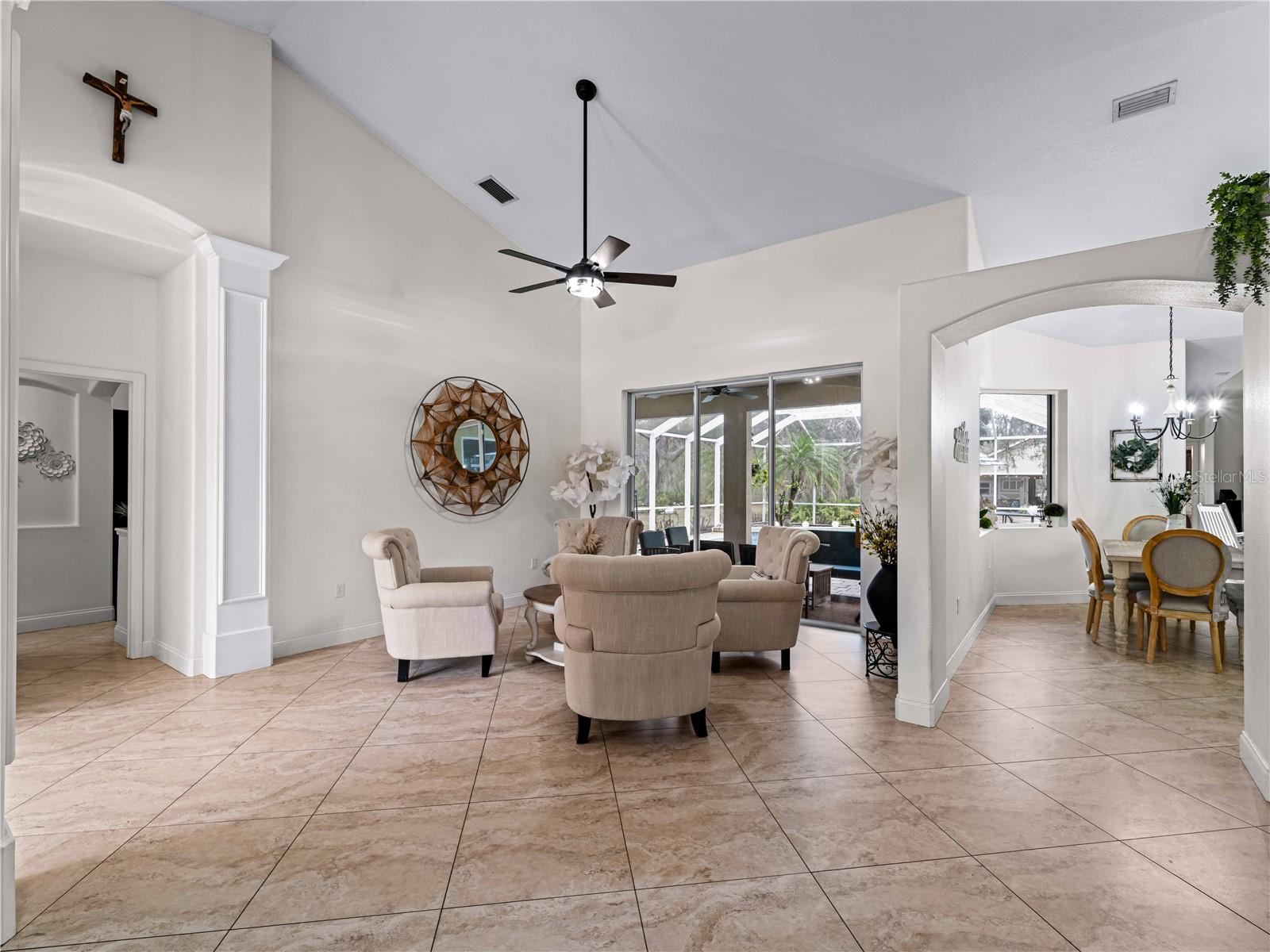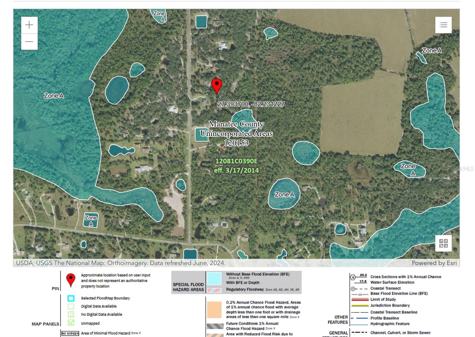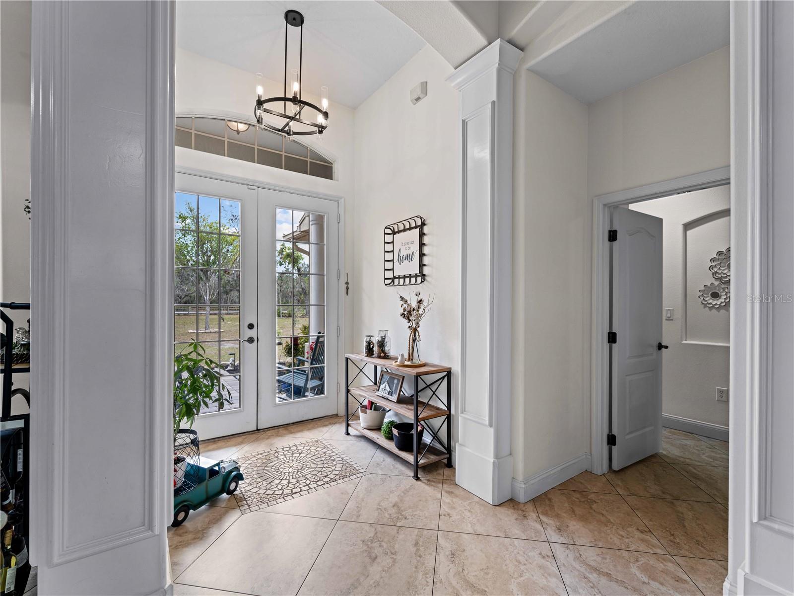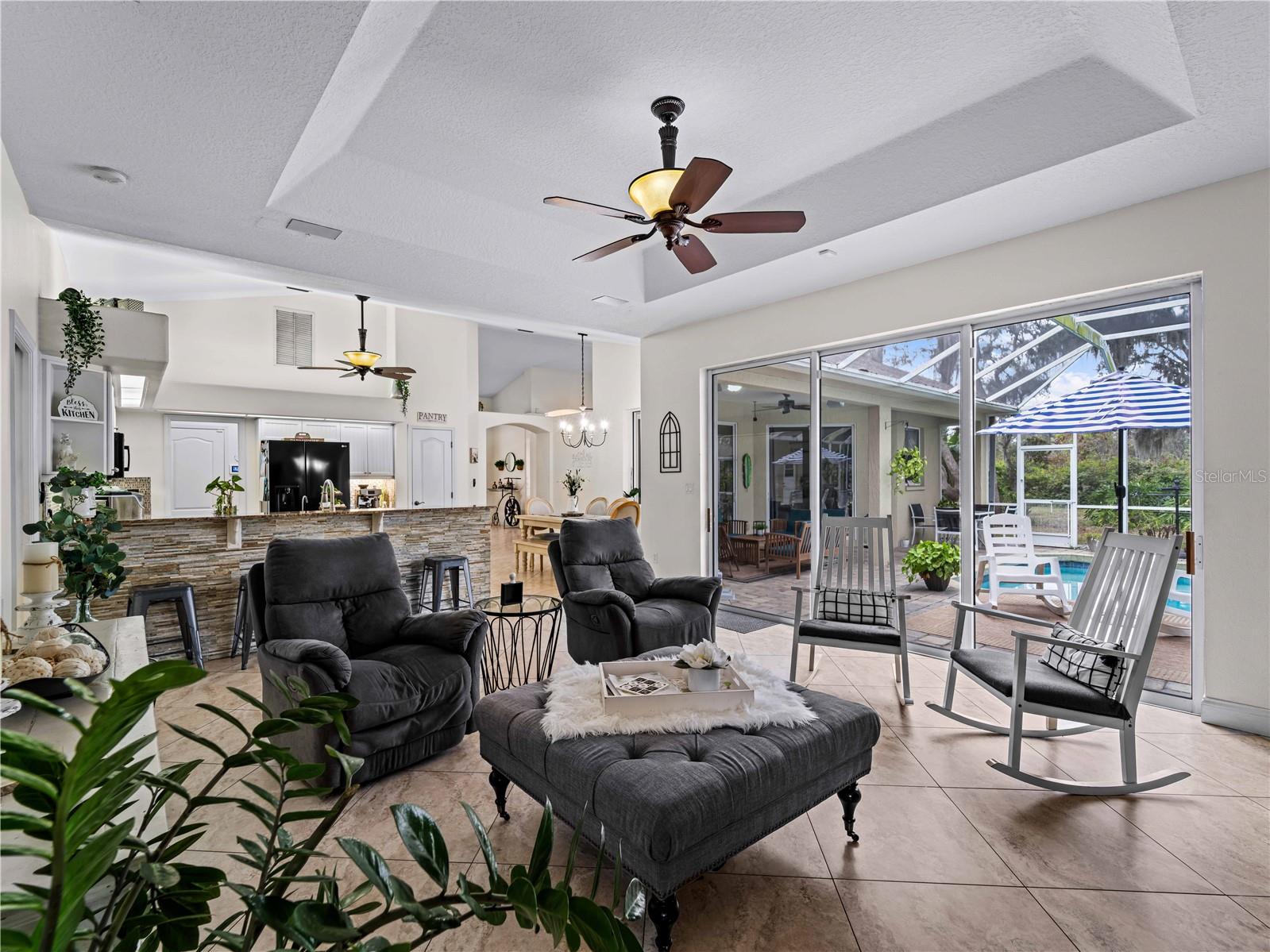 Price correction! This home is staged for you and vacant. Where are you going to find over 5 acres, a single family home, a Pole Barn and RV Garage for this price? Come live near everything the Lakewood Ranch area has, but with all the space that you need! Located in Saddlebag Creek Ranches, This Four bedroom, Three bath, Pool home is situated on a beautiful 5+ acre property! You are greeted by a Brand new $10,000 front gate installed in 2024 with a keypad for entry. Down the extensive driveway, take the sidewalk to the front door and pass by the beautiful Koi pond and lush landscaping. Walk through the large double front doors into the formal living room with its cathedral ceilings and sliders out to the lanai with beautiful pavers. The dining room, with its plantation shutters and ample space for all of your family gatherings. The beautifully remodeled kitchen is accented by a breakfast bar to sit and enjoy conversations with the cook. Complemented by a walk in pantry, island work station and built in computer desk alongside the kitchen nook overlooking the pool through the aquarium window. There is a separate laundry room and another set of washer/dryers in the RV garage for all that dirty yard clothing! The Primary bedroom is very spacious and has His and Hers walk in closets, a large bathroom with two separate sinks, a vanity area, a Garden tub and a large walk in shower. Bedrooms 1 and 2 are located on the opposite end of the house in their own separate wing, with a shared bathroom in between and a pocket door for privacy. The Fourth bedroom is located off the Family room at the back of the house with an ensuite bathroom with walk in shower. This room can also be used as an office or den as well as the pool bathroom. There is a 30 x 16 Saltwater pool with new pool equipment. A new well pump was installed in 2024 for the septic tank. The garage is a very spacious 3 car side entry. Did I mention that the Roof is being replaced before closing? Further back into the yard there is a large pole barn (48 x 36) built in 2018 with (Three) 12 x 12 Stalls with automated water, (Two) 6 x 12 Mini stalls, a 12 x 12' Feed room and a 12 x 12 Tack room with storage above. The barn has a 12 x 36 covered front porch area to sit and enjoy your evening looking at the stars while enjoying a glass of wine. Opposite the pole barn is a 34 x 24 garage that can house your RV or Boat with a floor to ceiling 20' peak! The two front doors are 12 foot tall roll doors. The back door is 10 ft tall and the garage has an elevated 12 x 12 storage space and underneath that a workspace with dedicated electric for those late nights tinkering. You will also find in the garage a spare set of washer and dryers for all the dirty clothes from yard work! The entire perimeter of this property is fenced with field fencing and cross fenced as well. Along the front of the property it is four board fenced. There is water access for the pastures in multiple locations as well as a covered feed and water area for the cows and horses. The property has an irrigated garden area as well as fruit trees such as: Orange, Grapefruit, Tangerine, Fig, Mango, Guava and Avocado! Topping it off with a 2 1/2 mile wooded bridle trail within the neighborhood. The livestock is also available for purchase through a separate addendum. Come out and see this property and enjoy the fresh air before it is SOLD!