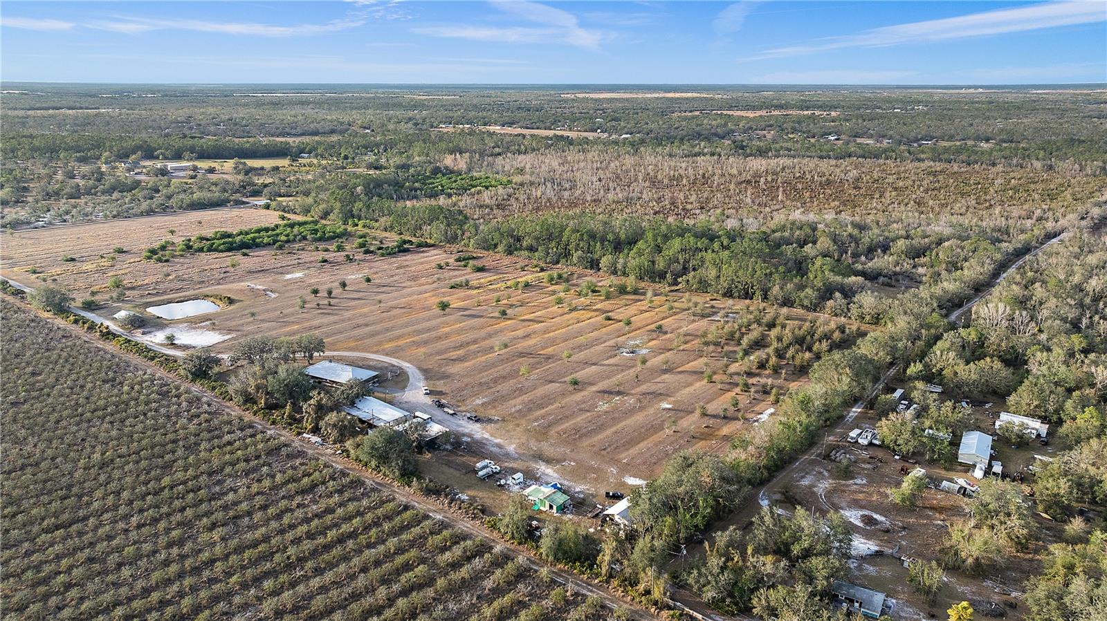 Back on the market due to buyers financing fell through! Once-in-a-Lifetime Opportunity to Own 97 Acres of Privacy in Myakka City!! Escape to your personal paradise with this exceptional 97acre property, a rare gem that offers unparalleled privacy, fresh air, and serene tranquility. This stunning estate features a spacious open floor plan, showcasing an updated kitchen adorned with elegant granite countertops and solid wood cabinets. With three generous bedrooms and two well-appointed bathrooms, this home is perfect for families and entertaining. The oversized bonus room provides ample space for recreation or relaxation, while the airconditioned three-bay oversized garage, measuring an impressive 40 x 80, meets all your storage and workspace needs. Enjoy modern conveniences with a new water softener, fiber optic internet, and a durable metal roof. The expansive deck surrounding the entire home allows for outdoor enjoyment, and the property's three-zone air conditioning ensures comfort throughout. Recent county code changes open up a unique opportunity for multiple Accessory Dwelling Units (ADUs), making this ideal for a family compound. The 10”deep permitted well, equipped with a power unit, guarantees a reliable water source. Enjoy the benefits of a previous 40 acres of grove still permitted for continued cultivation for 15 more years, overseen by the Southwest Florida Management District, with mainline irrigation already in place.The home includes a well-maintained, 375-foot-deep house well, a small open-air horse barn with four stalls, and additional outbuildings including a large pole barn—all with their own meters for electricity and water. The house is currently set up for propane, with electric wiring for added convenience, making it energy-efficient with an average electric bill between $120 and $175. Relax by the 24-foot round above-ground pool equipped with a regular pump and filter, perfectly situated for enjoyment. The property brims with wildlife, including deer and turkeys, enhancing its peaceful ambiance. The yard is securely fenced, featuring a doggie door for your pets, and a 25-foot deep pond stocked with catfish perfect for recreational fishing or swimming—all offering a wonderful lifestyle in the heart of nature.This property is fully equipped for livestock and equestrian use, making it ideal for horse enthusiasts. Just minutes away from the new Soleta Golf Club and The world class TerraNova Equestrian Center this estate offers an unrivaled solitude like no other! . Don’t miss your chance to own this extraordinary property—schedule your private tour today!