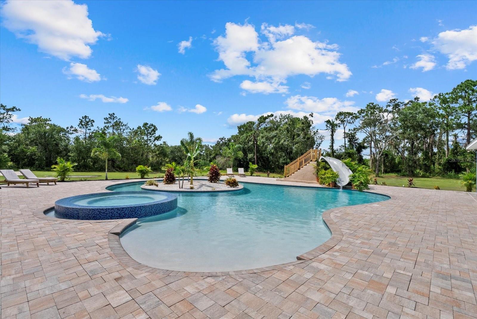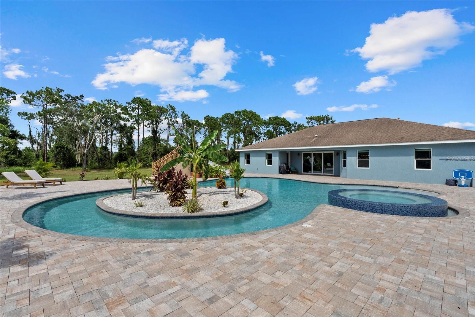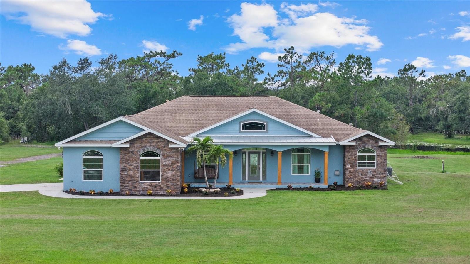 Amazing 5 acre estate property just 10 minutes from Lakewood Ranch, perfect for those who want the privacy and the feel of living in the country and still being close to all amenities. This exquisite 2018 single-story estate offers 2,998 sq. ft. of beautifully designed living space with 4 bedrooms, 3 baths, and a versatile flex room that can serve as an office, formal dining room, or play space. The home features an open-concept entertaining area with a large, bright kitchen—perfect for gathering with family and friends. Recent upgrades have transformed the property into a true resort-style paradise, starting with the spectacular pool complex boasting a functional lazy river, beach entry, thrilling 15-foot slide, and a luxurious 12-person spa. A state-of-the-art Pentair automation system allows you to control every feature with ease, while a 400,000 BTU heater and five ENERGY-STAR variable-speed pumps (two dedicated to the lazy river) keep everything running efficiently. The newly poured 40' × 50' concrete slab is permitted and engineered for a structure, could also be perfect as a sports court. Would be great for pickleball, tennis, basketball, or any activity you desire. Offering the perfect blend of luxury, recreation, and comfort in a private country setting, this home is the ultimate year-round retreat.