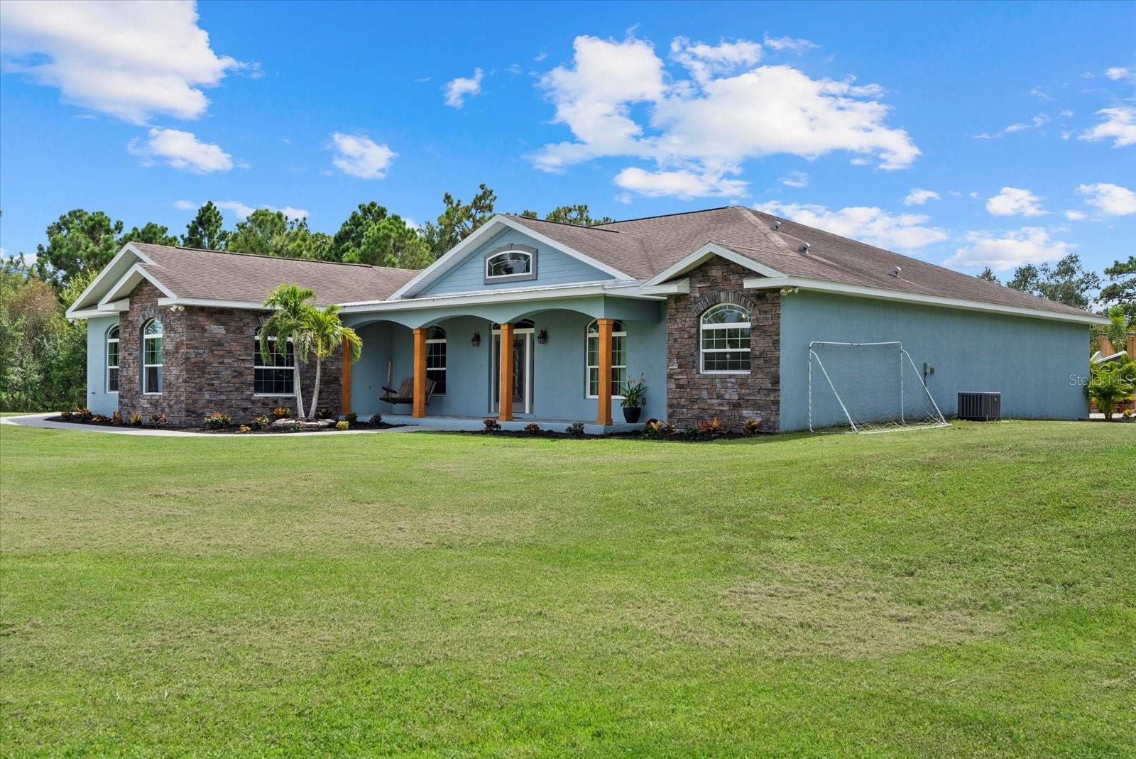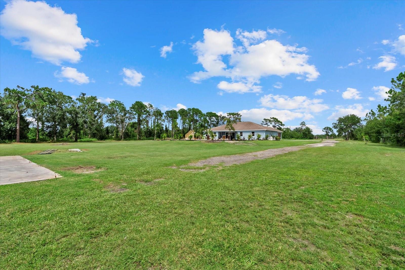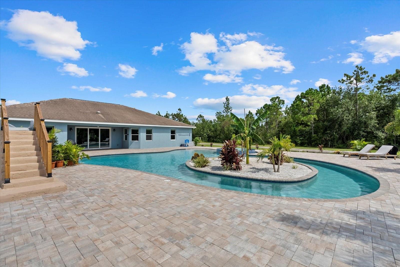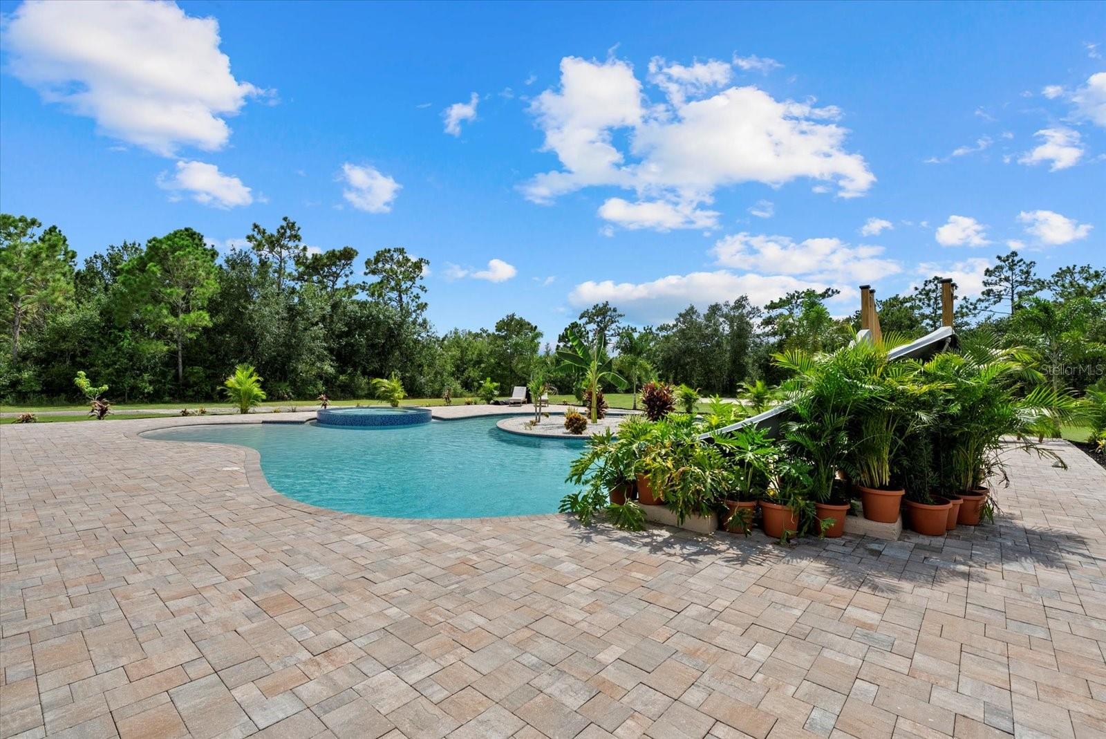 Amazing 5 acre estate property just 10 minutes from Lakewood Ranch, perfect for those who want the privacy and the feel of living in the country and still being close to all amenities. This exquisite 2018 single-story estate offers 2,998 sq. ft. of beautifully designed living space with 4 bedrooms, 3 baths, and a versatile flex room that can serve as an office, formal dining room, or play space. The home features an open-concept entertaining area with a large, bright kitchen—perfect for gathering with family and friends. Recent upgrades have transformed the property into a true resort-style paradise, starting with the spectacular pool complex boasting a functional lazy river, beach entry, thrilling 15-foot slide, and a luxurious 12-person spa. A state-of-the-art Pentair automation system allows you to control every feature with ease, while a 400,000 BTU heater and five ENERGY-STAR variable-speed pumps (two dedicated to the lazy river) keep everything running efficiently. The newly poured 40' × 50' concrete slab is permitted and engineered for a structure, could also be perfect as a sports court. Would be great for pickleball, tennis, basketball, or any activity you desire. Offering the perfect blend of luxury, recreation, and comfort in a private country setting, this home is the ultimate year-round retreat.
