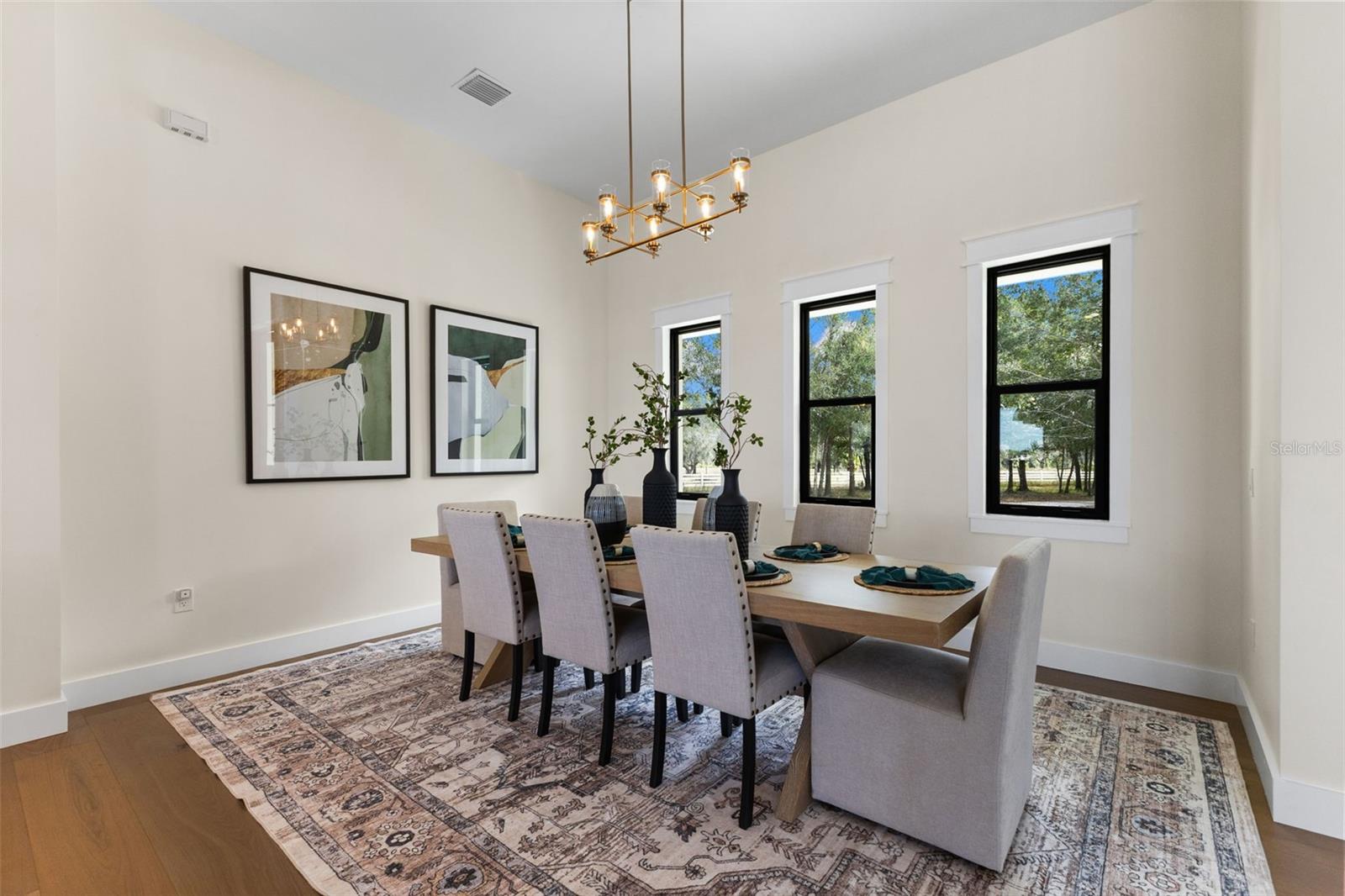 Welcome to an extraordinary 2025 luxury modern farmhouse estate, offering 3,591 square feet of refined heated living space and 5,595 total square feet of thoughtfully crafted design. Set on an expansive, seaplane-friendly lakefront property, this residence blends modern elegance with timeless farmhouse character to create a lifestyle of comfort, sophistication, and privacy. A striking aluminum roof and an impressive 50-foot covered front porch set the tone upon arrival. Inside, soaring 12-foot ceilings and a dramatic 14-foot cathedral ceiling over the living room and kitchen create an expansive, light-filled atmosphere. Custom hardwood floors, premium stone selections, and meticulous craftsmanship elevate every inch of the interior. The chef’s kitchen is a true centerpiece of the home, curated for both beauty and performance. It features premium appliances, including a 48-inch gas range with hood and pot filler, a Sub-Zero refrigerator and freezer, and a dedicated hot beverage station. Solid wood cabinetry is enhanced with soft LED accent lighting at the kick plates and beneath the upper cabinets, adding a warm and luxurious glow. A spacious walk-through pantry with its own sink provides added convenience and exceptional functionality. The estate offers four well-appointed bedrooms, five full baths, a private study or den, and a large bonus/play area ideally situated near the secondary bedrooms—perfect for families or guests. A multi-zoned air-conditioning system ensures personalized comfort throughout the home. The primary bedroom retreat is a sanctuary of style and serenity, featuring an ensuite adorned with expansive stonework, a built-in makeup vanity, and a standalone soaking tub positioned to overlook the surrounding woods. An expansive walk-in closet completes this luxurious space. The outdoor living experience is truly exceptional. A stunning lanai features a real wood-burning fireplace and overlooks a fully automated heated pool and spa. Beyond the pool lies approximately 500 feet of deeded water frontage along a breathtaking, considerably deep 48-acre lake. This rare body of water is ideal not only for boating, jet skis, and fishing but is also perfectly suited for seaplane access. You can build your own private dock and enjoy the unparalleled beauty and freedom of true lakefront living. The estate includes two separate garages: a traditional two-car garage and an oversized one-car garage ideal for storing tools, machinery, or ATV’s to run the property with. Horses are welcome, offering even greater versatility and lifestyle options. A rare and unique benefit of this location is its just 14 miles to the Wauchula Municipal Airport, a low-volume airport which serves mostly the needs of private and recreational aviation. An exceptional feature for aviation enthusiasts seeking convenient, private access. Despite the tranquil setting, the home remains only 20 minutes from the Lakewood Ranch area for grocery stores, dining, and conveniences. Bradenton is roughly 35 minutes away, Sarasota approximately 40 minutes, and Anna Maria Island’s world-class Gulf beaches just 50 to 55 minutes from your doorstep.