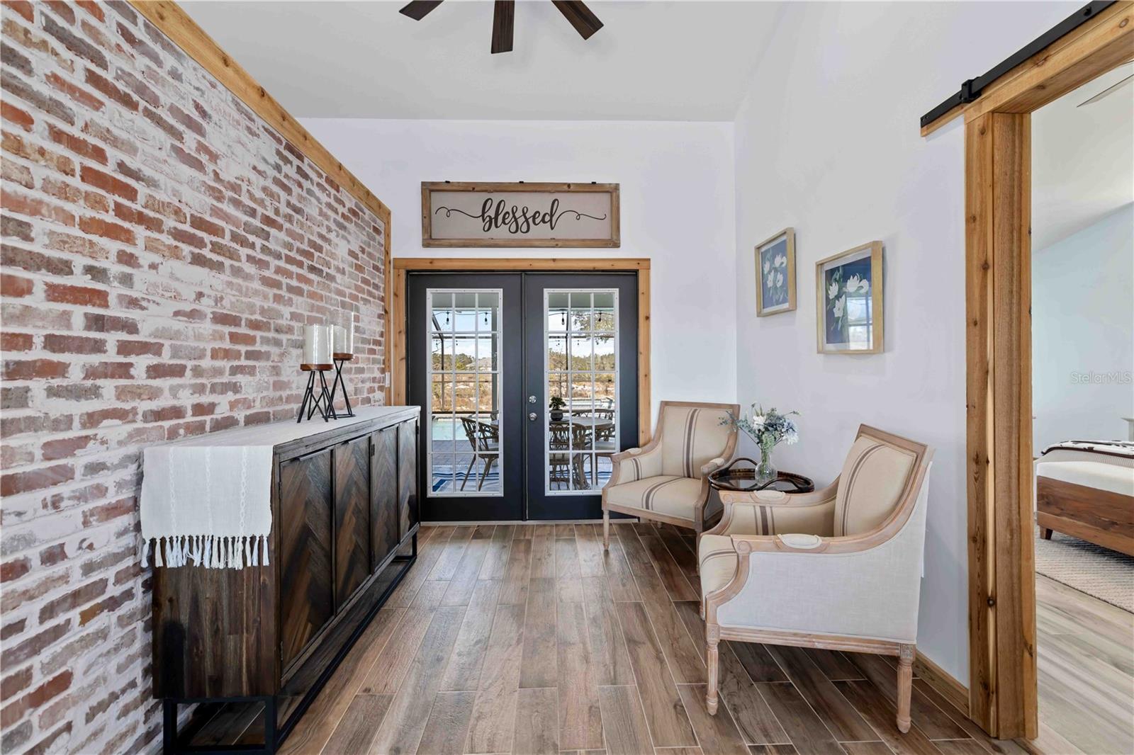 Welcome to your private Myakka City retreat, where space, freedom, and thoughtful upgrades come together on 5 beautifully cleared acres. A 300-foot concrete driveway leads you to this fully renovated property, offering the perfect blend of modern comfort and rural versatility. The main residence features 3 bedrooms and 2 bathrooms and has been completely renovated with new flooring, a brand-new kitchen, and an open interior layout designed for easy living and entertaining. Enjoy indoor-outdoor living from the large screened lanai overlooking the pool, ideal for relaxing after a day outdoors. A separate 1-bedroom, 1-bathroom guest house provides flexible space for visitors, multigenerational living, or potential rental use. Recent upgrades include hurricane impact windows installed in 2023 and a water softener added in 2023, offering peace of mind and efficiency. Outdoor enthusiasts and hobbyists will appreciate the 32x40 workshop/garage, 50-amp RV hookup, and a private bridge/dock in the backyard, perfect for fishing or enjoying the natural surroundings. With wide-open acreage ready for animals, toys, or future expansion, this property offers endless possibilities. If you’ve been searching for privacy, functionality, and move-in-ready living—without sacrificing modern updates—this Myakka City gem delivers it all.