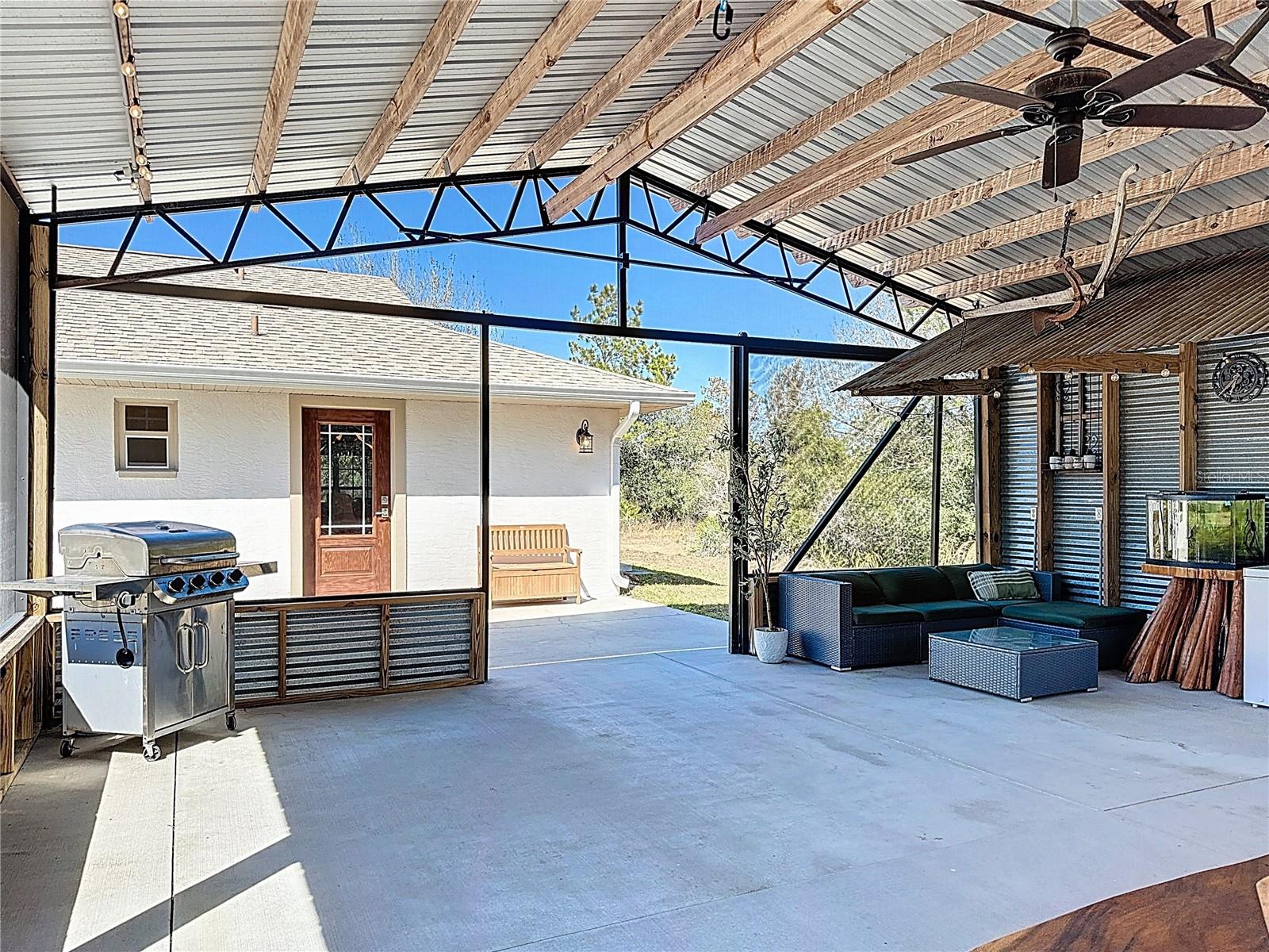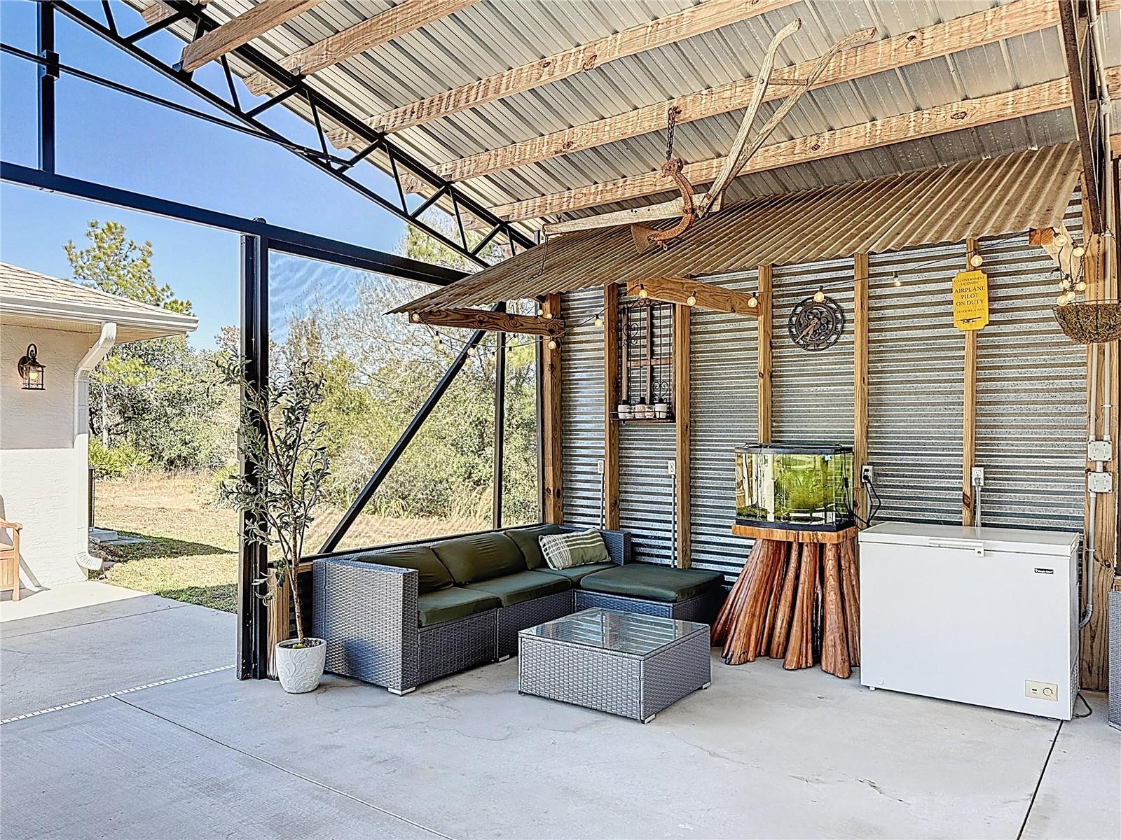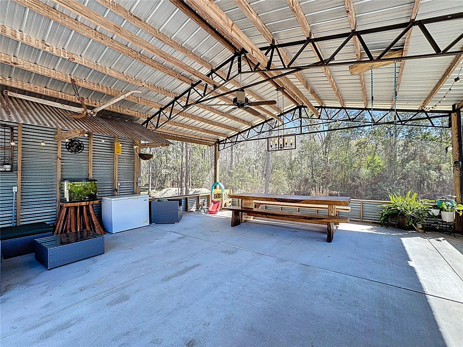 Well-maintained 2BR/2BA single-family home situated on 6.06 acres. Home offers 992 sq ft of living space with an updated kitchen and move-in ready condition. Interior features real solid hardwood floors sourced from a sawmill—not box store material—adding warmth and character throughout. Outstanding 60x30 detached metal building on concrete slab featuring a 12,000 lb 2-post lift (installed 2024), three roll-up doors (one on each end and one on side), and door clearance suitable for trailered boat or RV. Shop is equipped with water and ample power to support welder and compressor. Additional 30x30 detached screened patio with water and electric—ideal for entertaining or outdoor workspace. Property includes fenced area with medium-sized chicken house featuring automatic door and waterer. Mature woods with abundant wildlife and a stocked pond enhance the natural setting and recreational appeal. Ideal setup for hobbyist, mechanic, small business use, or those seeking private acreage with functional improvements.