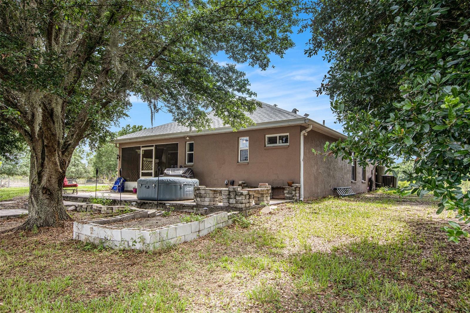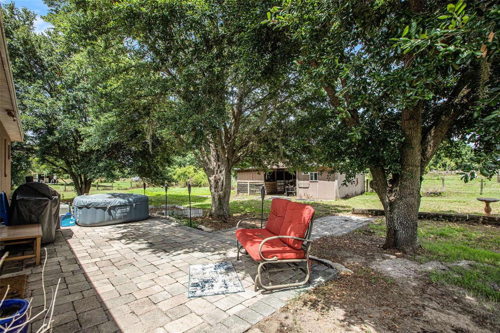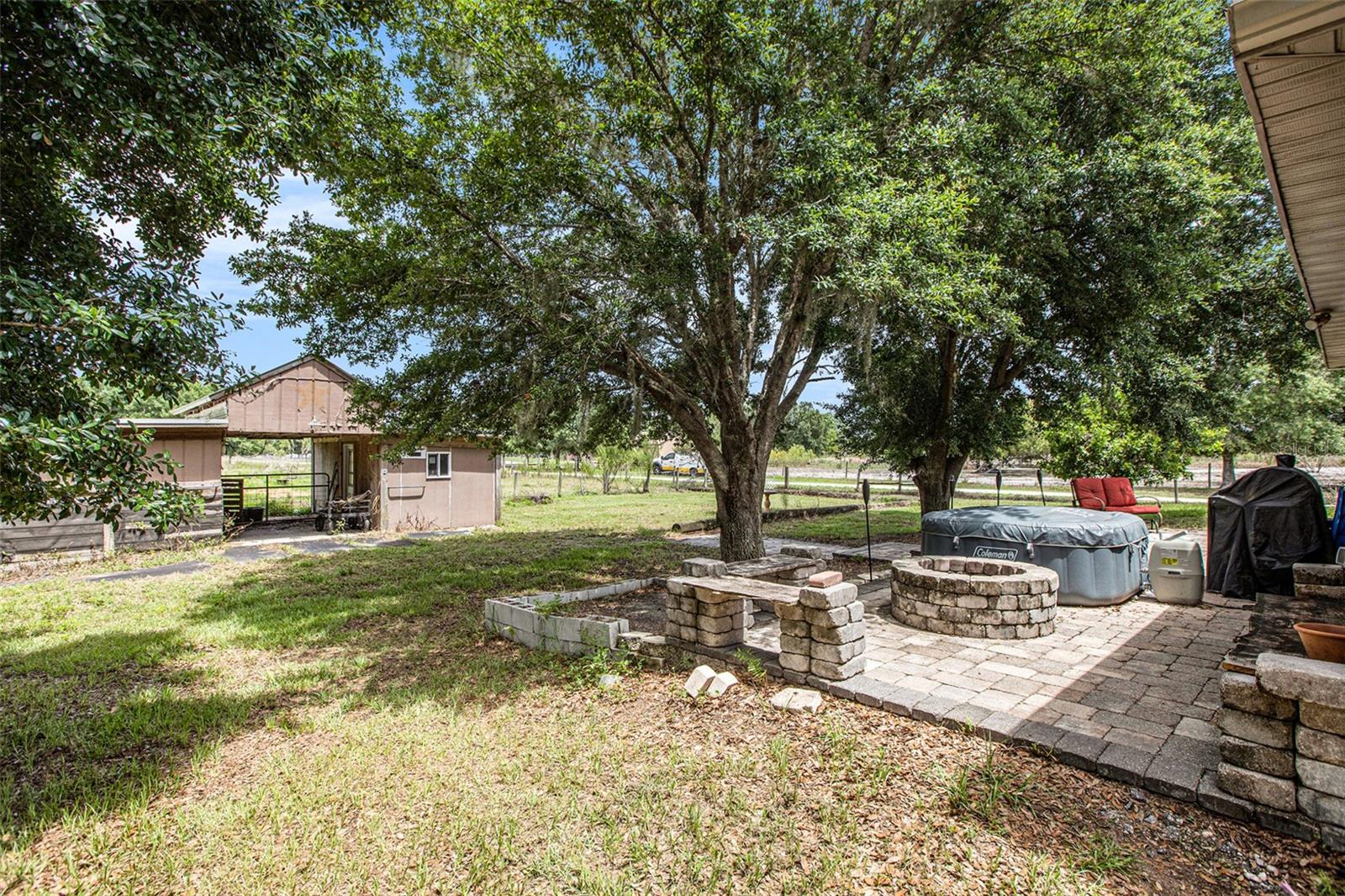 This delightful, 3-bedroom, 2-bathroom country solar home is nestled on 5 acres of fenced land, situated on a tranquil paved dead-end road with convenient access to Duette Reserve Park, offering 21,000 acres of picturesque horseback riding and walking trails. The kitchen boasts ample functional counterspace, a charming breakfast bar, and a double sink with a lovely front window view. Two sets of sliders, one from the master bedroom and the other from the spacious great room, open into a private patio and porch area. Outdoor amenities abound, including a stable, equipped with electric, a tack room, a serene pond, a canopy for trailers, a dog run and a 33' x 12' patio adorned with pavers and a cozy fire pit. The quiet ambiance of the property is enhanced with outdoor lighting and shaded by beautiful trees. The front pasture boasts a pond while the back pasture is home to the stable sectioned off in 3 fenced parcels and with no deed restrictions in place, this property welcomes horses, cows, goats, and donkeys, and offers a private setting for your agricultural hobbies. With a new roof in 2023 and newer appliances (water heater, dishwasher, kitchen refrigerator, low profile built-in microwave, water softener and attic exhaust fan), this home offers peace of mind. Just 3 minutes to the Manatee Gun and Archery Club!