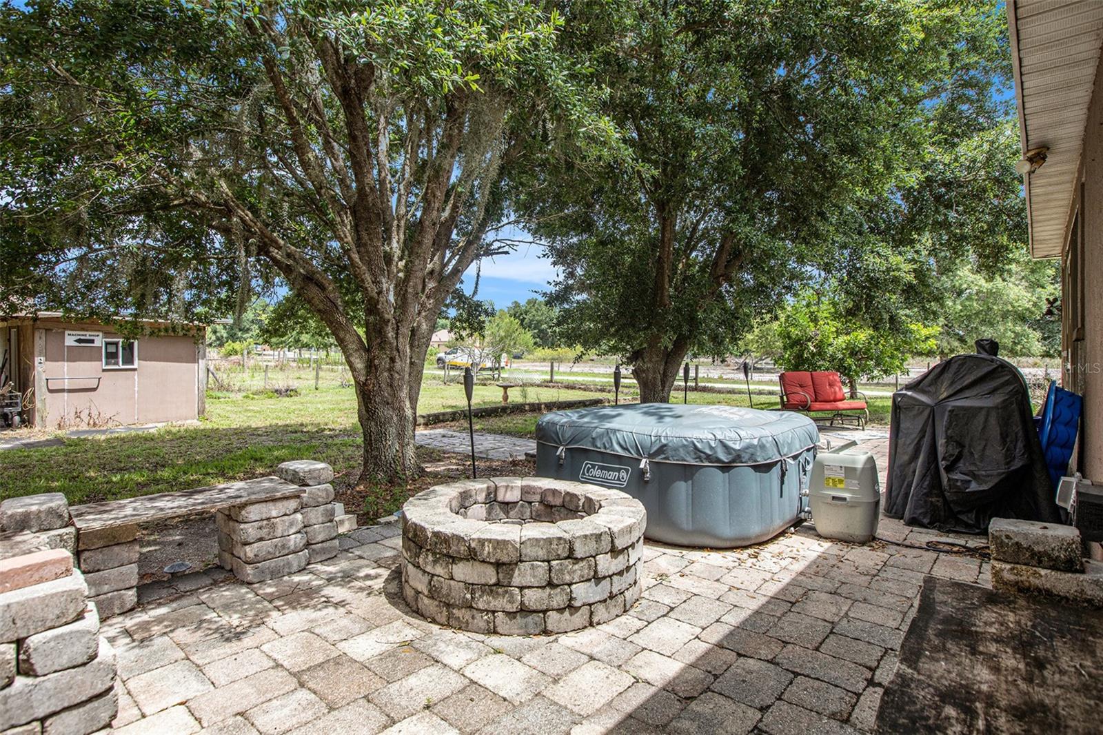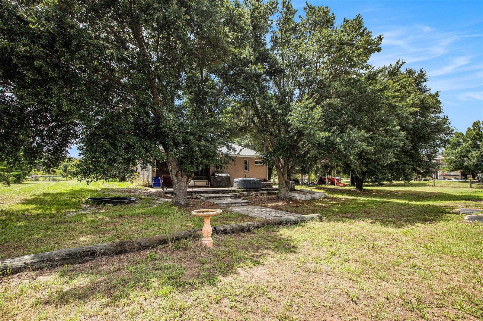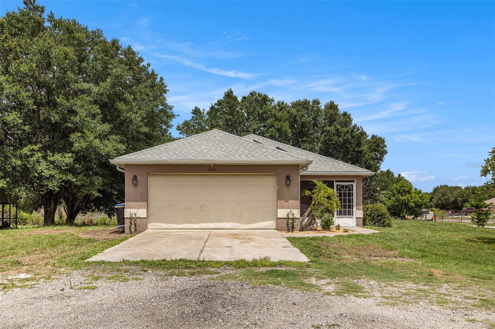 This delightful, 3-bedroom, 2-bathroom country solar home is nestled on 5 acres of fenced land, situated on a tranquil paved dead-end road with convenient access to Duette Reserve Park, offering 21,000 acres of picturesque horseback riding and walking trails. The kitchen boasts ample functional counterspace, a charming breakfast bar, and a double sink with a lovely front window view. Two sets of sliders, one from the master bedroom and the other from the spacious great room, open into a private patio and porch area. Outdoor amenities abound, including a stable, equipped with electric, a tack room, a serene pond, a canopy for trailers, a dog run and a 33' x 12' patio adorned with pavers and a cozy fire pit. The quiet ambiance of the property is enhanced with outdoor lighting and shaded by beautiful trees. The front pasture boasts a pond while the back pasture is home to the stable sectioned off in 3 fenced parcels and with no deed restrictions in place, this property welcomes horses, cows, goats, and donkeys, and offers a private setting for your agricultural hobbies. With a new roof in 2023 and newer appliances (water heater, dishwasher, kitchen refrigerator, low profile built-in microwave, water softener and attic exhaust fan), this home offers peace of mind. Just 3 minutes to the Manatee Gun and Archery Club!