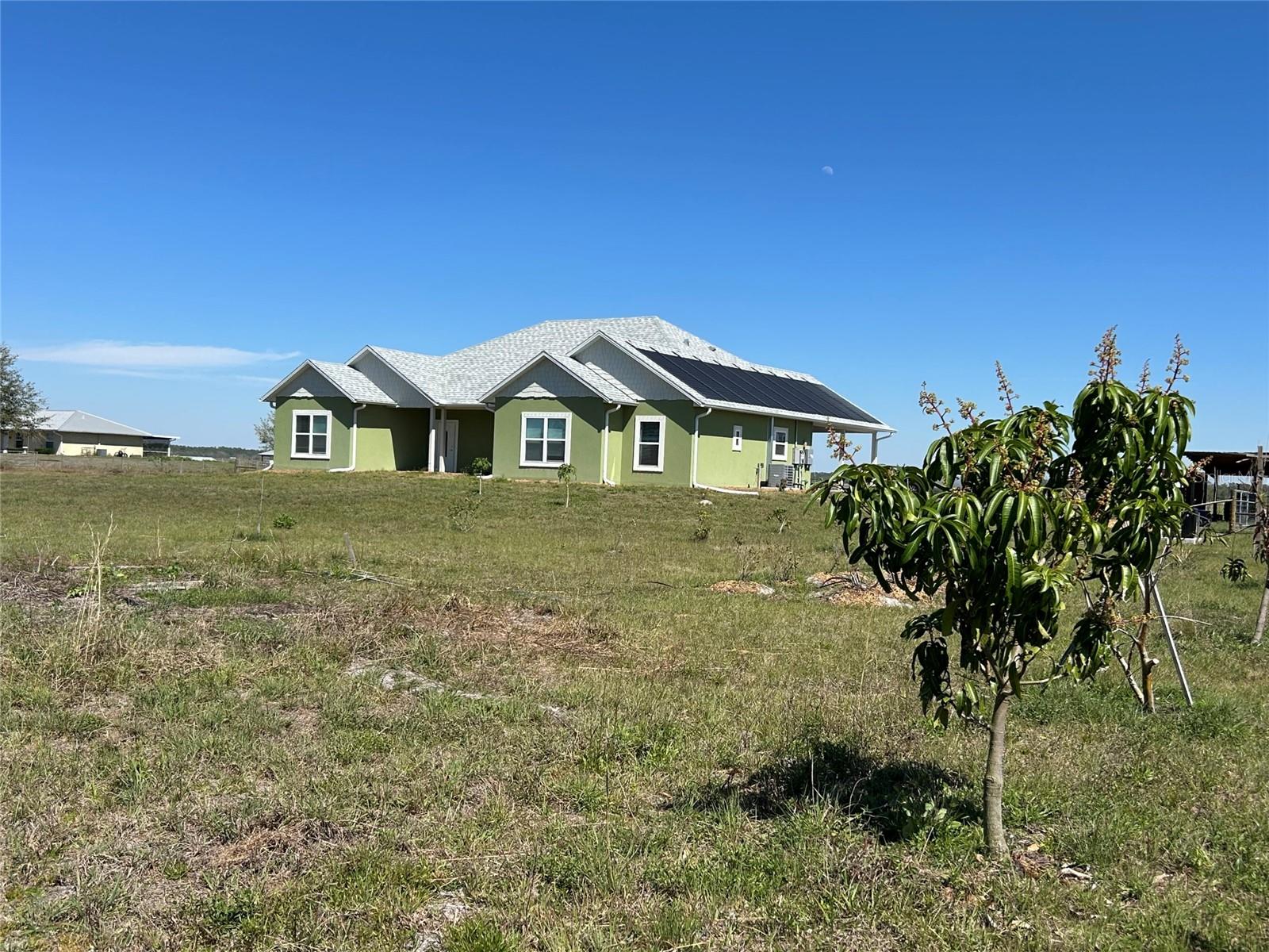 Welcome home to this new and energy efficient and strongly built ICF home. Split floor plan with higher ceilings and cathedral ceiling in the spacious living area. It has low maintenance LVT flooring throughout. Custom kitchen cabinets with generous counter space. Gas range with convection oven and gas grill hook up on the large back porch. Spacious master suite has a walk-in closet, large walk-in shower, and double vanities. Solar shingles with 25 year warranty keep your electric bills low. ($27.38 for December) Spray foam insulation in attic space. Energy efficient HVAC system has a whole house fresh air intake and dehumidifier.The property is completely fenced for your pets and livestock. Deep well with 1.5 HP submersible pump and water filtration system.