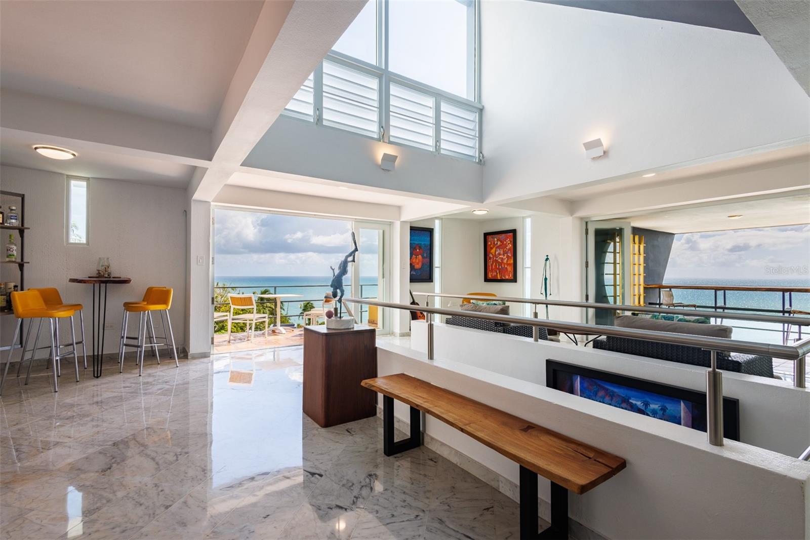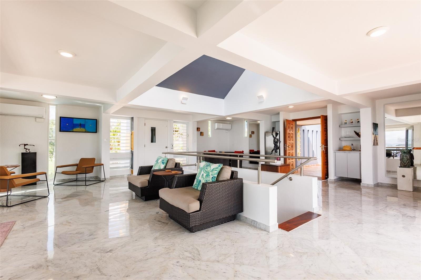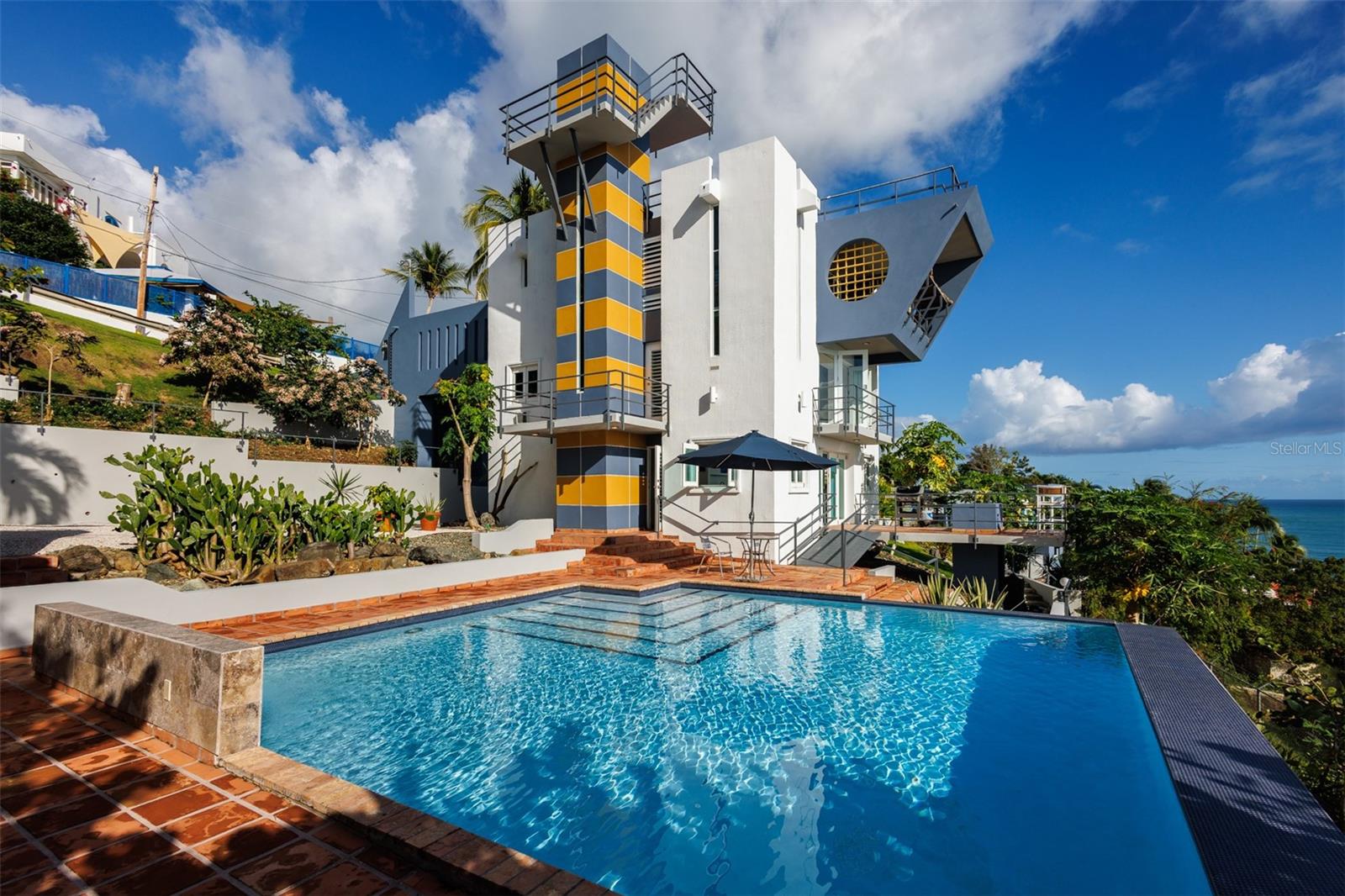 Located in the exclusive gated community of Mar Caribe, this architectural masterpiece overlooks Playa Fanduca. Designed by local architect Marcos Rodriguez Alonso, the main house spans three floors plus a rooftop terrace, featuring 6 bedrooms, 5 baths, an elevator, floor-to-ceiling windows, a gourmet kitchen, and multiple terraces with breathtaking ocean views. A separate two-story guesthouse offers additional privacy. Outdoors, enjoy a resort-style pool, lush gardens, and serene lounging areas. Steps from the beach and minutes from El Yunque, this estate offers an unmatched Caribbean lifestyle.