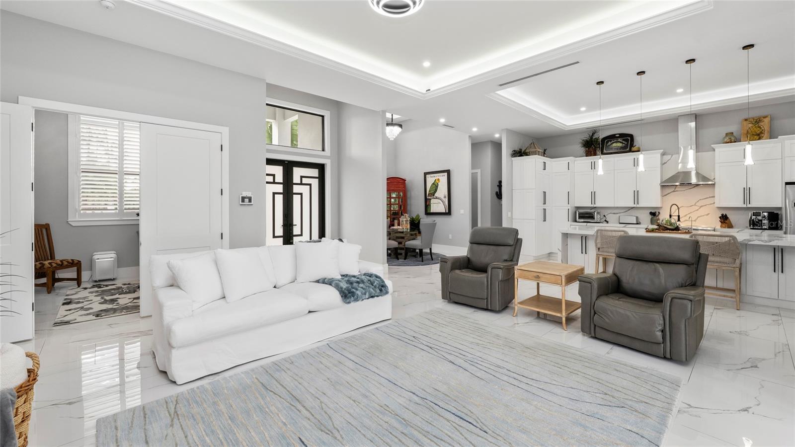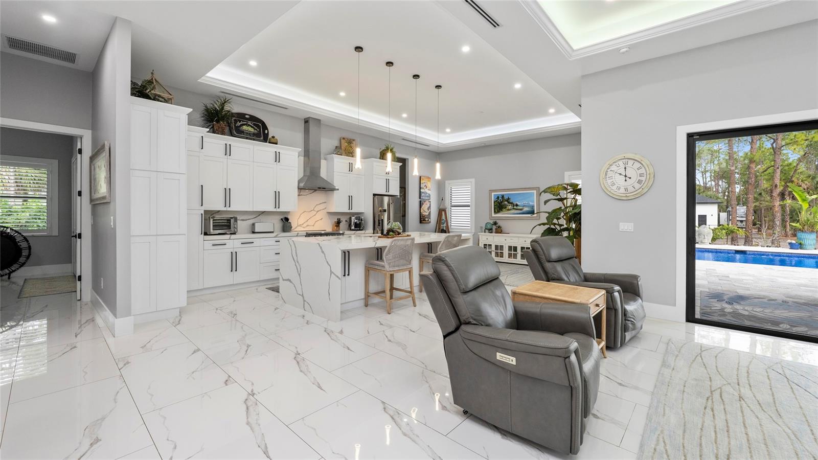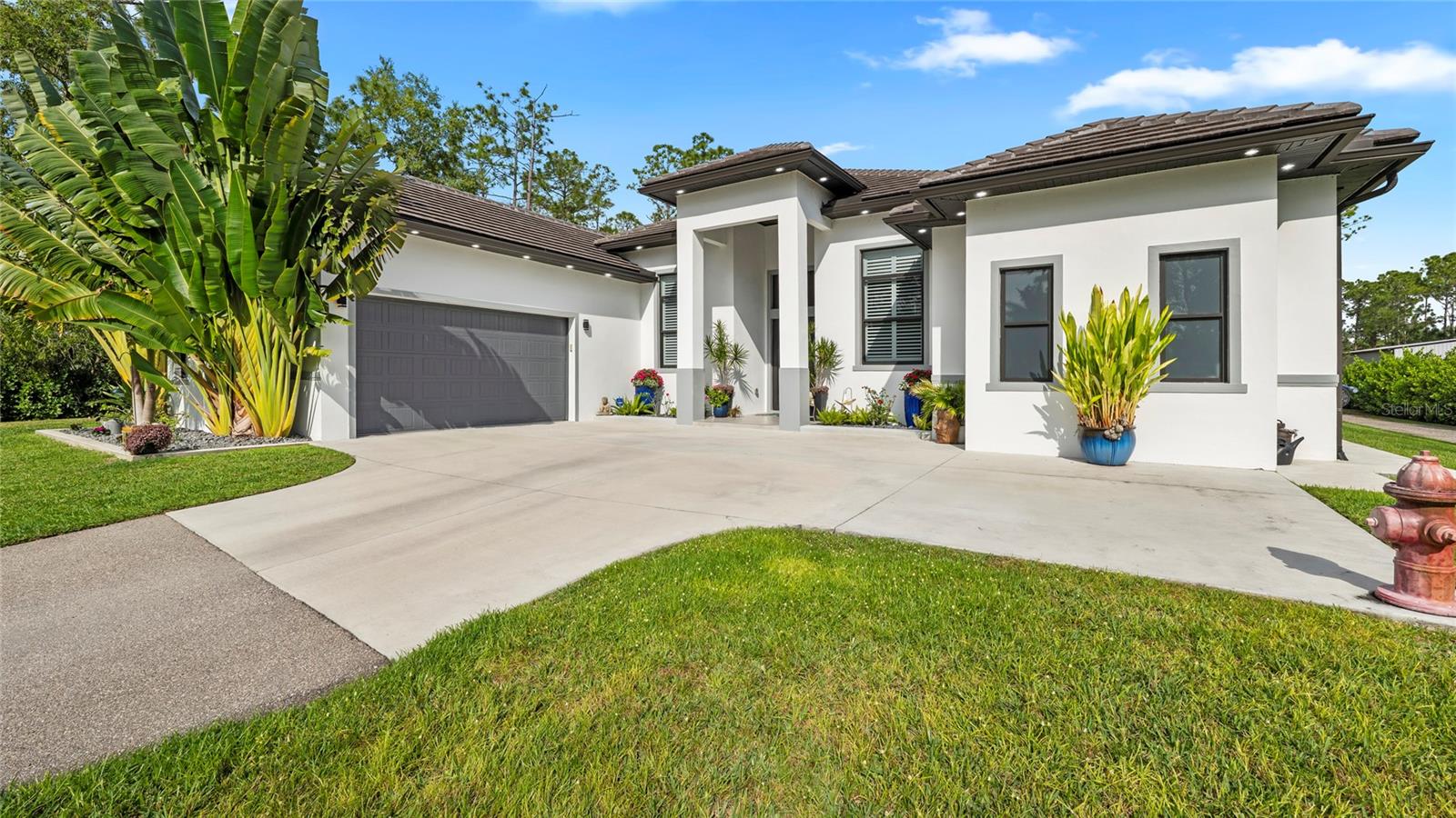 Set on 2.27 acres of 100% uplands in Golden Gate Estates, this custom-built estate home offers a rare combination of privacy, infrastructure, and flexibility with no HOA restrictions and fully usable land. Designed for buyers who value space, craftsmanship, and functionality, this property delivers what most new builds cannot: land, permits, and freedom already in place. The single-story concrete block residence features 4 bedrooms plus a den and 5 bathrooms, including a private guest suite ideal for multi-generational living. An open-concept, split-bedroom layout is enhanced by 11-foot ceilings, 12-foot tray ceilings, 8-foot interior doors, crown molding, and tile flooring throughout, creating a clean, modern flow with timeless finishes. At the heart of the home, the chef’s kitchen showcases 3-inch quartz countertops, a dramatic waterfall island, full quartz backsplash, solid wood soft-close cabinetry with dovetail construction, and a premium Thor stainless steel appliance package. The primary suite offers a spa-like retreat with a freestanding soaking tub, oversized walk-in shower, Calacatta quartz finishes, and dual vanities. Outdoor living is equally impressive, featuring an oversized screened lanai with tongue-and-groove ceilings, a fully equipped outdoor kitchen, a half bath, and 60+ exterior LED soffit lights that highlight the home at night. The resort-style pool is finished with a travertine deck and surrounded by professionally landscaped grounds, creating a private, peaceful setting ideal for entertaining or everyday enjoyment. A true standout feature is the detached 40’ x 62’ air-conditioned concrete block garage, complete with two 12’ x 14’ hurricane-rated doors and an attached covered RV/boat parking area. This structure is fully permitted and ideal for car collectors, RV owners, workshops, or hobby use, with separate rear driveway access for convenience and privacy. Additional highlights include impact-resistant windows and doors, two Trane A/C systems with UV air purification, whole-house reverse osmosis, tankless water heater, smart home technology with Cat6 wiring, electric gated entry, full perimeter fencing, and horses permitted. There is ample room for future structures such as a guest house or additional workshop, with no special permitting required. Located in a prime Golden Gate Estates setting, this property offers the space and freedom buyers seek, without the delays, uncertainty, or rising costs of building new. A rare opportunity to own a fully realized estate where land, luxury, and functionality come together.