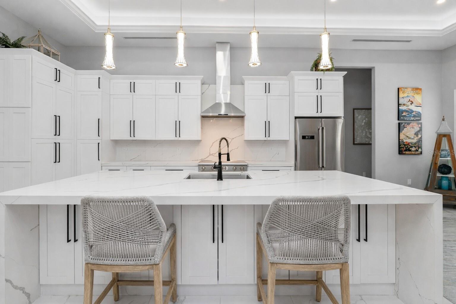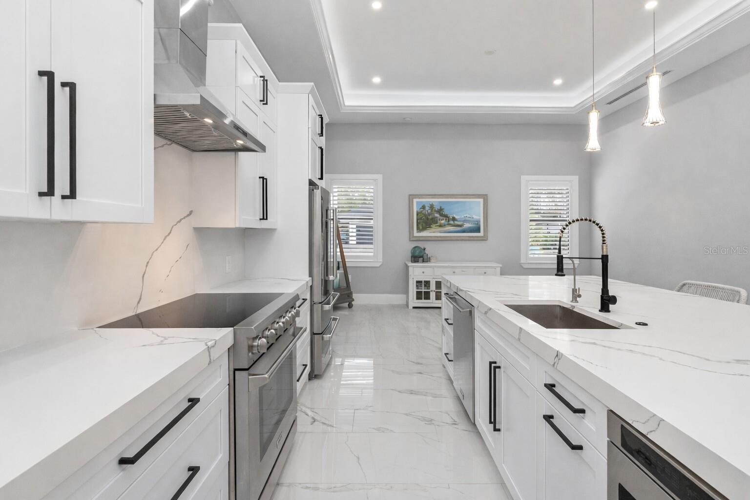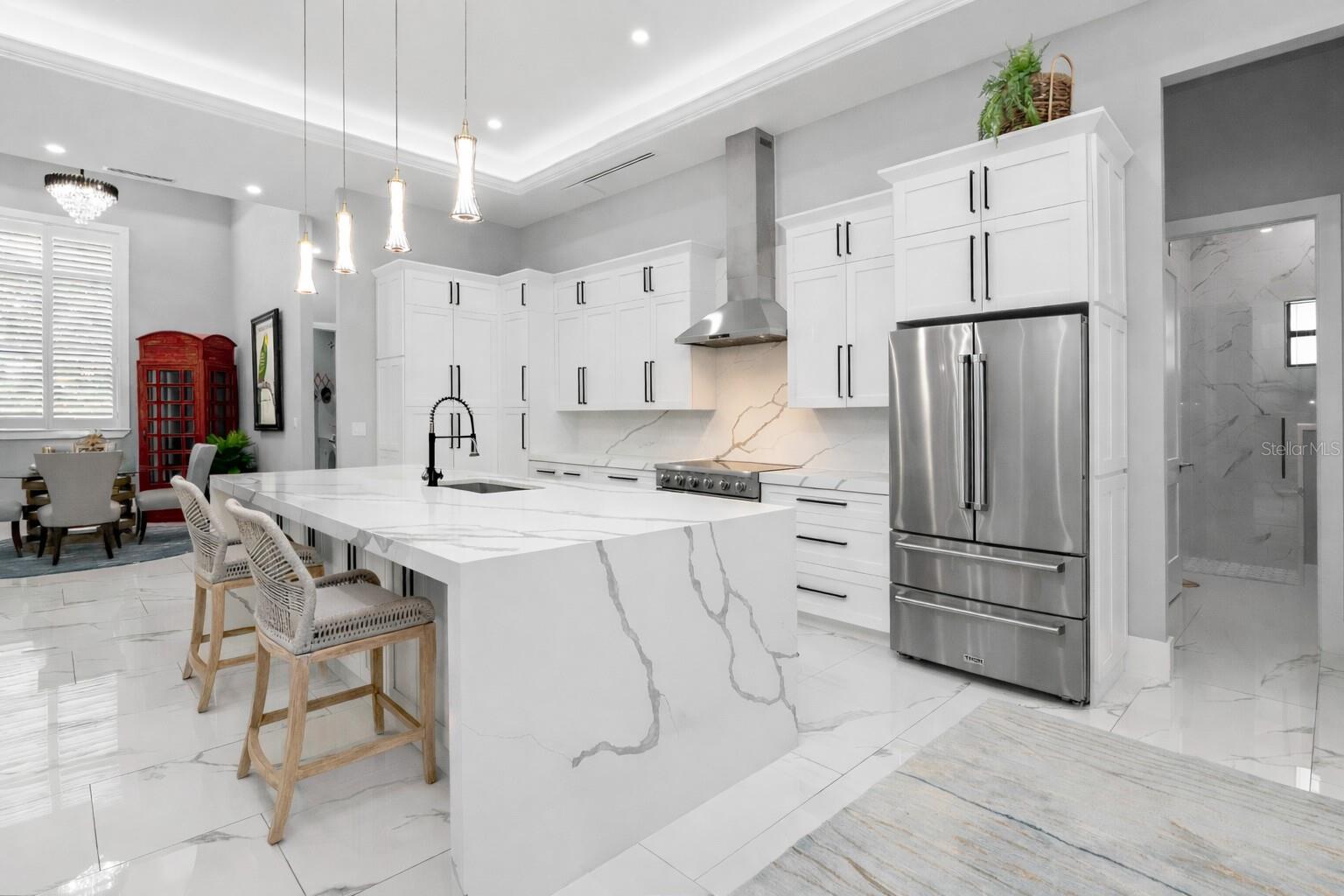 Set on 2.27 acres of 100% uplands in Golden Gate Estates, this custom-built estate home offers a rare combination of privacy, infrastructure, and flexibility with no HOA restrictions and fully usable land. Designed for buyers who value space, craftsmanship, and functionality, this property delivers what most new builds cannot: land, permits, and freedom already in place. The single-story concrete block residence features 4 bedrooms plus a den and 5 bathrooms, including a private guest suite ideal for multi-generational living. An open-concept, split-bedroom layout is enhanced by 11-foot ceilings, 12-foot tray ceilings, 8-foot interior doors, crown molding, and tile flooring throughout, creating a clean, modern flow with timeless finishes. At the heart of the home, the chef’s kitchen showcases 3-inch quartz countertops, a dramatic waterfall island, full quartz backsplash, solid wood soft-close cabinetry with dovetail construction, and a premium Thor stainless steel appliance package. The primary suite offers a spa-like retreat with a freestanding soaking tub, oversized walk-in shower, Calacatta quartz finishes, and dual vanities. Outdoor living is equally impressive, featuring an oversized screened lanai with tongue-and-groove ceilings, a fully equipped outdoor kitchen, a half bath, and 60+ exterior LED soffit lights that highlight the home at night. The resort-style pool is finished with a travertine deck and surrounded by professionally landscaped grounds, creating a private, peaceful setting ideal for entertaining or everyday enjoyment. A true standout feature is the detached 40’ x 62’ air-conditioned concrete block garage, complete with two 12’ x 14’ hurricane-rated doors and an attached covered RV/boat parking area. This structure is fully permitted and ideal for car collectors, RV owners, workshops, or hobby use, with separate rear driveway access for convenience and privacy. Additional highlights include impact-resistant windows and doors, two Trane A/C systems with UV air purification, whole-house reverse osmosis, tankless water heater, smart home technology with Cat6 wiring, electric gated entry, full perimeter fencing, and horses permitted. There is ample room for future structures such as a guest house or additional workshop, with no special permitting required. Located in a prime Golden Gate Estates setting, this property offers the space and freedom buyers seek, without the delays, uncertainty, or rising costs of building new. A rare opportunity to own a fully realized estate where land, luxury, and functionality come together.