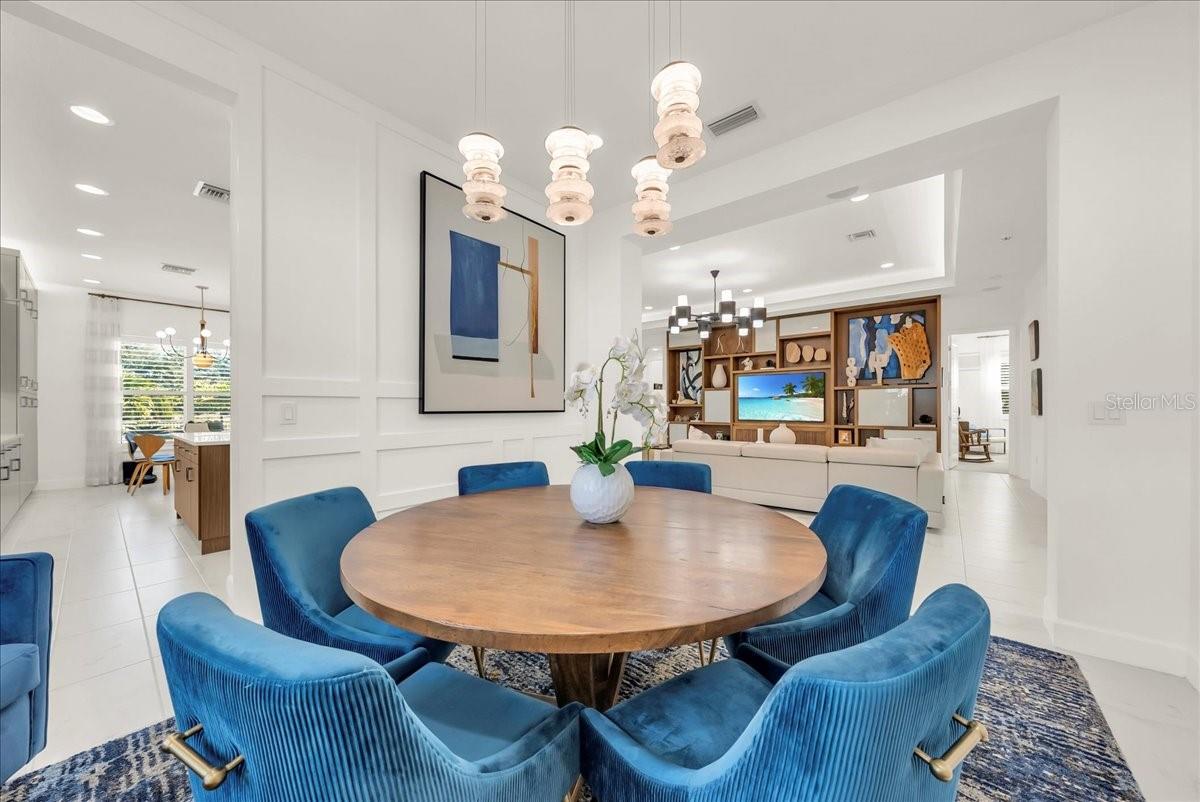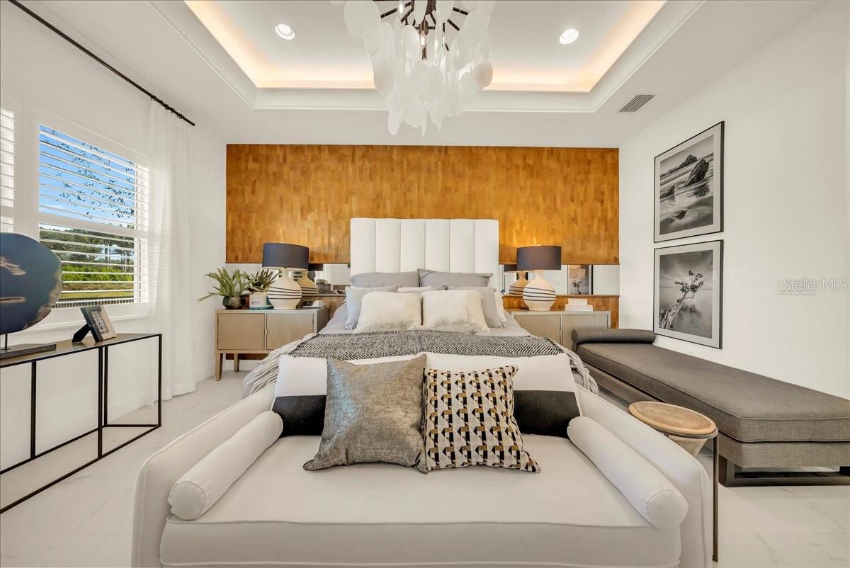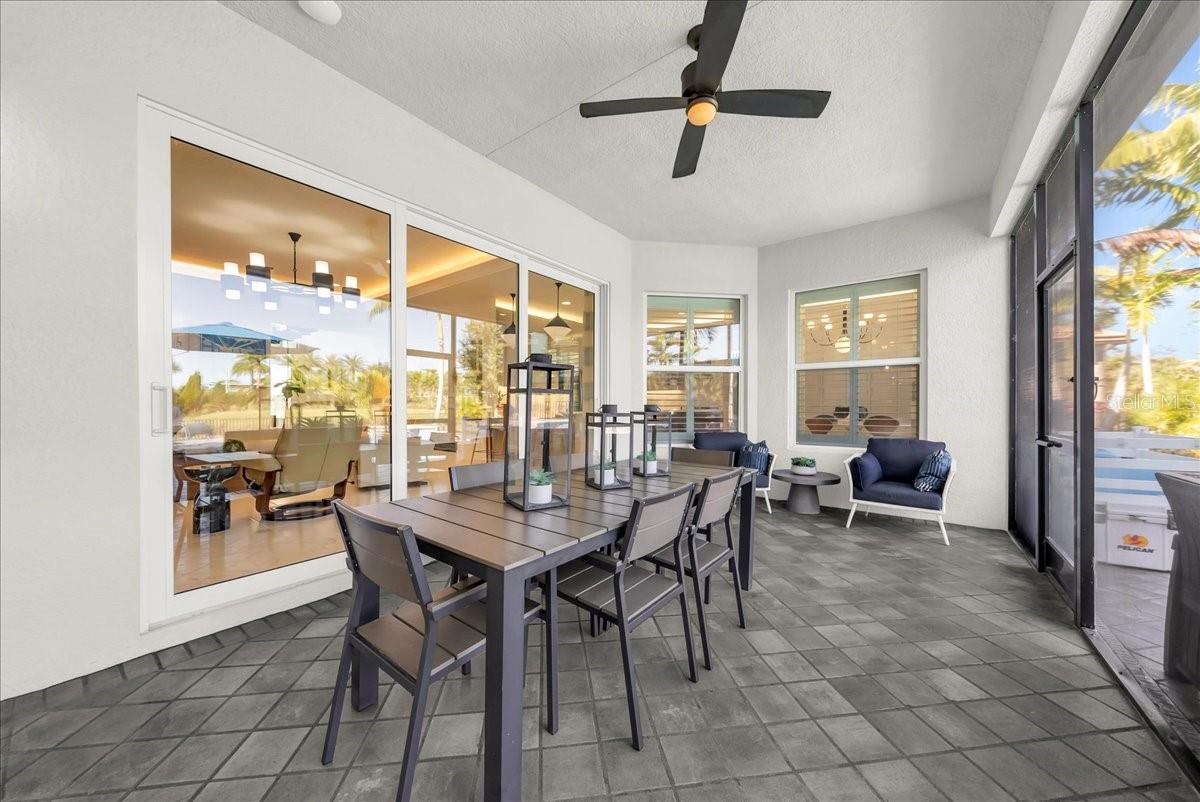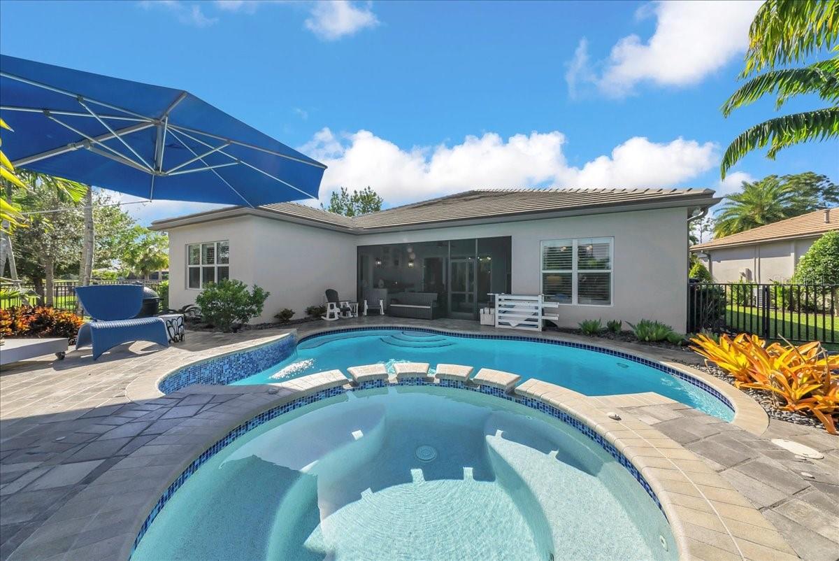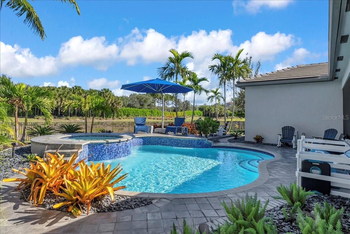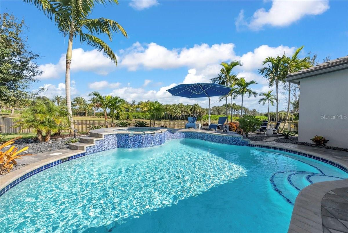 Welcome to refined resort-style living in this stunning showcase residence, offering a 3-bedroom en-suite split floor plan, a powder room and dedicated office/den/study. Perfectly positioned at the end of a quiet cul-de-sac on a private lot, this exceptional home is located within the highly sought-after Valencia Trails community. Thoughtfully designed and richly appointed with high-end designer upgrades, custom built-ins, and exquisite finishes, this residence delivers effortless elegance and comfort throughout. The open-concept design is enhanced by tray ceilings with curved crown molding, custom lighting, plantation shutters, curated wallpaper, and striking architectural details that elevate every space. The gourmet kitchen features custom upgraded cabinetry and designer lighting, seamlessly flowing into the living and dining areas—ideal for entertaining. A custom wainscoted dining room, built-in living room cabinetry, and a beautifully appointed office with custom cabinetry add both sophistication and function. The primary suite is a true retreat, highlighted by tray ceilings, custom wall detailing, upgraded lighting, and a private lanai door leading to the outdoor oasis. All bathrooms are finished with upgraded lighting and elegant, refined details. Step outside to your private, fenced backyard, featuring a custom two-tier pool and spa, screened lanai, outdoor kitchen, sealed pavers, and lush professional landscaping—perfect for year-round relaxation or entertaining. Enjoy peace of mind with a whole-house and pool generator, along with whole-home surround sound, including the outdoor lanai and pool area. The garage is a standout feature, offering climate control, custom flooring, wall systems, shelving, enhanced lighting, a refrigerator, and built-in entertainment capabilities—ideal for hobbies, storage, or showcasing the perfect Naples sports car. Located in Valencia Trails, a premier 55+ amenity-rich community, residents enjoy a luxury clubhouse, resort-style pool, on-site restaurant, pickleball, tennis, bocce ball, walking trails, and a dog park—all just minutes from Naples’ world-class dining, shopping, and beaches. This is a rare opportunity to own a meticulously upgraded, move-in-ready luxury residence in one of Naples’ most desirable communities.