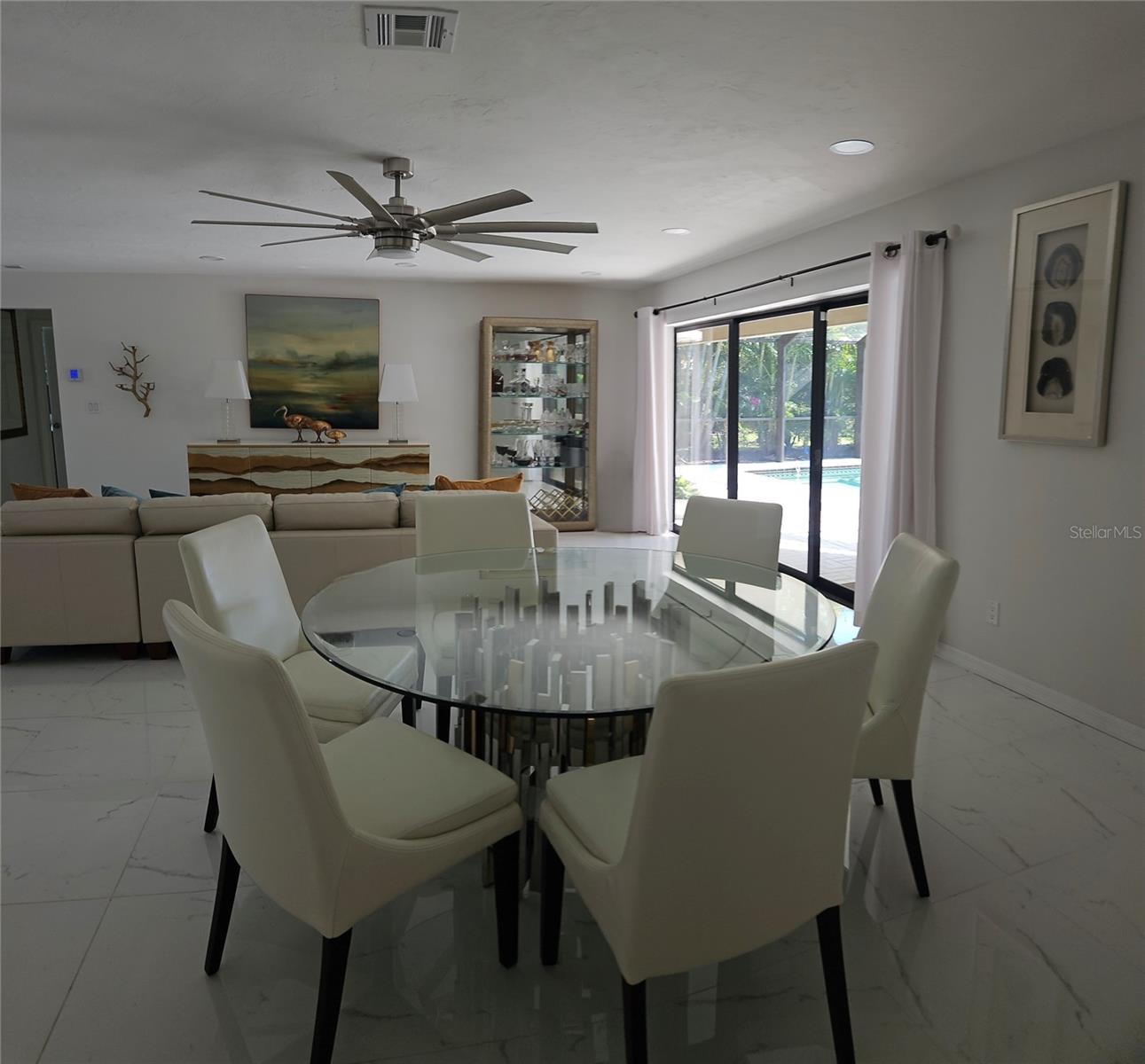 Nestled at the end of a quiet cul-de-sac, this extensively renovated 3 bedroom, 3 bath residence offers refined Florida living with serene golf course views and exceptional privacy. Backing on to the 9th fairway of the former Hibiscus public golf course, now planned to be transformed into the exclusive Lantern Club, a private, invitation-only golf club, this home presents a rare opportunity to secure a front row seat to one of the area’s most exciting lifestyle upgrades. Designed for both elegant entertaining and everyday comfort, the home features two expansive living areas, each opening to the lanai through 12 ft wide doors, creating a seamless indoor/outdoor experience. Large format porcelain tile flooring flows throughout the home. A striking Italian porcelain tile feature wall anchors the main living space,adding architectural drama and warmth. The generously sized kitchen offers abundant storage, and a functional layout ideal for entertaining. Split-bedroom floor plan for privacy. Primary suite with walk-in closet and ensuite bath. 8 ft sliding doors open to the lanai. Two guest bedrooms, each with large closets. All bathrooms fully updated with new tile, fixtures, and finishes. The expansive screened lanai is designed for year-round enjoyment. Whether hosting sunset gatherings or enjoying quiet mornings overlooking the fairway, this outdoor space is truly exceptional. Two central A/C units, new roof (2021), hurricane rated windows and doors (2024), and many other improvements.