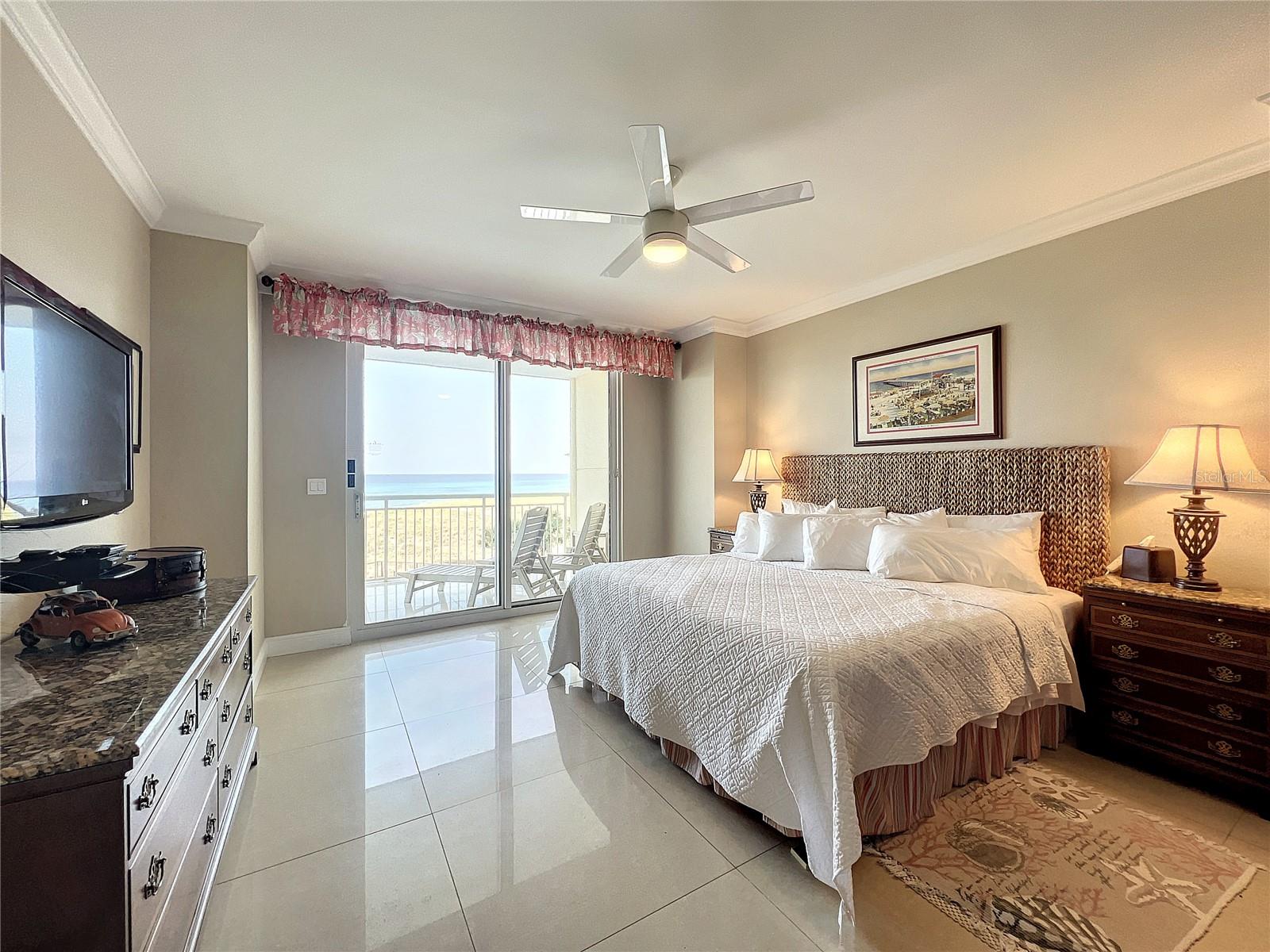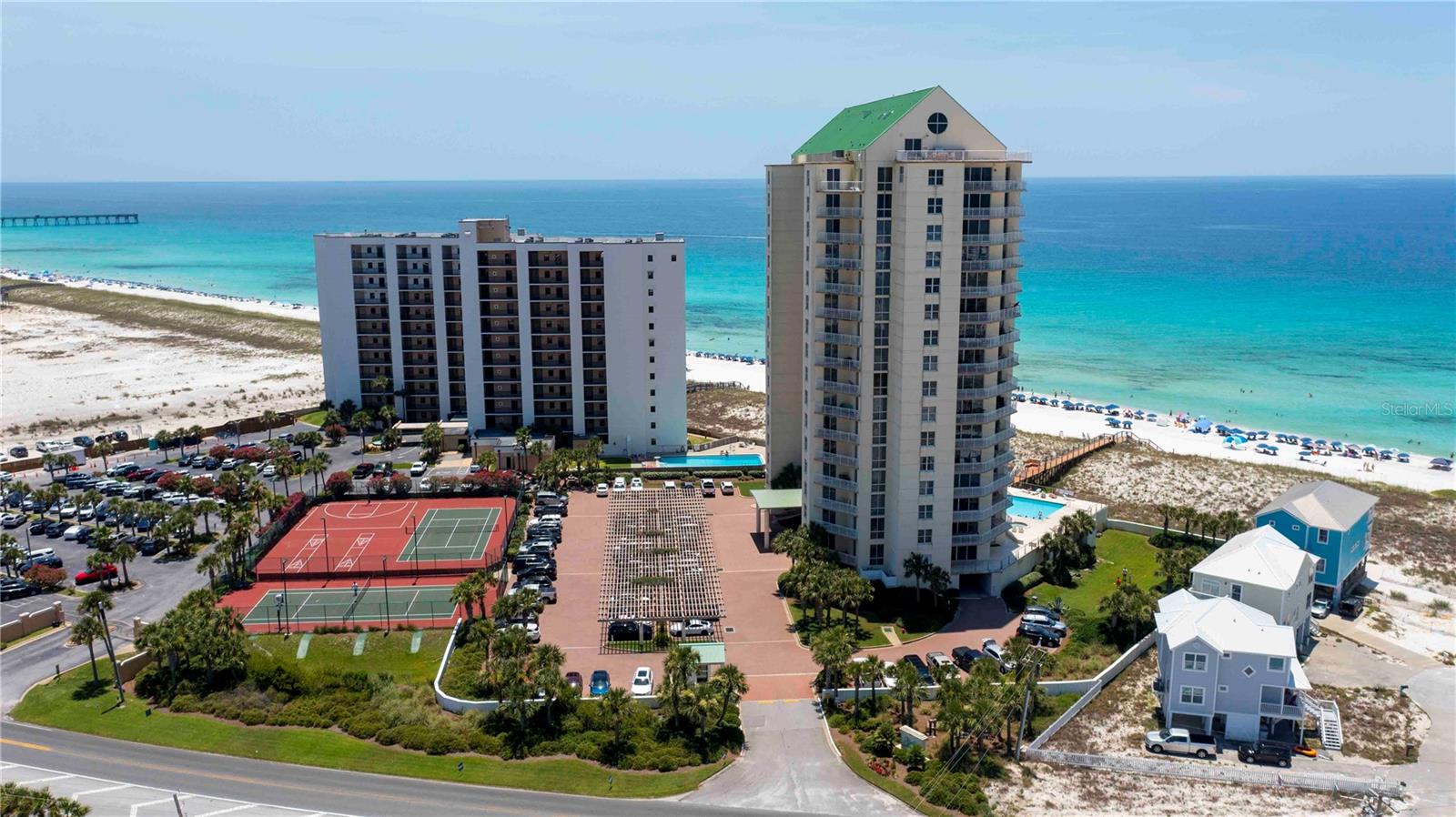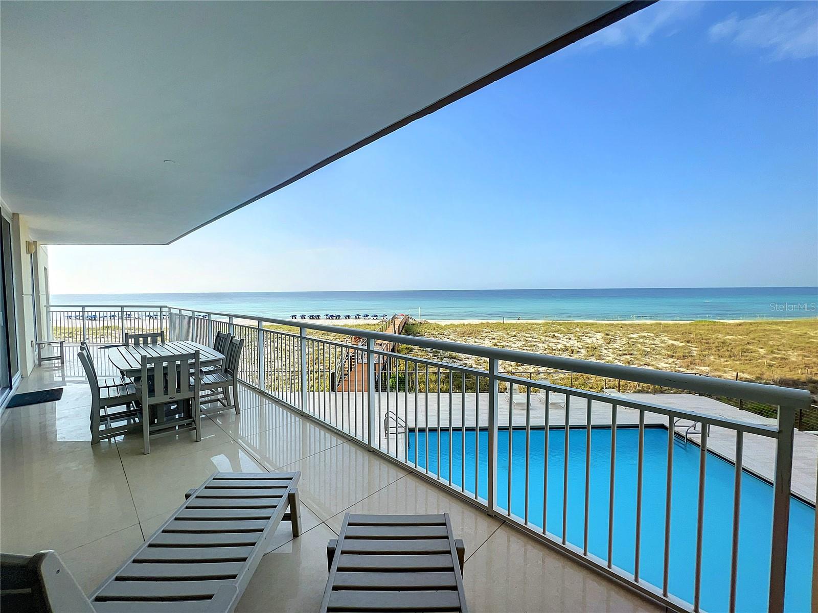 Seller may consider buyer concessions if made in an offer. Welcome to your beachfront paradise! This exquisite 3rd-floor condo boasts direct oceanfront views, showcasing pristine sandy shores, emerald green waters, and a stunning Gulf-side pool. The open floor plan features floor-to-ceiling sliders that frame breathtaking Gulf views from every corner, offering an experience that's even more intimate and impressive than high-rise living. Recently professionally decorated, fully furnished and is ready for you to move in or rent out on a weekly basis, fully furnished. Its spacious, house-like layout provides ample room to relax and entertain, including a beautiful chef's kitchen with granite countertops, Jenn-Air stainless steel appliances, induction cooktop, and oven hood. Adjacent to the kitchen, you'll find a generous laundry room for extra storage and a wet bar with a bar fridge, perfect for hosting guests or unwinding after a day at the beach. The wet bar area also features a small TV or computer monitor for added convenience. The luxurious primary master bedroom includes a king bed, a fold-out sleeper sofa, and a chaise lounger, all set before a flat-screen TV and ocean views. The en-suite spa bath is a retreat of its own, featuring a steam shower, a Jacuzzi tub, granite countertops, and elegant oil-rubbed bronze fixtures. The second master bedroom offers a king-size bed and direct access to the deck with captivating ocean views. Its en-suite bath includes a walk-in shower, separate toilet area, and a double sink vanity with overhead lighting. The third bedroom is adorned with charming nautical décor and features two twin beds, a full en-suite bathroom with a large soaking tub and shower, and wood floors and blinds that add warmth to the space. This well-maintained building is renowned for its top-notch amenities, including tennis courts, a basketball court, a grill, a hot tub spa, a pool, outdoor showers, and ample parking. With professional management, on-site architect, and accountant, you can trust in the quality and financial stability of the property. This condo offers a blend of beauty, elegance, and functionality, making it the perfect home away from home that you'll want to return to time and again.