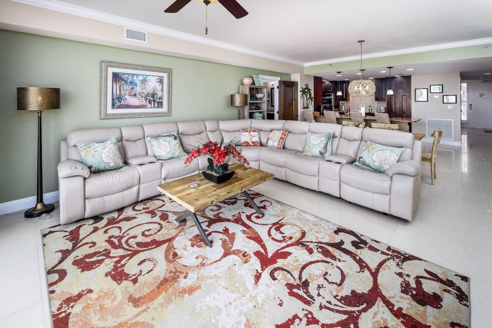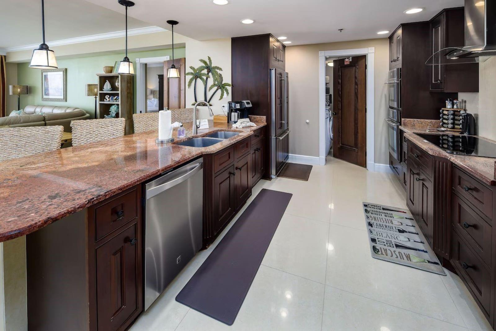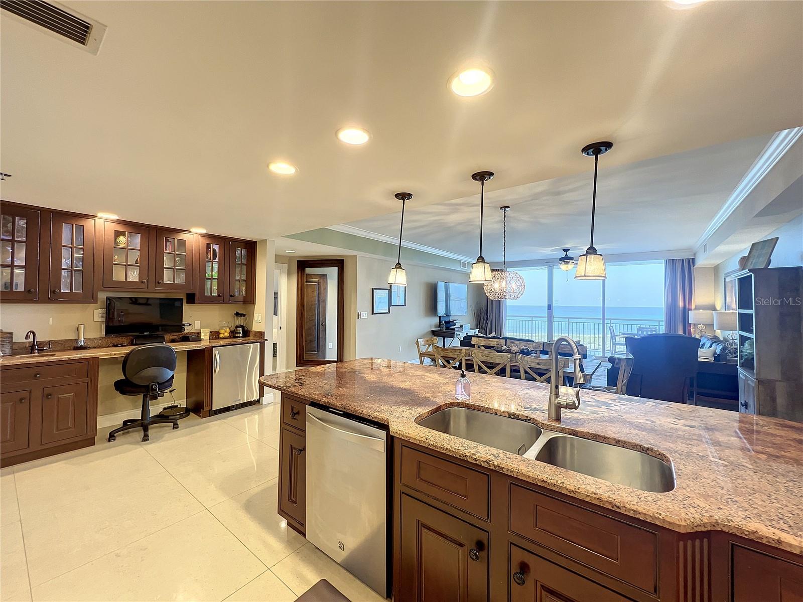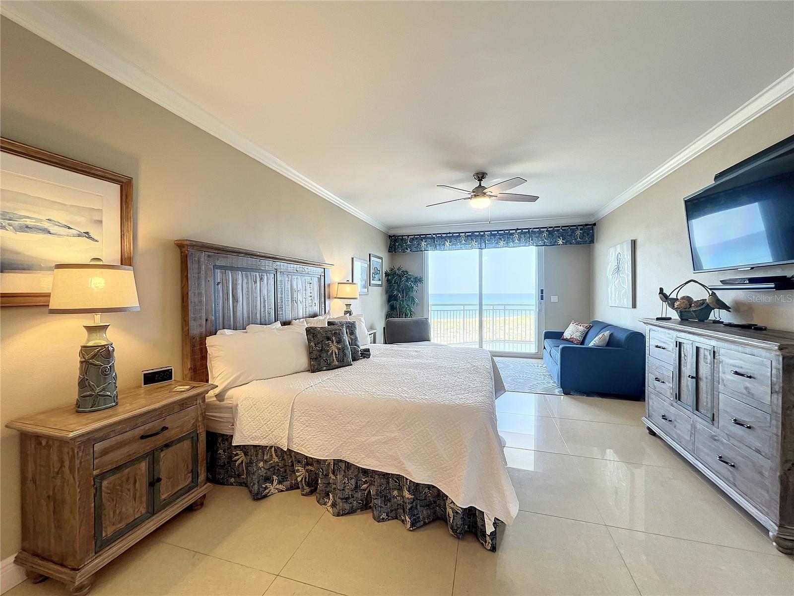 Seller may consider buyer concessions if made in an offer. Welcome to your beachfront paradise! This exquisite 3rd-floor condo boasts direct oceanfront views, showcasing pristine sandy shores, emerald green waters, and a stunning Gulf-side pool. The open floor plan features floor-to-ceiling sliders that frame breathtaking Gulf views from every corner, offering an experience that's even more intimate and impressive than high-rise living. Recently professionally decorated, fully furnished and is ready for you to move in or rent out on a weekly basis, fully furnished. Its spacious, house-like layout provides ample room to relax and entertain, including a beautiful chef's kitchen with granite countertops, Jenn-Air stainless steel appliances, induction cooktop, and oven hood. Adjacent to the kitchen, you'll find a generous laundry room for extra storage and a wet bar with a bar fridge, perfect for hosting guests or unwinding after a day at the beach. The wet bar area also features a small TV or computer monitor for added convenience. The luxurious primary master bedroom includes a king bed, a fold-out sleeper sofa, and a chaise lounger, all set before a flat-screen TV and ocean views. The en-suite spa bath is a retreat of its own, featuring a steam shower, a Jacuzzi tub, granite countertops, and elegant oil-rubbed bronze fixtures. The second master bedroom offers a king-size bed and direct access to the deck with captivating ocean views. Its en-suite bath includes a walk-in shower, separate toilet area, and a double sink vanity with overhead lighting. The third bedroom is adorned with charming nautical décor and features two twin beds, a full en-suite bathroom with a large soaking tub and shower, and wood floors and blinds that add warmth to the space. This well-maintained building is renowned for its top-notch amenities, including tennis courts, a basketball court, a grill, a hot tub spa, a pool, outdoor showers, and ample parking. With professional management, on-site architect, and accountant, you can trust in the quality and financial stability of the property. This condo offers a blend of beauty, elegance, and functionality, making it the perfect home away from home that you'll want to return to time and again.
