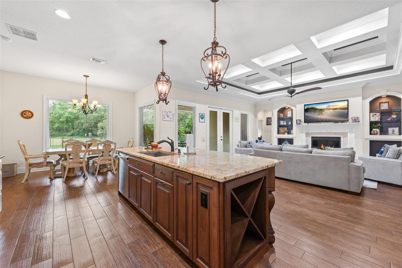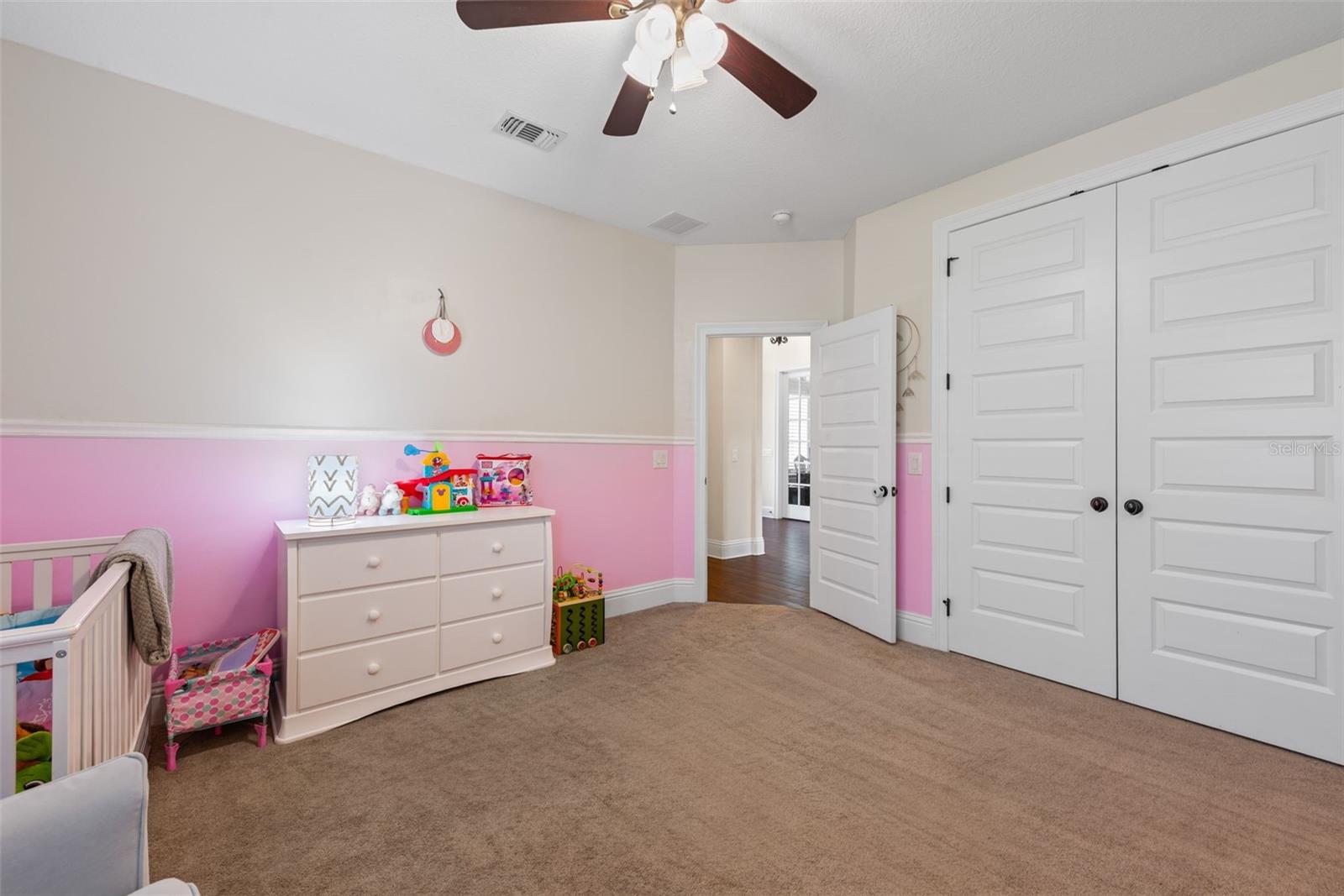 One or more photo(s) has been virtually staged. Luxury Golf Course Living on the 16th Hole Welcome to 2127 Pebble Beach Drive, an exceptional 5-bedroom, 4-bath, 3,500 sq ft residence perfectly positioned on the 16th hole of a professional golf course. This thoughtfully designed home combines upscale finishes, generous space, and seamless indoor-outdoor living on a beautifully landscaped .29-acre lot with over 30 feet of separation between neighboring homes—a rare find. From the moment you arrive, the paver driveway and three-car attached garage—complete with a convenient exterior man-door entry—set the tone for both elegance and functionality. Covered porches at both the front and rear of the home invite relaxation and entertaining year-round. Inside, you’ll find high ceilings throughout, accented by refined crown molding, creating a light, open, and elevated atmosphere. The main living areas feature tile flooring, while the bedrooms offer plush carpeting for comfort. The chef’s kitchen is a standout, showcasing stone countertops, premium cabinetry, and a pasta-filler faucet over the stove—a detail appreciated by serious cooks and entertainers alike. This home offers two primary suites, each with a private en-suite bath and spacious walk-in closet, providing flexibility for multi-generational living, guests, or a private home office retreat. French doors open to the expansive covered back patio, where golf course views take center stage. The outdoor space is already equipped with an outdoor sink and grill hookup, making it ideal for entertaining while overlooking manicured fairways. With its golf course frontage, upscale finishes, generous layout, and premium lot, this home delivers luxury, privacy, and lifestyle—without compromise.