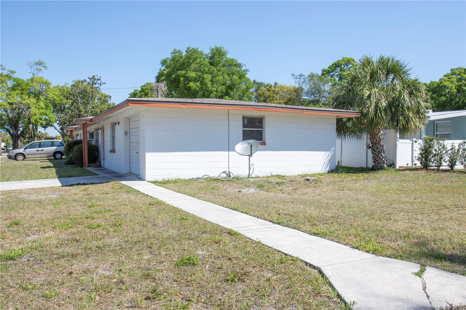 DUPLEX – Prime Location Near Downtown New Port Richey! This charming 4-bedroom, 2-bathroom duplex with a garage is just a short walk from the highly desirable Downtown New Port Richey. Whether you're looking for an investment property or a place to call home while earning rental income, this is a fantastic opportunity. The property features a brand-new roof installed in May 2024 and updated wall units within the last two years. It has never experienced flooding or storm damage, providing peace of mind for homeowners and investors alike. Both units have identical side-by-side layouts and separate electric meters, ensuring convenience for tenants. The home sits on a spacious corner lot with private driveways for each unit, offering added privacy and accessibility. A garage with newer doors provides extra storage space. One unit has been updated with newer appliances, while the other is currently occupied by a long-term tenant whose lease is up for renewal in August. With its prime location and strong rental potential, this income-generating property won’t last long.