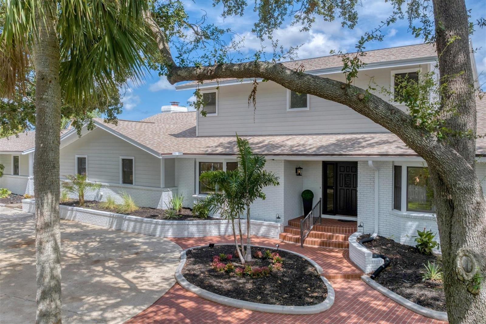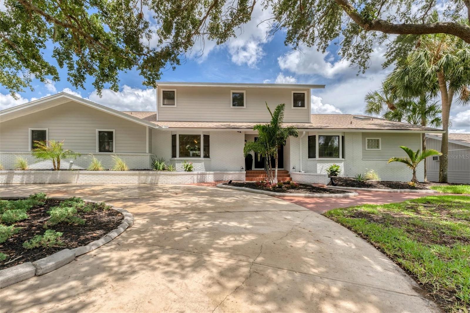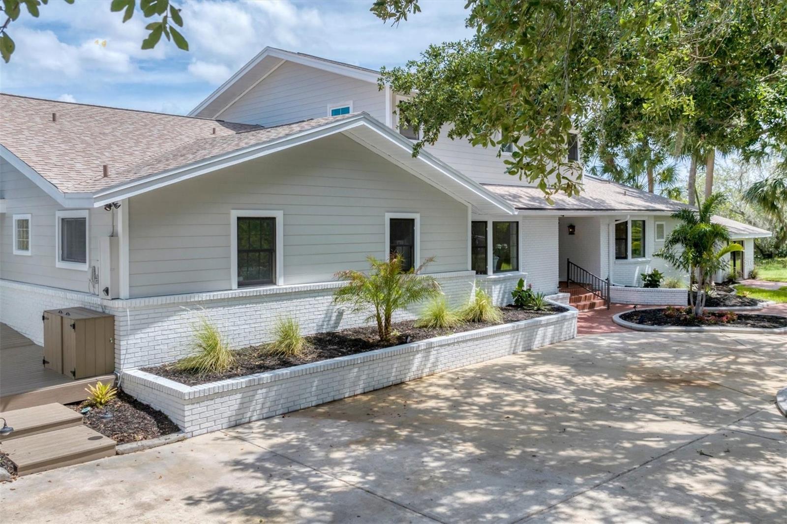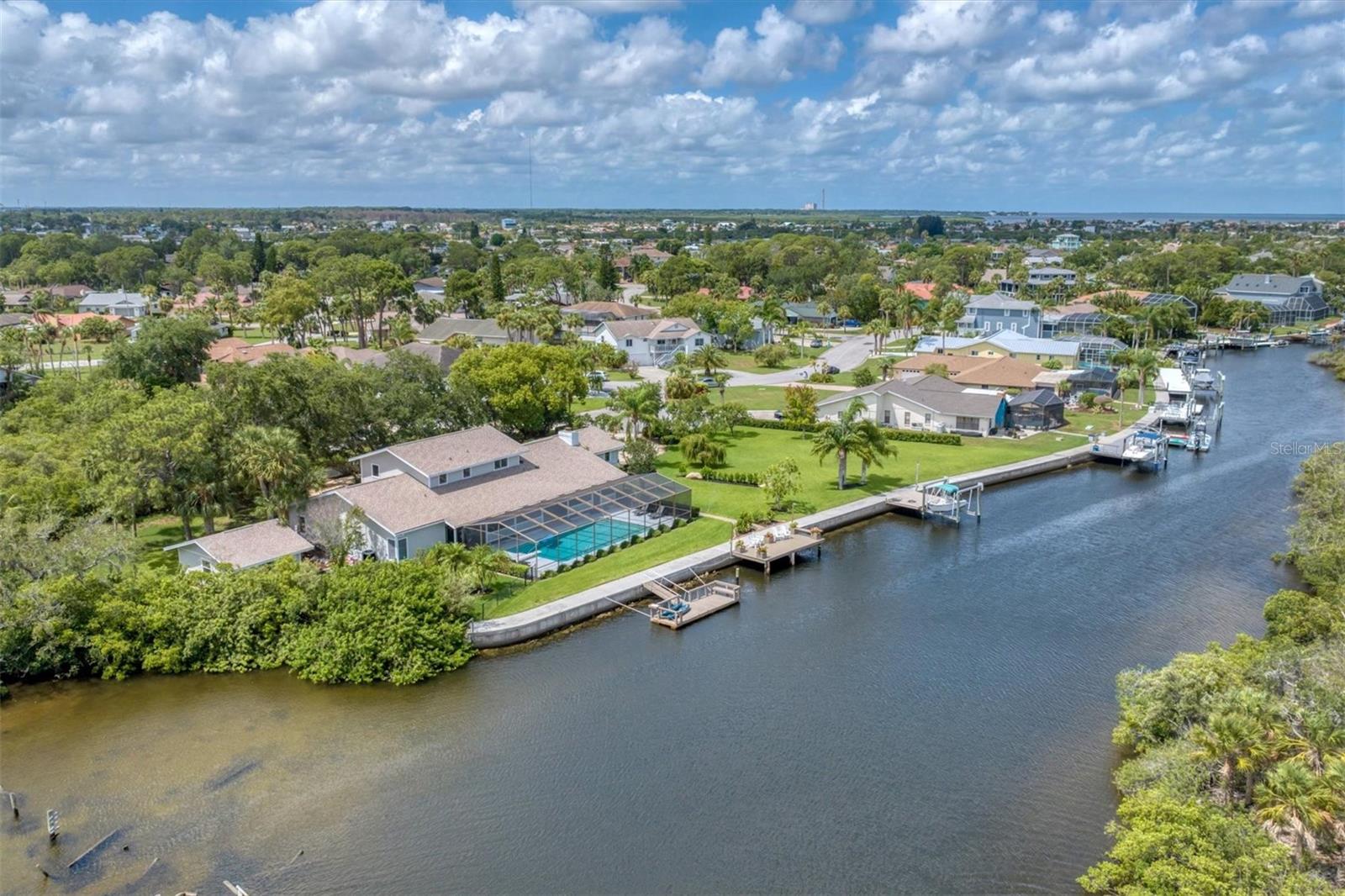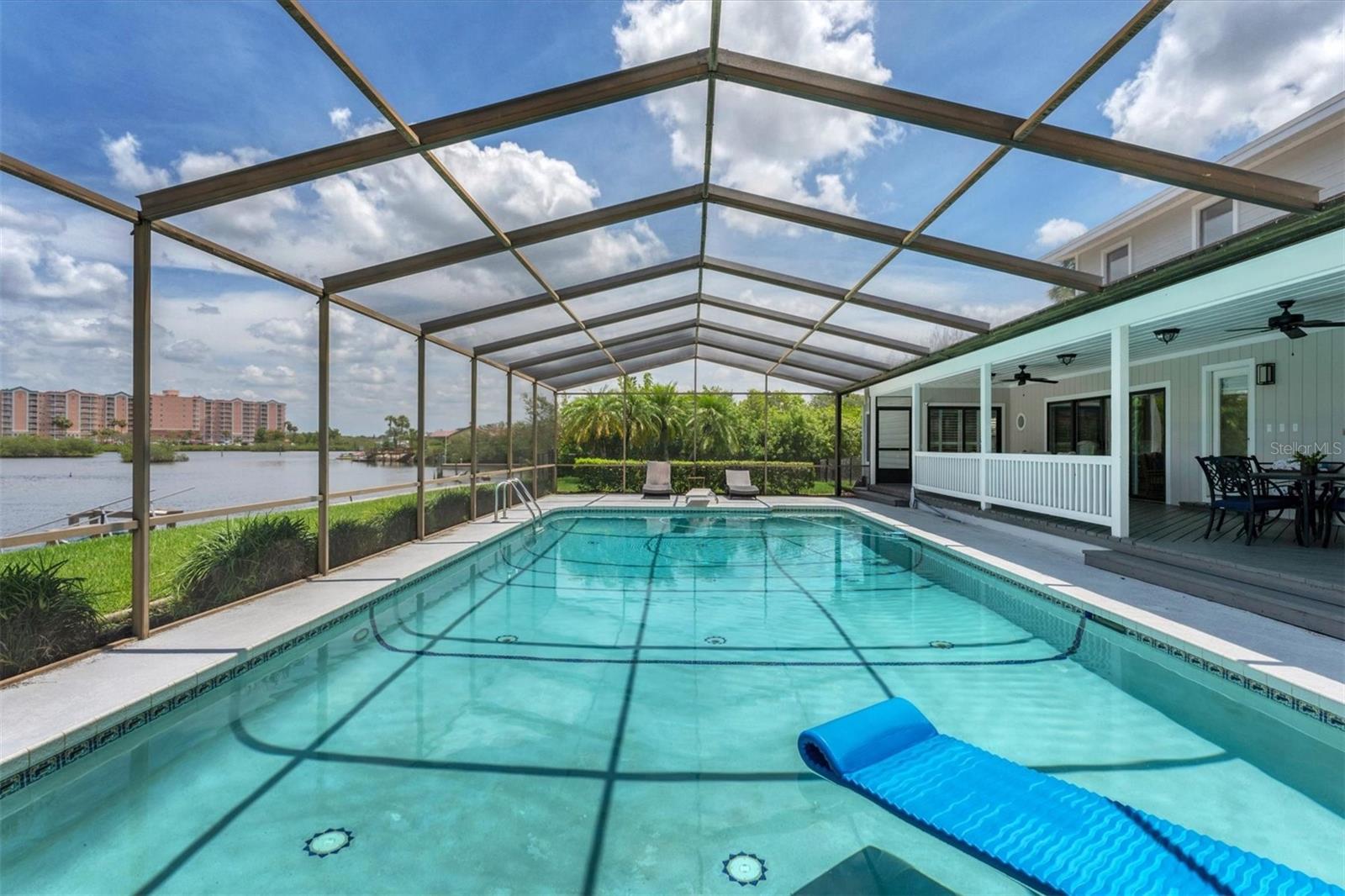 Welcome to this rare gem on an exceptionally private oversized .68-acre lot at the end of a cul-de-sac with 130-foot waterfront seawall on a deep-water canal with direct access to the Gulf of Mexico. The property is surrounded by a natural preserve with views of a state protected wildlife sanctuary home to Florida’s magnificent birds, wildlife and abundant marine life, making this one of the most private, peaceful and serene settings on the west coast. This 5-bedroom plus office, 4-bath home has undergone a half million-dollar renovation incorporating coastal sophistication and charm. Most of living space is on the first floor with light oak porcelain plank tile running seamlessly throughout and cloud white walls create an elegant and peaceful beach atmosphere. The spectacular family room has white wood-planked high vaulted ceilings, large gas burning fireplace, expansive 12-foot sliding glass doors that fill the space with abundant tranquil light leading to a covered and screened deck that extends the full length of the home and massive 30K gallon 9’ deep heated pool with diving board, all overlooking the magnificent water vistas beyond. The newly renovated cook’s kitchen has elegant white quartz countertops throughout, a built-in Bosch double oven/microwave, Thermador 36” gas range/oven with convection and internal thermometer, stainless-steel hood, Samsung refrigerator/freezer and oversized deep stainless-steel sink situated at a large window overlooking the amazing waterscape. Lots of beautiful white shaker-style cabinets with pull-out drawers including floor to ceiling pantry cabinets with an oversized center island designed for prep and seating sure to be a gathering center of the home. The picturesque vistas extend to the welcoming entertainment/wet bar area with its wide sliding glass doors that open to the deck and water beyond. There is a wine cooler, mini refrigerator, continuous ice maker and a beautiful quartz countertop bar with ample seating around. Double french doors open to an elegant private office with floor to ceiling built-in cabinets and a large classic bay window for natural light. The master bedroom has a gorgeous new spa-like ensuite bathroom with dual vanities, his & her walk-in closets, water closet, frameless glass shower and sumptuous free-standing soaking tub. Second level has 3 beds/2 bath, one has an ensuite bathroom. This property includes an amazing detached 24’ x 18’ “casita” currently designed in a light and airy coastal vibe to house extended guests with a portable sink, mini refrigerator and coffee maker easily converted to a game room, gym or artist’s enclave. There is also a large detached 2 car garage. The expansive seawall welcomes maritime enthusiasts with a stationary and floating dock for ease loading kayaks for an aquatic adventure. At days end, retreat to the large dockside deck to take in a captivating Gulf Coast sunset while watching dolphins frolic about. Gulf Harbors Woodlands Community has access to tennis facilities, pool and boat ramp with options to join the private Gulf Harbors Beach Club for $200/year with its white sandy beach, covered picnic tables and grilling stations, perfect for large gatherings. There’s also an option to join Gulf Harbors Yacht Club where you can meet new friends, partake in social events, and enjoy the best food and drink in the area. The perfect combination of luxurious privacy and a thriving social life. This Oasis is Florida living at its finest!