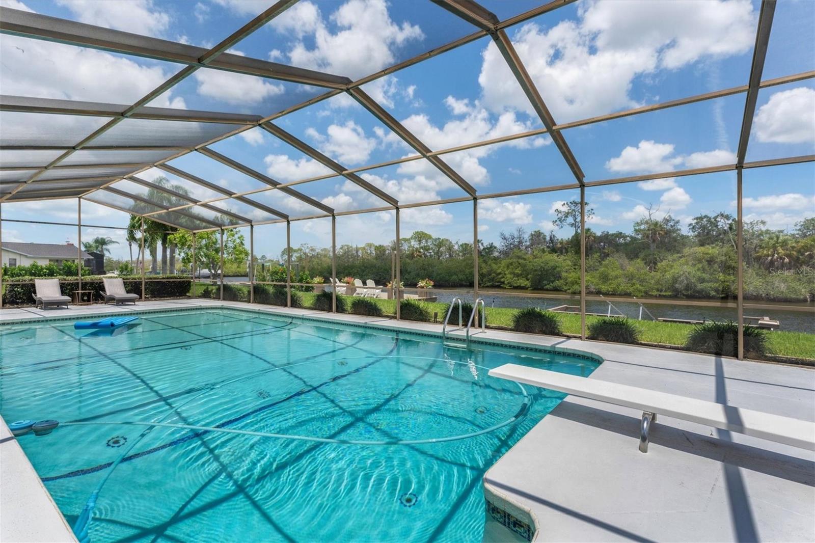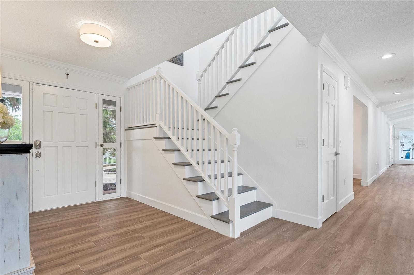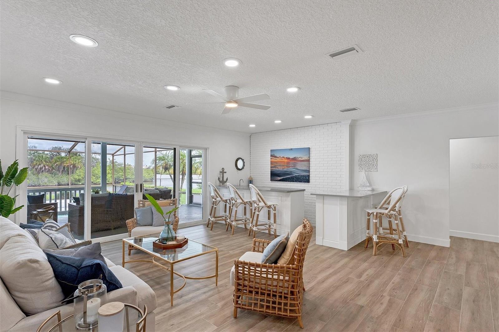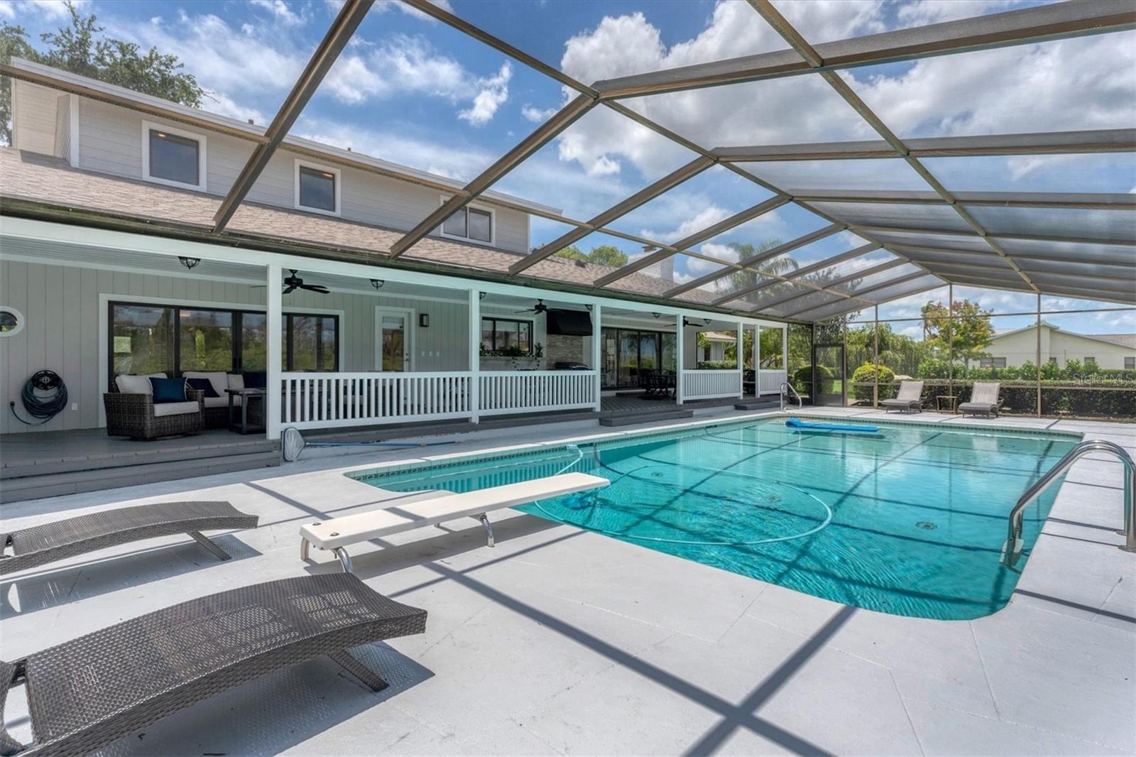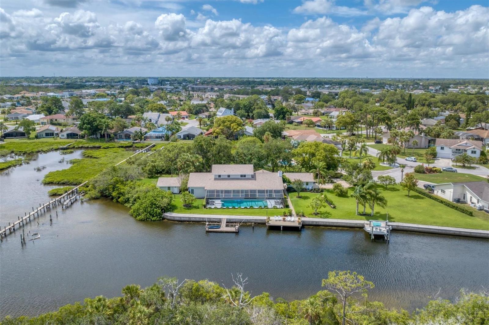 Welcome to this rare gem on an exceptionally private oversized .68-acre lot at the end of a cul-de-sac with 130-foot waterfront seawall on a deep-water canal with direct access to the Gulf of Mexico. The property is surrounded by a natural preserve with views of a state protected wildlife sanctuary home to Florida’s magnificent birds, wildlife and abundant marine life, making this one of the most private, peaceful and serene settings on the west coast. This 5-bedroom plus office, 4-bath home has undergone a half million-dollar renovation incorporating coastal sophistication and charm. Most of living space is on the first floor with light oak porcelain plank tile running seamlessly throughout and cloud white walls create an elegant and peaceful beach atmosphere. The spectacular family room has white wood-planked high vaulted ceilings, large gas burning fireplace, expansive 12-foot sliding glass doors that fill the space with abundant tranquil light leading to a covered and screened deck that extends the full length of the home and massive 30K gallon 9’ deep heated pool with diving board, all overlooking the magnificent water vistas beyond. The newly renovated cook’s kitchen has elegant white quartz countertops throughout, a built-in Bosch double oven/microwave, Thermador 36” gas range/oven with convection and internal thermometer, stainless-steel hood, Samsung refrigerator/freezer and oversized deep stainless-steel sink situated at a large window overlooking the amazing waterscape. Lots of beautiful white shaker-style cabinets with pull-out drawers including floor to ceiling pantry cabinets with an oversized center island designed for prep and seating sure to be a gathering center of the home. The picturesque vistas extend to the welcoming entertainment/wet bar area with its wide sliding glass doors that open to the deck and water beyond. There is a wine cooler, mini refrigerator, continuous ice maker and a beautiful quartz countertop bar with ample seating around. Double french doors open to an elegant private office with floor to ceiling built-in cabinets and a large classic bay window for natural light. The master bedroom has a gorgeous new spa-like ensuite bathroom with dual vanities, his & her walk-in closets, water closet, frameless glass shower and sumptuous free-standing soaking tub. Second level has 3 beds/2 bath, one has an ensuite bathroom. This property includes an amazing detached 24’ x 18’ “casita” currently designed in a light and airy coastal vibe to house extended guests with a portable sink, mini refrigerator and coffee maker easily converted to a game room, gym or artist’s enclave. There is also a large detached 2 car garage. The expansive seawall welcomes maritime enthusiasts with a stationary and floating dock for ease loading kayaks for an aquatic adventure. At days end, retreat to the large dockside deck to take in a captivating Gulf Coast sunset while watching dolphins frolic about. Gulf Harbors Woodlands Community has access to tennis facilities, pool and boat ramp with options to join the private Gulf Harbors Beach Club for $200/year with its white sandy beach, covered picnic tables and grilling stations, perfect for large gatherings. There’s also an option to join Gulf Harbors Yacht Club where you can meet new friends, partake in social events, and enjoy the best food and drink in the area. The perfect combination of luxurious privacy and a thriving social life. This Oasis is Florida living at its finest!