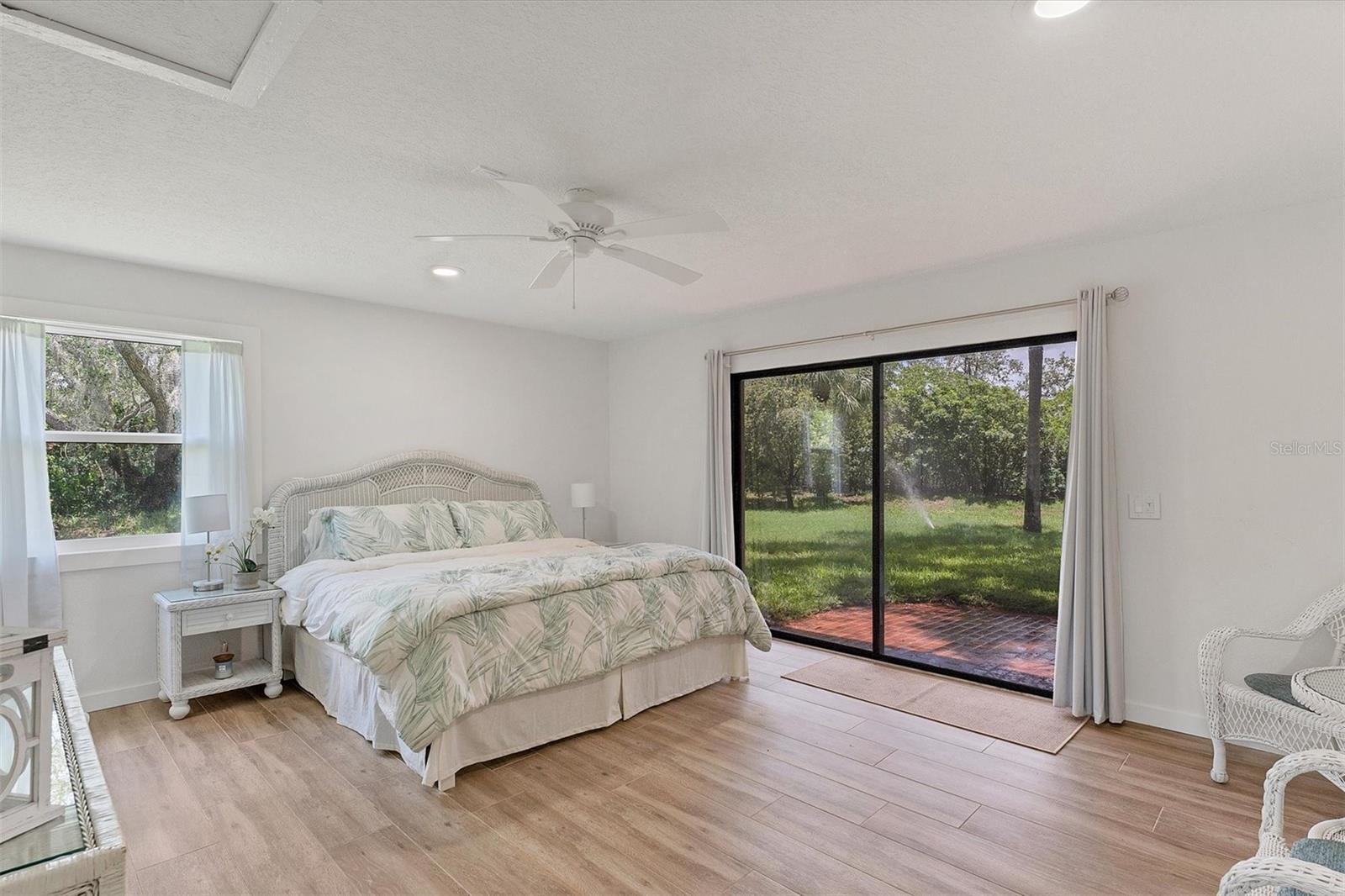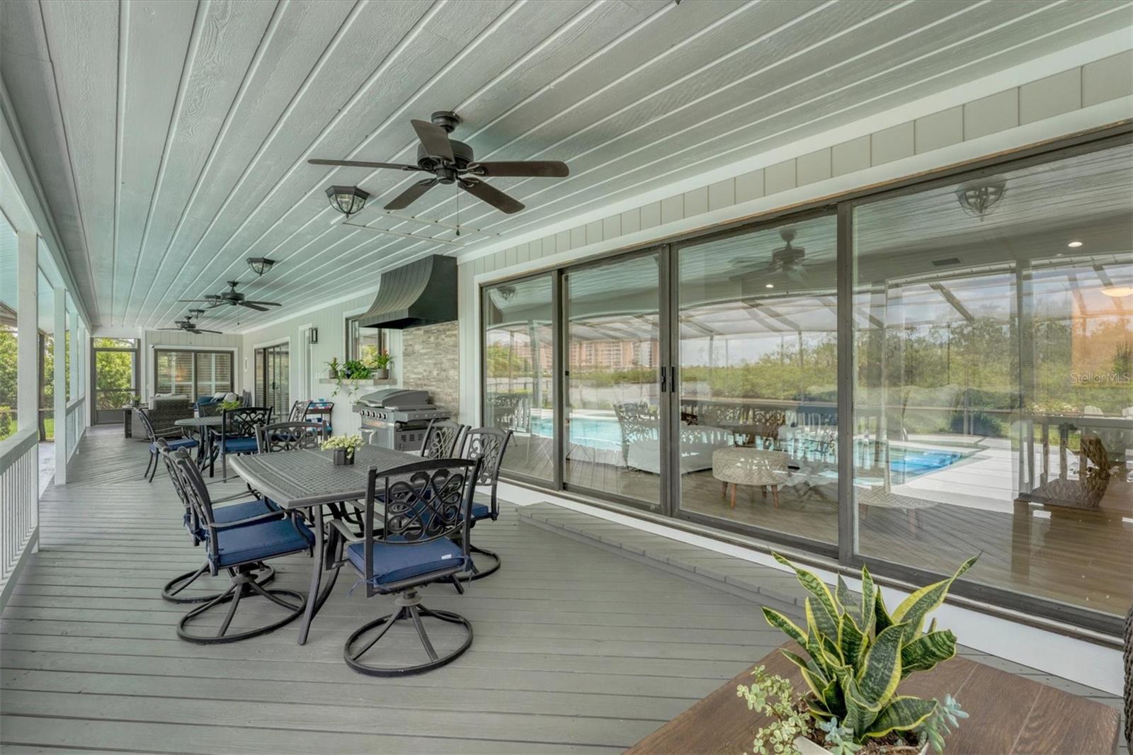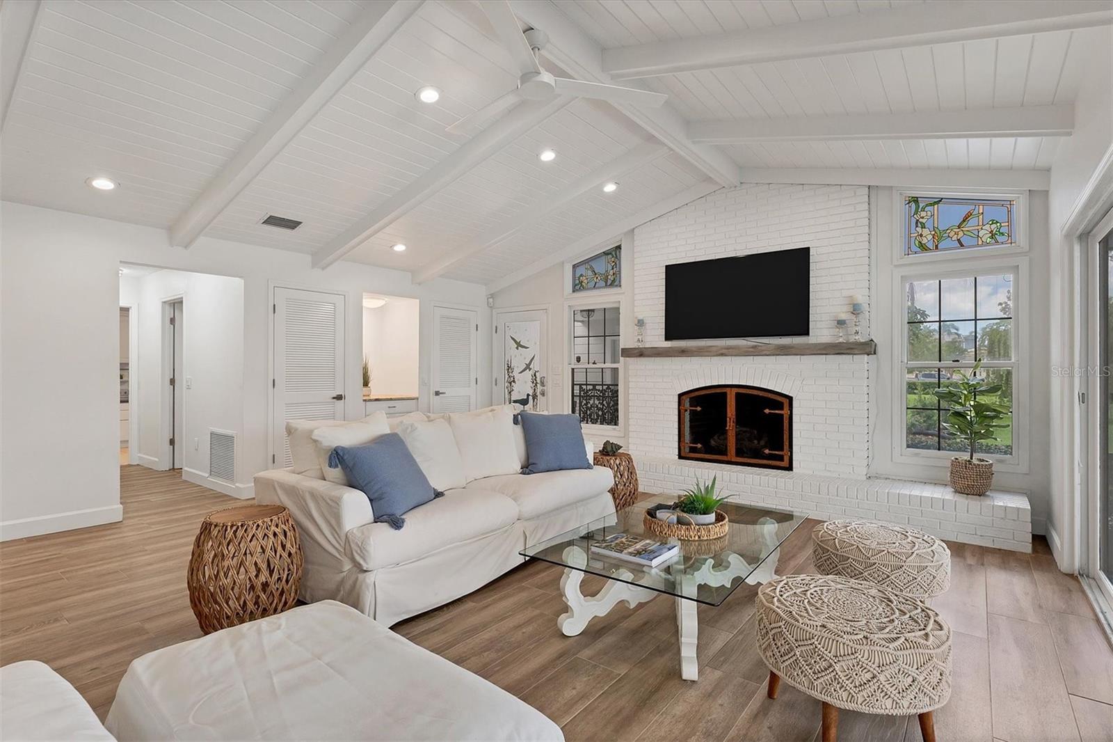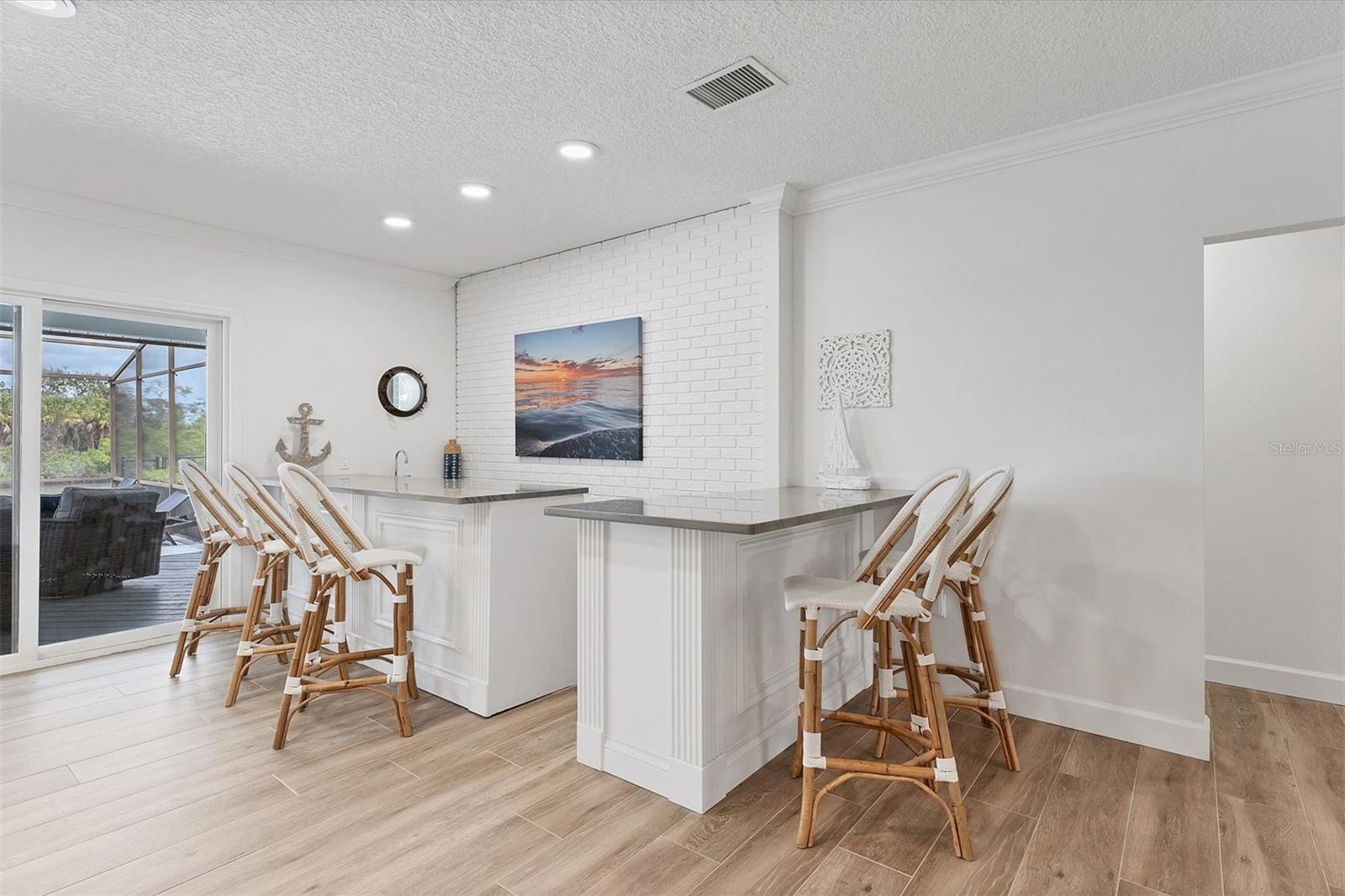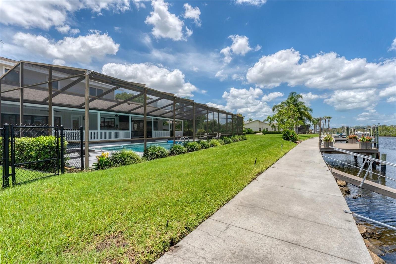 Welcome to this rare gem on an exceptionally private oversized .68-acre lot at the end of a cul-de-sac with 130-foot waterfront seawall on a deep-water canal with direct access to the Gulf of Mexico. The property is surrounded by a natural preserve with views of a state protected wildlife sanctuary home to Florida’s magnificent birds, wildlife and abundant marine life, making this one of the most private, peaceful and serene settings on the west coast. This 5-bedroom plus office, 4-bath home has undergone a half million-dollar renovation incorporating coastal sophistication and charm. Most of living space is on the first floor with light oak porcelain plank tile running seamlessly throughout and cloud white walls create an elegant and peaceful beach atmosphere. The spectacular family room has white wood-planked high vaulted ceilings, large gas burning fireplace, expansive 12-foot sliding glass doors that fill the space with abundant tranquil light leading to a covered and screened deck that extends the full length of the home and massive 30K gallon 9’ deep heated pool with diving board, all overlooking the magnificent water vistas beyond. The newly renovated cook’s kitchen has elegant white quartz countertops throughout, a built-in Bosch double oven/microwave, Thermador 36” gas range/oven with convection and internal thermometer, stainless-steel hood, Samsung refrigerator/freezer and oversized deep stainless-steel sink situated at a large window overlooking the amazing waterscape. Lots of beautiful white shaker-style cabinets with pull-out drawers including floor to ceiling pantry cabinets with an oversized center island designed for prep and seating sure to be a gathering center of the home. The picturesque vistas extend to the welcoming entertainment/wet bar area with its wide sliding glass doors that open to the deck and water beyond. There is a wine cooler, mini refrigerator, continuous ice maker and a beautiful quartz countertop bar with ample seating around. Double french doors open to an elegant private office with floor to ceiling built-in cabinets and a large classic bay window for natural light. The master bedroom has a gorgeous new spa-like ensuite bathroom with dual vanities, his & her walk-in closets, water closet, frameless glass shower and sumptuous free-standing soaking tub. Second level has 3 beds/2 bath, one has an ensuite bathroom. This property includes an amazing detached 24’ x 18’ “casita” currently designed in a light and airy coastal vibe to house extended guests with a portable sink, mini refrigerator and coffee maker easily converted to a game room, gym or artist’s enclave. There is also a large detached 2 car garage. The expansive seawall welcomes maritime enthusiasts with a stationary and floating dock for ease loading kayaks for an aquatic adventure. At days end, retreat to the large dockside deck to take in a captivating Gulf Coast sunset while watching dolphins frolic about. Gulf Harbors Woodlands Community has access to tennis facilities, pool and boat ramp with options to join the private Gulf Harbors Beach Club for $200/year with its white sandy beach, covered picnic tables and grilling stations, perfect for large gatherings. There’s also an option to join Gulf Harbors Yacht Club where you can meet new friends, partake in social events, and enjoy the best food and drink in the area. The perfect combination of luxurious privacy and a thriving social life. This Oasis is Florida living at its finest!