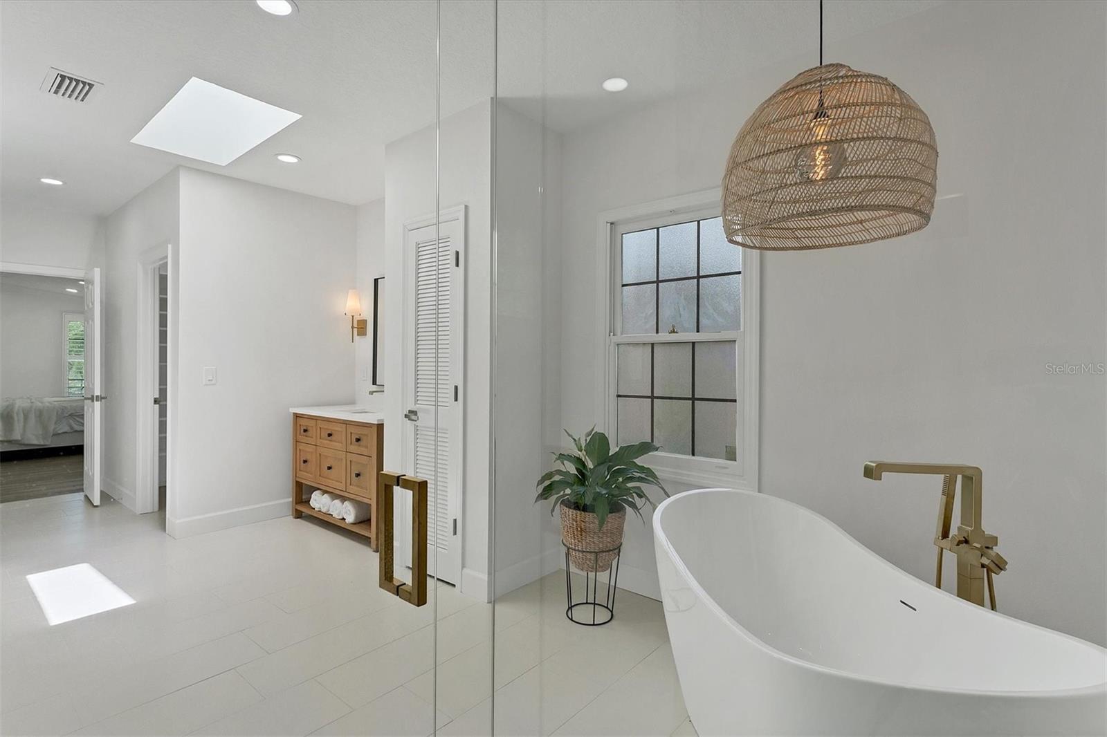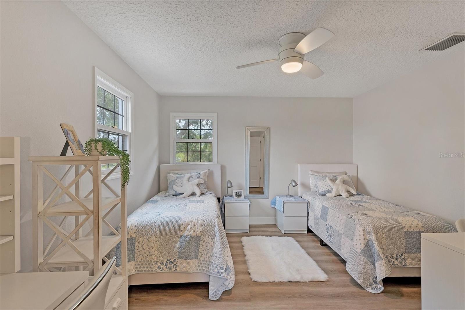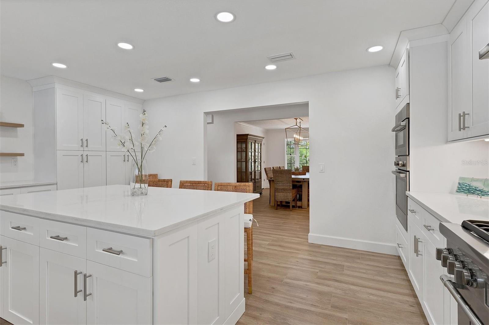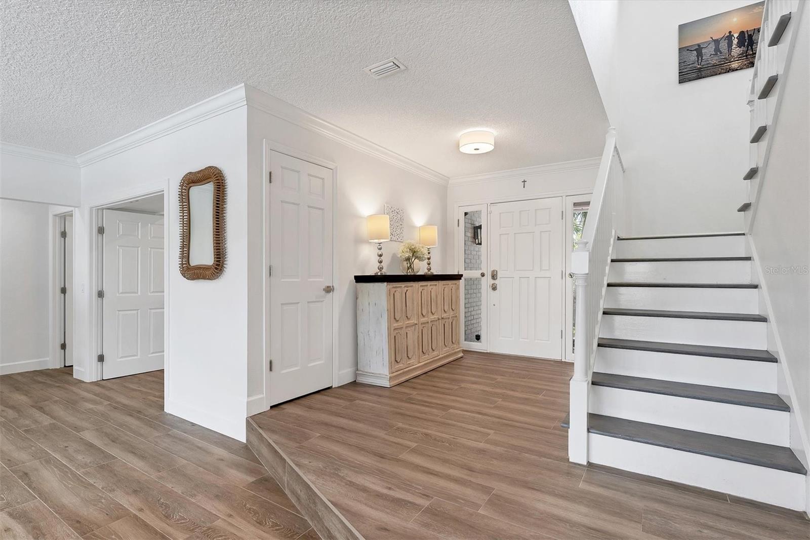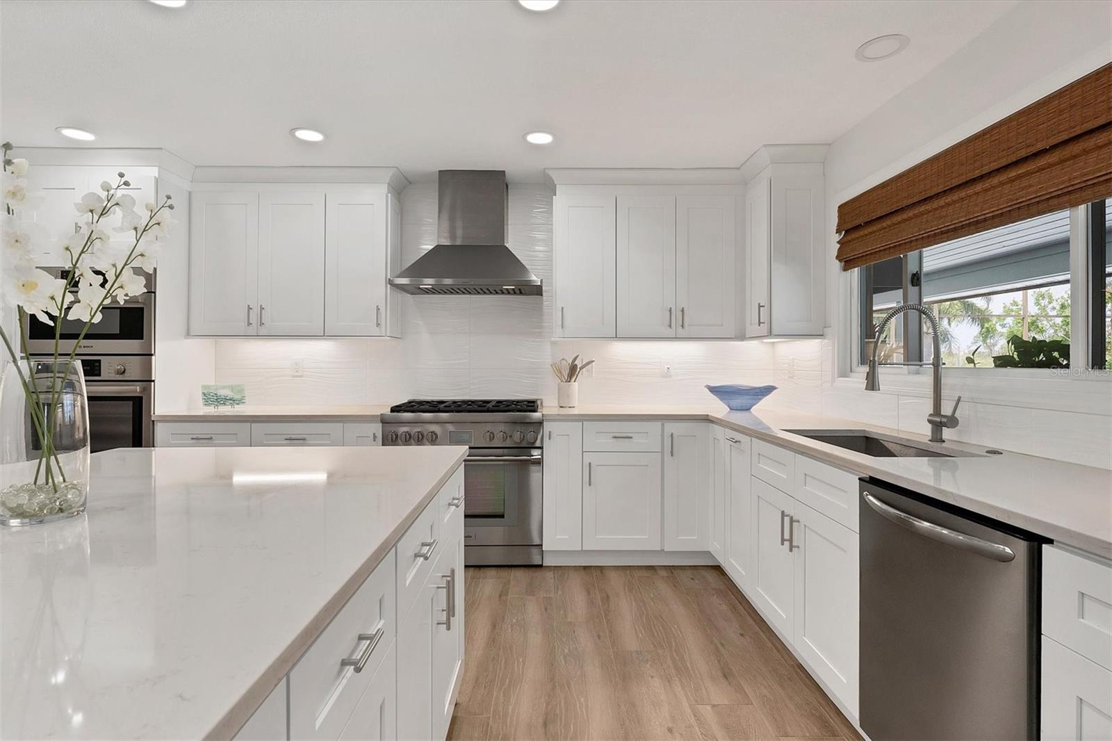 Welcome to this rare gem on an exceptionally private oversized .68-acre lot at the end of a cul-de-sac with 130-foot waterfront seawall on a deep-water canal with direct access to the Gulf of Mexico. The property is surrounded by a natural preserve with views of a state protected wildlife sanctuary home to Florida’s magnificent birds, wildlife and abundant marine life, making this one of the most private, peaceful and serene settings on the west coast. This 5-bedroom plus office, 4-bath home has undergone a half million-dollar renovation incorporating coastal sophistication and charm. Most of living space is on the first floor with light oak porcelain plank tile running seamlessly throughout and cloud white walls create an elegant and peaceful beach atmosphere. The spectacular family room has white wood-planked high vaulted ceilings, large gas burning fireplace, expansive 12-foot sliding glass doors that fill the space with abundant tranquil light leading to a covered and screened deck that extends the full length of the home and massive 30K gallon 9’ deep heated pool with diving board, all overlooking the magnificent water vistas beyond. The newly renovated cook’s kitchen has elegant white quartz countertops throughout, a built-in Bosch double oven/microwave, Thermador 36” gas range/oven with convection and internal thermometer, stainless-steel hood, Samsung refrigerator/freezer and oversized deep stainless-steel sink situated at a large window overlooking the amazing waterscape. Lots of beautiful white shaker-style cabinets with pull-out drawers including floor to ceiling pantry cabinets with an oversized center island designed for prep and seating sure to be a gathering center of the home. The picturesque vistas extend to the welcoming entertainment/wet bar area with its wide sliding glass doors that open to the deck and water beyond. There is a wine cooler, mini refrigerator, continuous ice maker and a beautiful quartz countertop bar with ample seating around. Double french doors open to an elegant private office with floor to ceiling built-in cabinets and a large classic bay window for natural light. The master bedroom has a gorgeous new spa-like ensuite bathroom with dual vanities, his & her walk-in closets, water closet, frameless glass shower and sumptuous free-standing soaking tub. Second level has 3 beds/2 bath, one has an ensuite bathroom. This property includes an amazing detached 24’ x 18’ “casita” currently designed in a light and airy coastal vibe to house extended guests with a portable sink, mini refrigerator and coffee maker easily converted to a game room, gym or artist’s enclave. There is also a large detached 2 car garage. The expansive seawall welcomes maritime enthusiasts with a stationary and floating dock for ease loading kayaks for an aquatic adventure. At days end, retreat to the large dockside deck to take in a captivating Gulf Coast sunset while watching dolphins frolic about. Gulf Harbors Woodlands Community has access to tennis facilities, pool and boat ramp with options to join the private Gulf Harbors Beach Club for $200/year with its white sandy beach, covered picnic tables and grilling stations, perfect for large gatherings. There’s also an option to join Gulf Harbors Yacht Club where you can meet new friends, partake in social events, and enjoy the best food and drink in the area. The perfect combination of luxurious privacy and a thriving social life. This Oasis is Florida living at its finest!