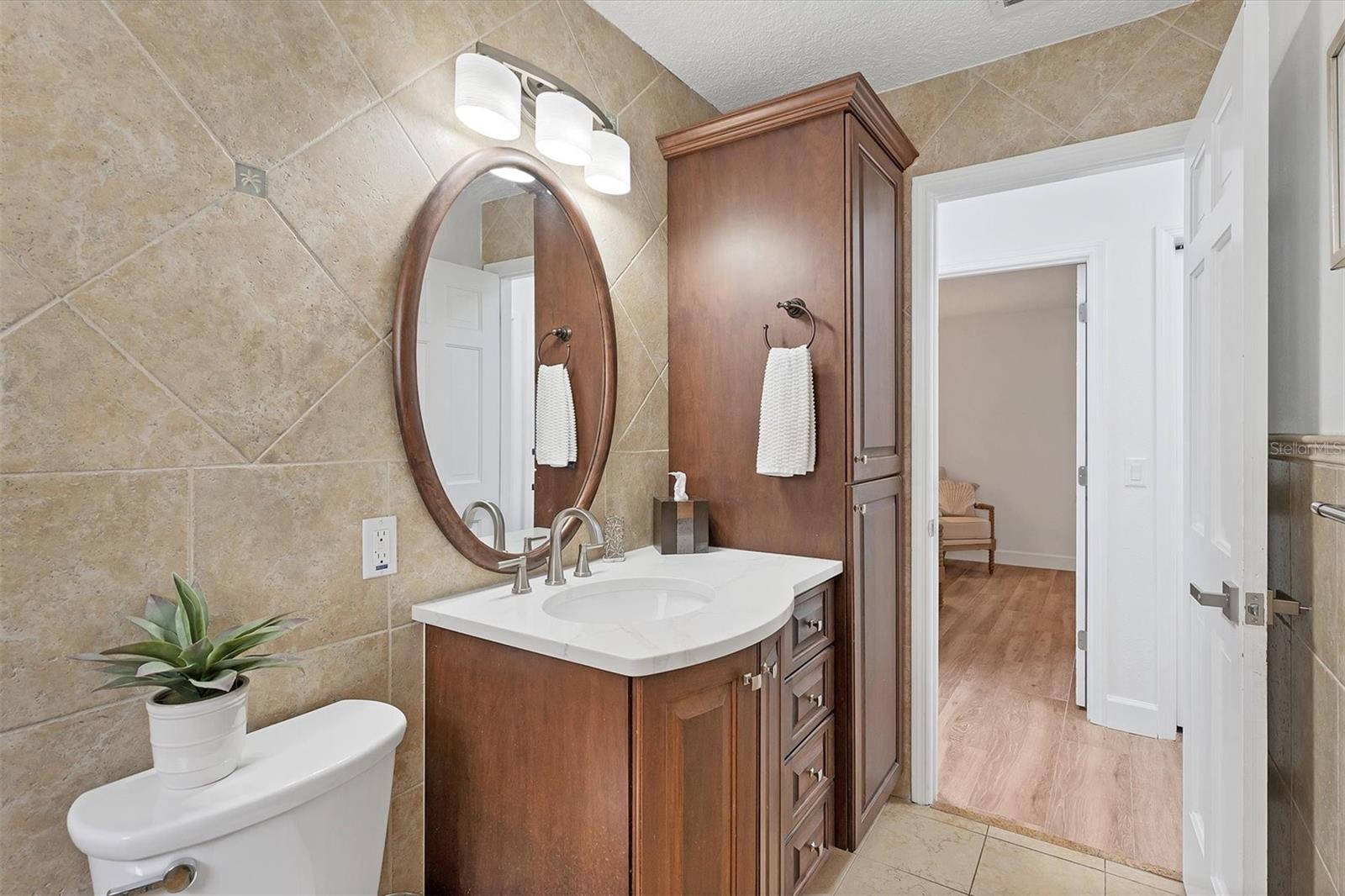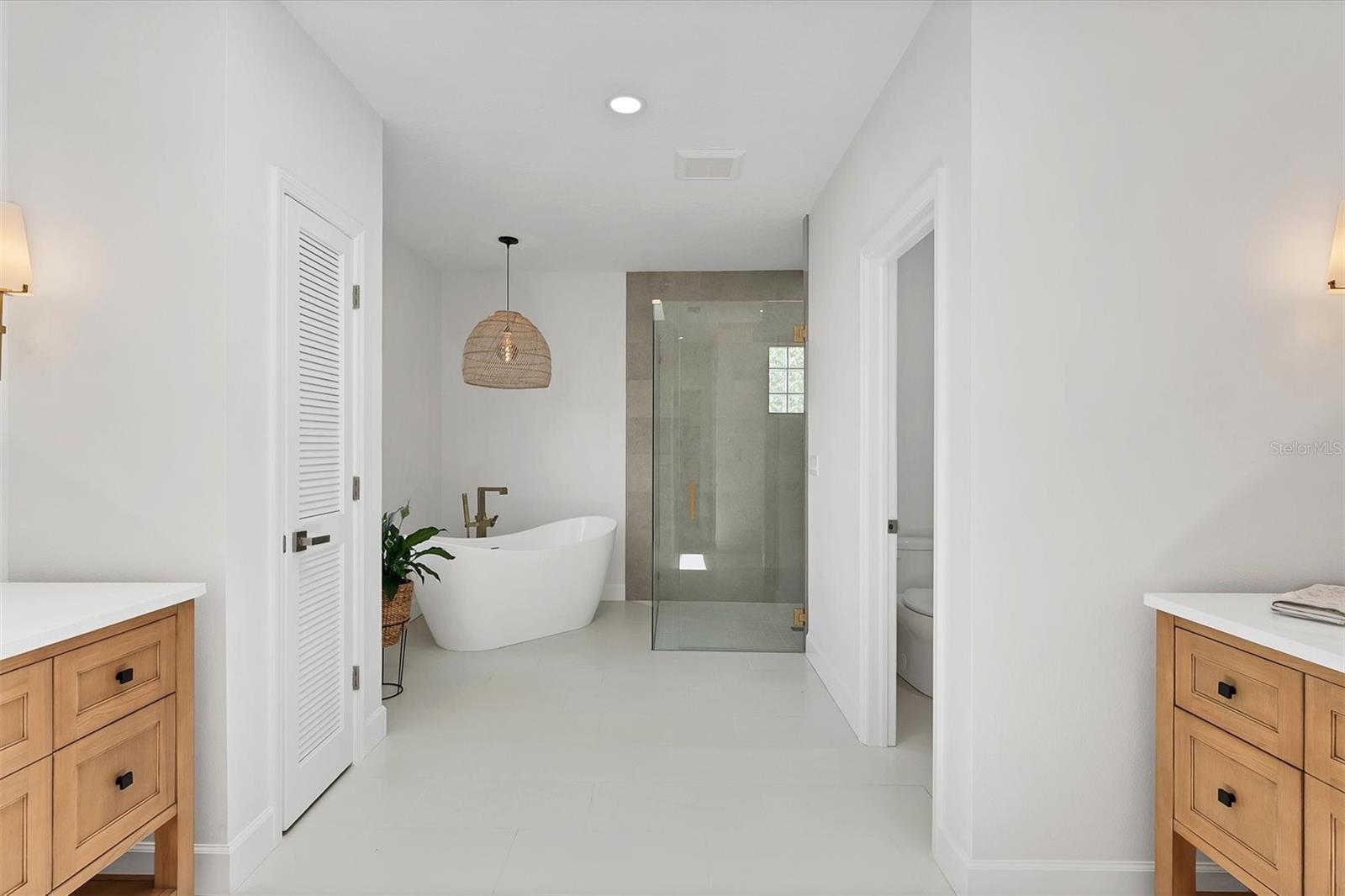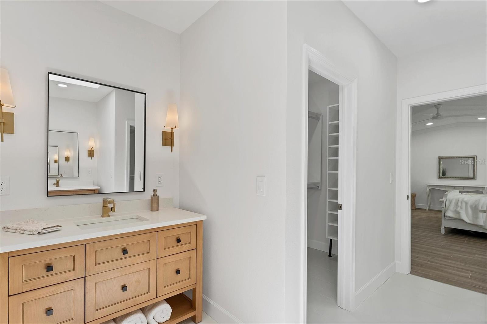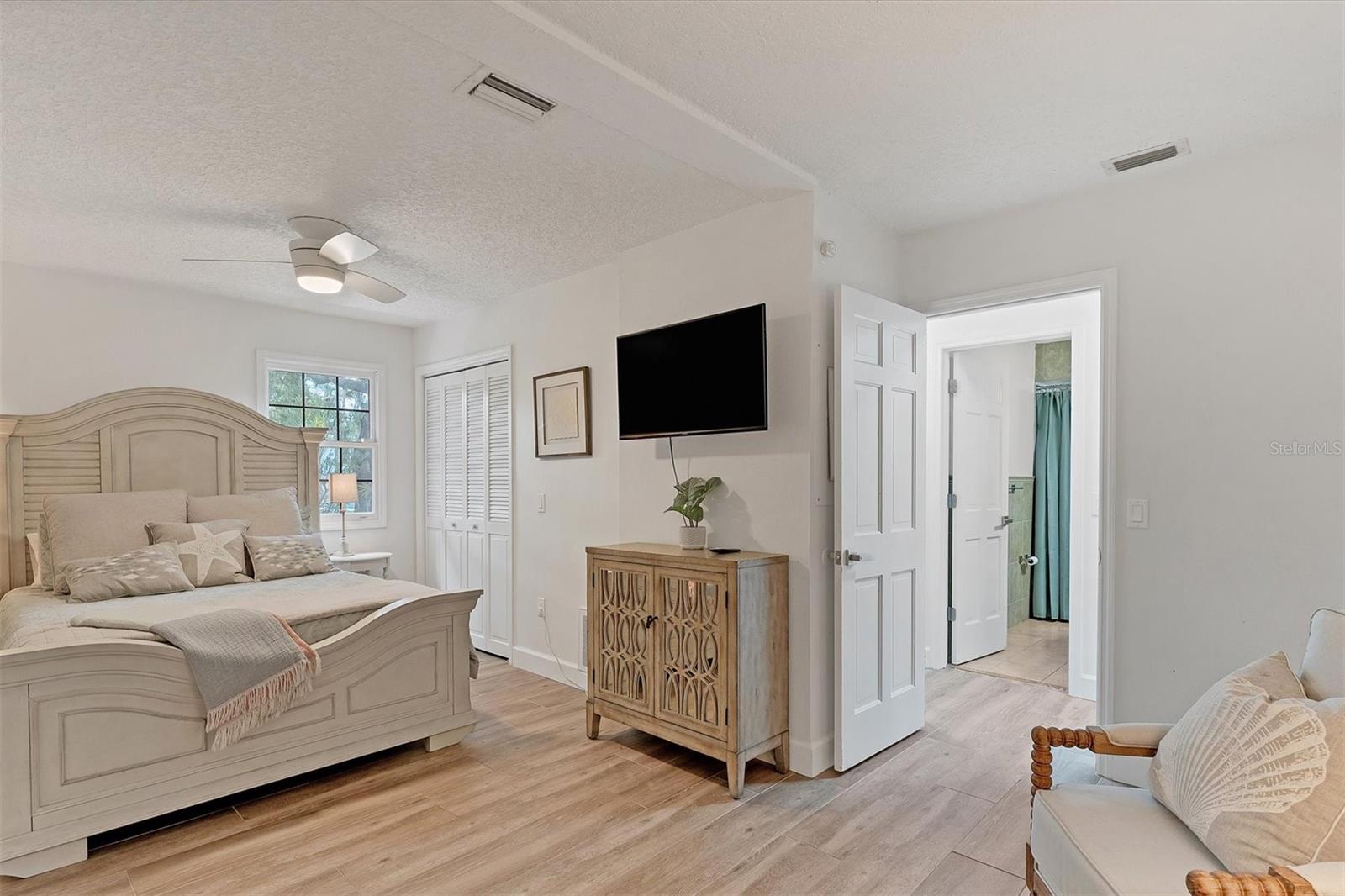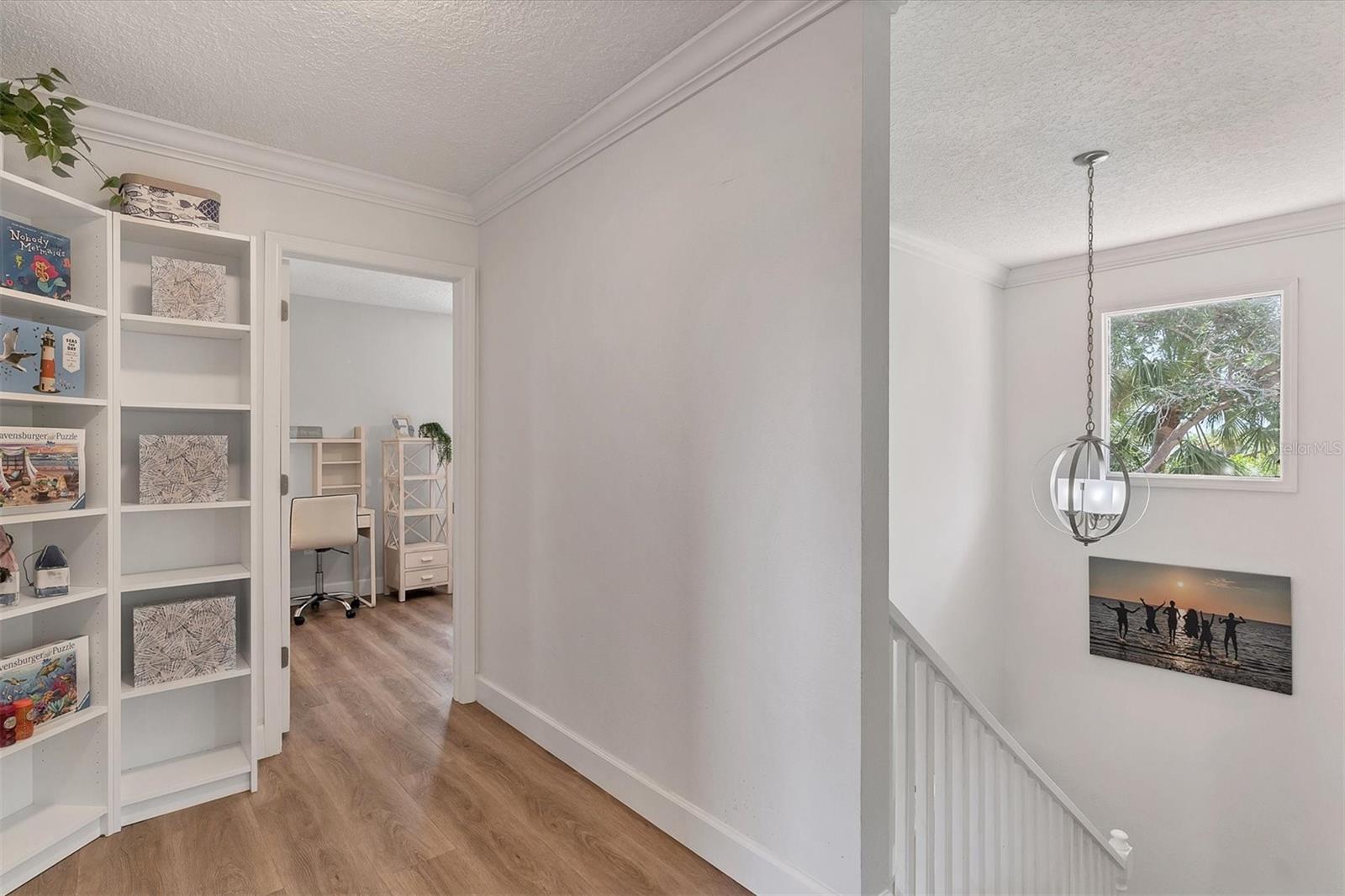 Welcome to this rare gem on an exceptionally private oversized .68-acre lot at the end of a cul-de-sac with 130-foot waterfront seawall on a deep-water canal with direct access to the Gulf of Mexico. The property is surrounded by a natural preserve with views of a state protected wildlife sanctuary home to Florida’s magnificent birds, wildlife and abundant marine life, making this one of the most private, peaceful and serene settings on the west coast. This 5-bedroom plus office, 4-bath home has undergone a half million-dollar renovation incorporating coastal sophistication and charm. Most of living space is on the first floor with light oak porcelain plank tile running seamlessly throughout and cloud white walls create an elegant and peaceful beach atmosphere. The spectacular family room has white wood-planked high vaulted ceilings, large gas burning fireplace, expansive 12-foot sliding glass doors that fill the space with abundant tranquil light leading to a covered and screened deck that extends the full length of the home and massive 30K gallon 9’ deep heated pool with diving board, all overlooking the magnificent water vistas beyond. The newly renovated cook’s kitchen has elegant white quartz countertops throughout, a built-in Bosch double oven/microwave, Thermador 36” gas range/oven with convection and internal thermometer, stainless-steel hood, Samsung refrigerator/freezer and oversized deep stainless-steel sink situated at a large window overlooking the amazing waterscape. Lots of beautiful white shaker-style cabinets with pull-out drawers including floor to ceiling pantry cabinets with an oversized center island designed for prep and seating sure to be a gathering center of the home. The picturesque vistas extend to the welcoming entertainment/wet bar area with its wide sliding glass doors that open to the deck and water beyond. There is a wine cooler, mini refrigerator, continuous ice maker and a beautiful quartz countertop bar with ample seating around. Double french doors open to an elegant private office with floor to ceiling built-in cabinets and a large classic bay window for natural light. The master bedroom has a gorgeous new spa-like ensuite bathroom with dual vanities, his & her walk-in closets, water closet, frameless glass shower and sumptuous free-standing soaking tub. Second level has 3 beds/2 bath, one has an ensuite bathroom. This property includes an amazing detached 24’ x 18’ “casita” currently designed in a light and airy coastal vibe to house extended guests with a portable sink, mini refrigerator and coffee maker easily converted to a game room, gym or artist’s enclave. There is also a large detached 2 car garage. The expansive seawall welcomes maritime enthusiasts with a stationary and floating dock for ease loading kayaks for an aquatic adventure. At days end, retreat to the large dockside deck to take in a captivating Gulf Coast sunset while watching dolphins frolic about. Gulf Harbors Woodlands Community has access to tennis facilities, pool and boat ramp with options to join the private Gulf Harbors Beach Club for $200/year with its white sandy beach, covered picnic tables and grilling stations, perfect for large gatherings. There’s also an option to join Gulf Harbors Yacht Club where you can meet new friends, partake in social events, and enjoy the best food and drink in the area. The perfect combination of luxurious privacy and a thriving social life. This Oasis is Florida living at its finest!