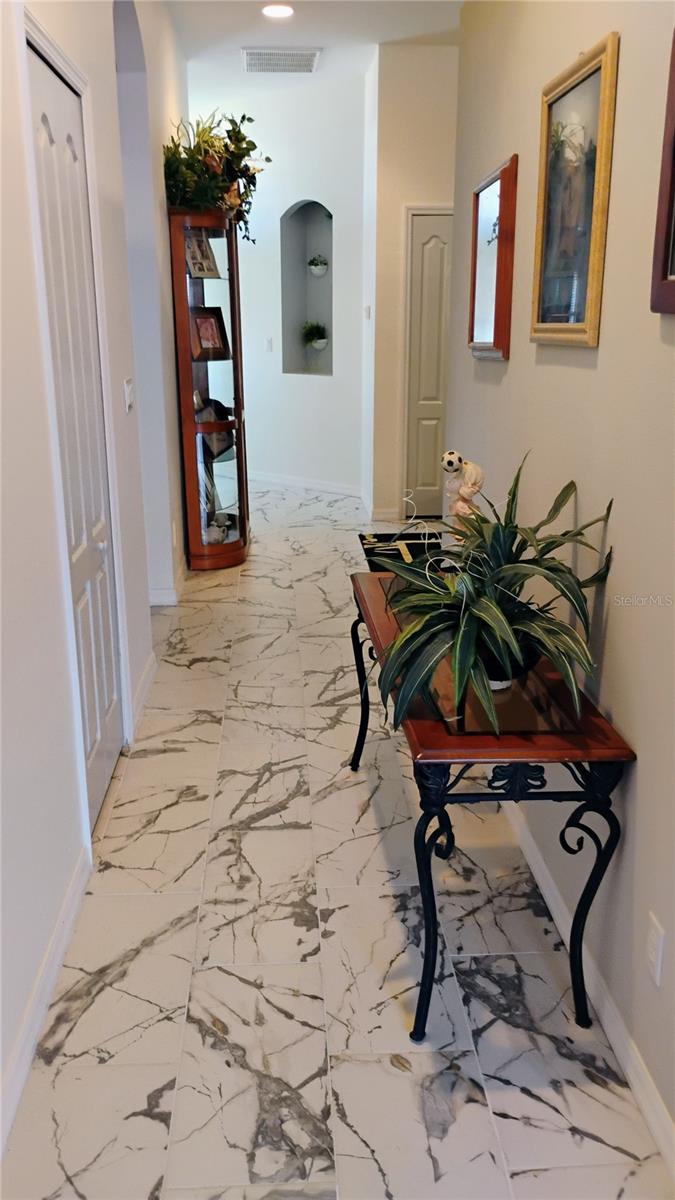 Come see this spacious beautifully updated 2/2 villa pet friendly Gated Golf Community of Summertree! Walk into 10' ceilings with all new modern lighting fixtures. Beautiful, updated kitchen new quartz counters with integrated single bowl sink. New glass tile backsplash. New marbled tile flooring. New under counter lighting. New gold faucet with sprayer. Dishwasher 6 months old water softener 2019. Water heater replaced 2021. Master bath has new Quartz counters with integrated sink new vanity new tile flooring. Guest bath has new Clean-Cut Convertible Walk in tub (cost $1000) and new tile flooring. New paint throughout. Roof replaced by HOA 11/2021. Ext HOA painted 11/21. Come enjoy all amenities at beautiful Clubhouse including golf, tennis, fitness center, heated pool, card room, hot tub and more. Dances in entertainment room throughout the year. The HOA fees cover Spectrum cable, Spectrum high speed internet, lawn and sprinkle maintenance including weed control, irrigation water (average water bill currently $60) and trash pickup and all exterior maintenance. The lot is larger than the interior lots and borders the wall with no neighbor on east side so large, shaded side yard on cul-de-sac. Plantation shutters throughout keep the electricity bill at a low average of $90 for current owner. In wall pest control and central vacuum. Nothing to do but enjoy it's all been done!