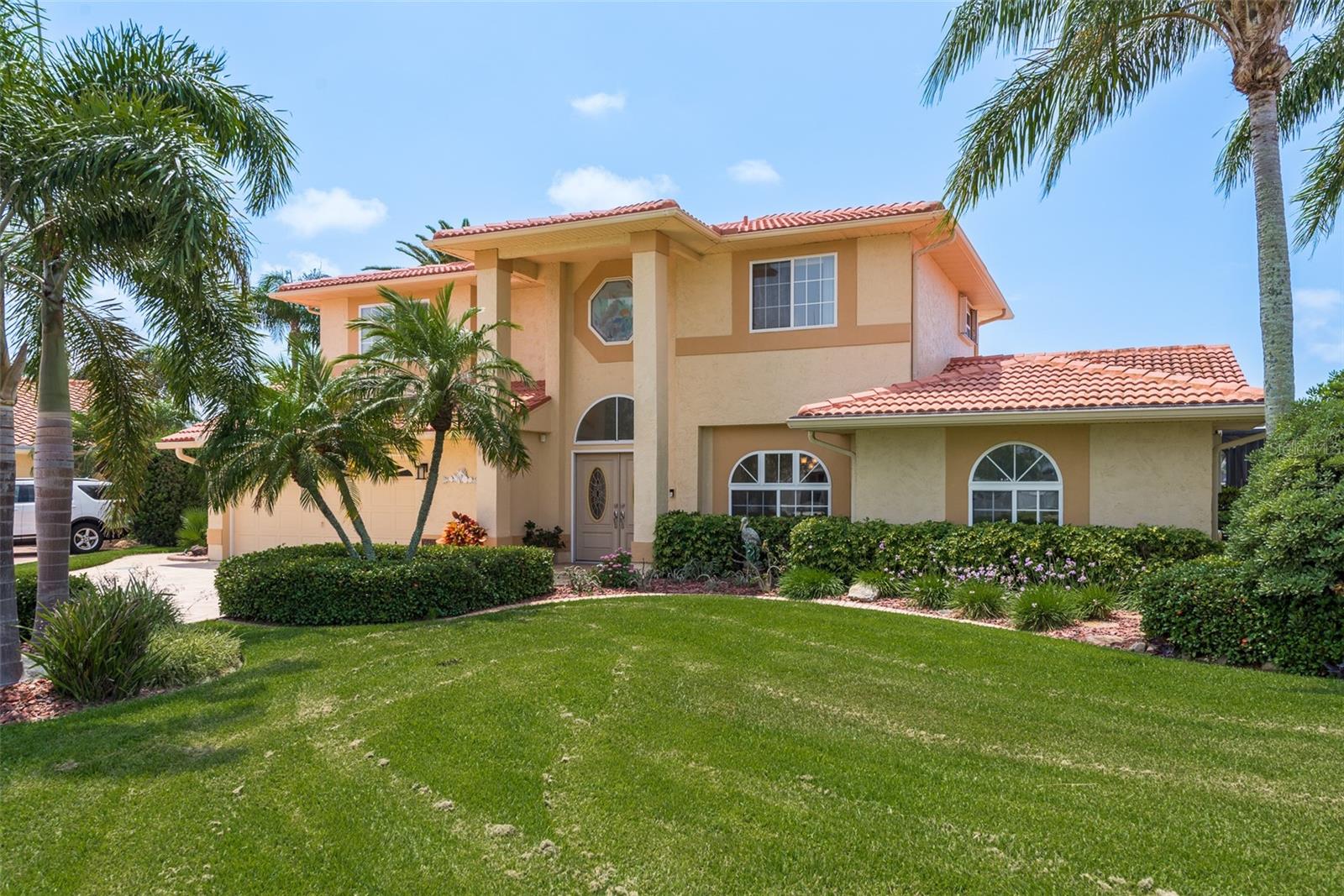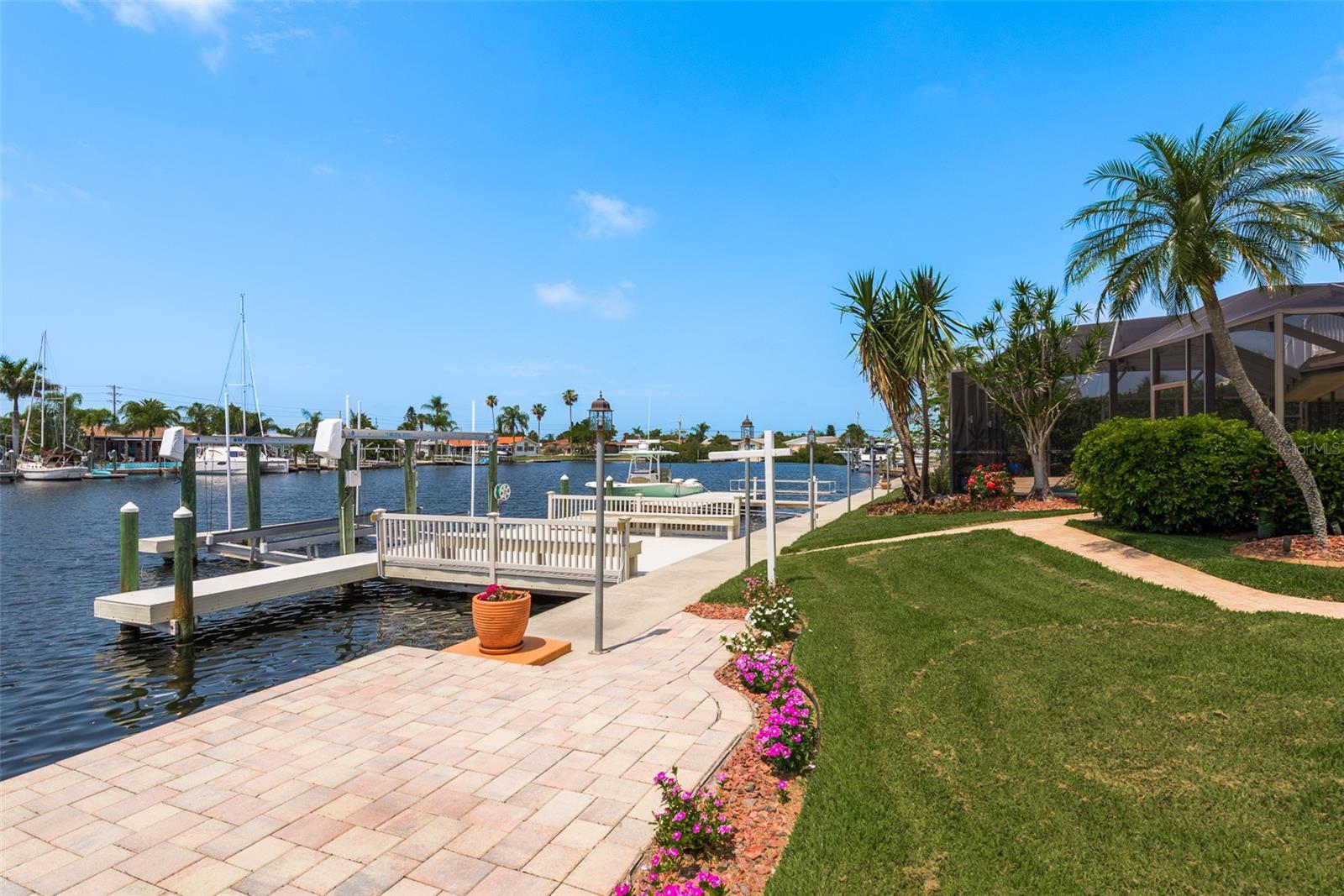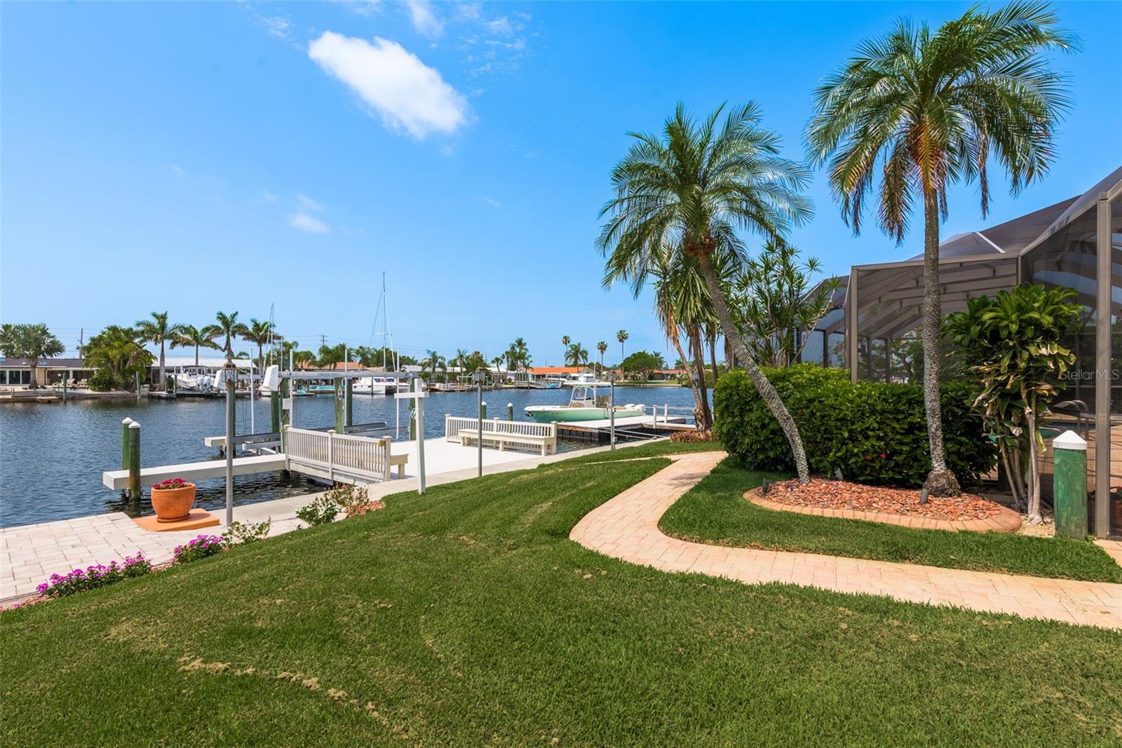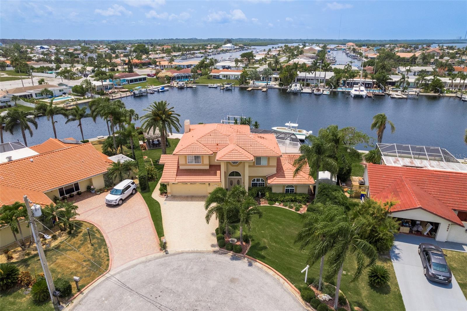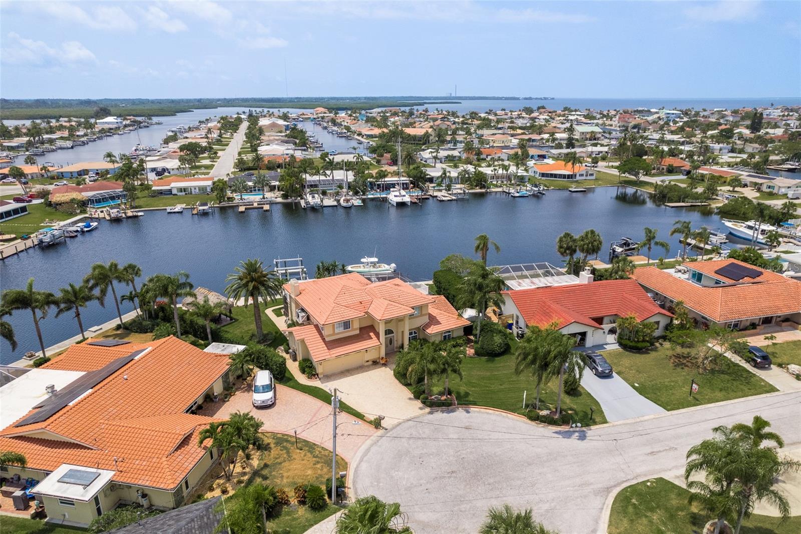 Discover your coastal paradise in an exquisite waterfront gem in the sought-after Gulf Harbors community! This 4 bedroom with den/office with 3 ½ bath impeccably maintained home is nestled on a quiet cul-de-sac and includes a fenced yard, mature landscaping, and privacy hedges around a refreshing screened pool, Tikki hut and bar under a covered lanai—steps away from 147’ of seawall / Bulkhead, a 24,000 lb boat lift, and two docks on a deep water canal. Whether you enjoy exploring the Gulf of Mexico, the fabulous restaurants, microbreweries, and shops in historic New Port Richey, or entertaining at home with surround sound throughout the open floor plan, you’ll enjoy immersing yourself in all this captivating property and community. With updated amenities, open design, and unrivaled proximity to the Gulf, owners of this 2,915 square foot home in a golf-cart community have access to a private beach, civic association, yacht club, two boat ramps, clubhouse, and a community park. With a formal dining room, bar, office, custom-designed kitchen with stainless steel appliances, granite counters, breakfast bar, and second-floor balconies with gorgeous ocean views, this is a rare opportunity for discerning buyers to own a slice of paradise. Contact me today for a list of upgrades, more information about this ultimate escape (a.k.a. your new home), and to schedule your private tour by water or land. Experience coastal living at its finest!