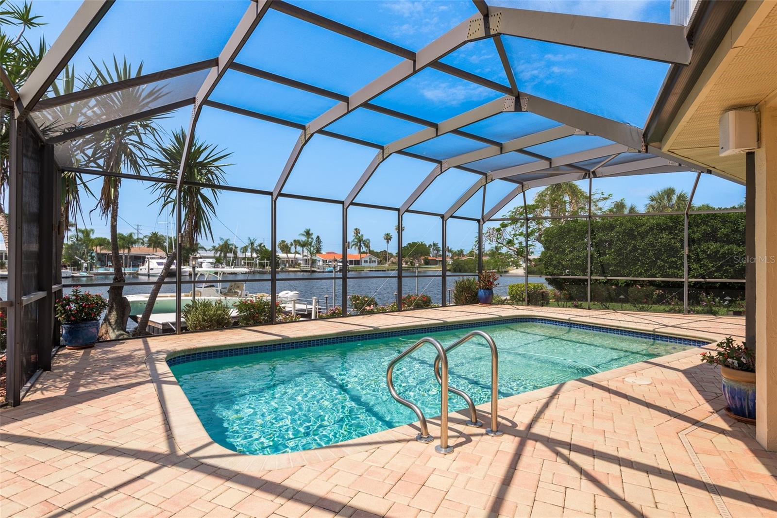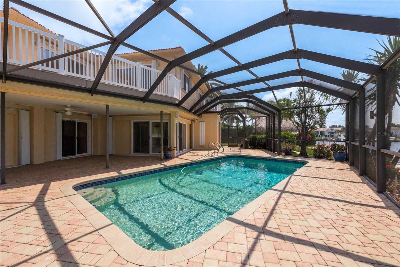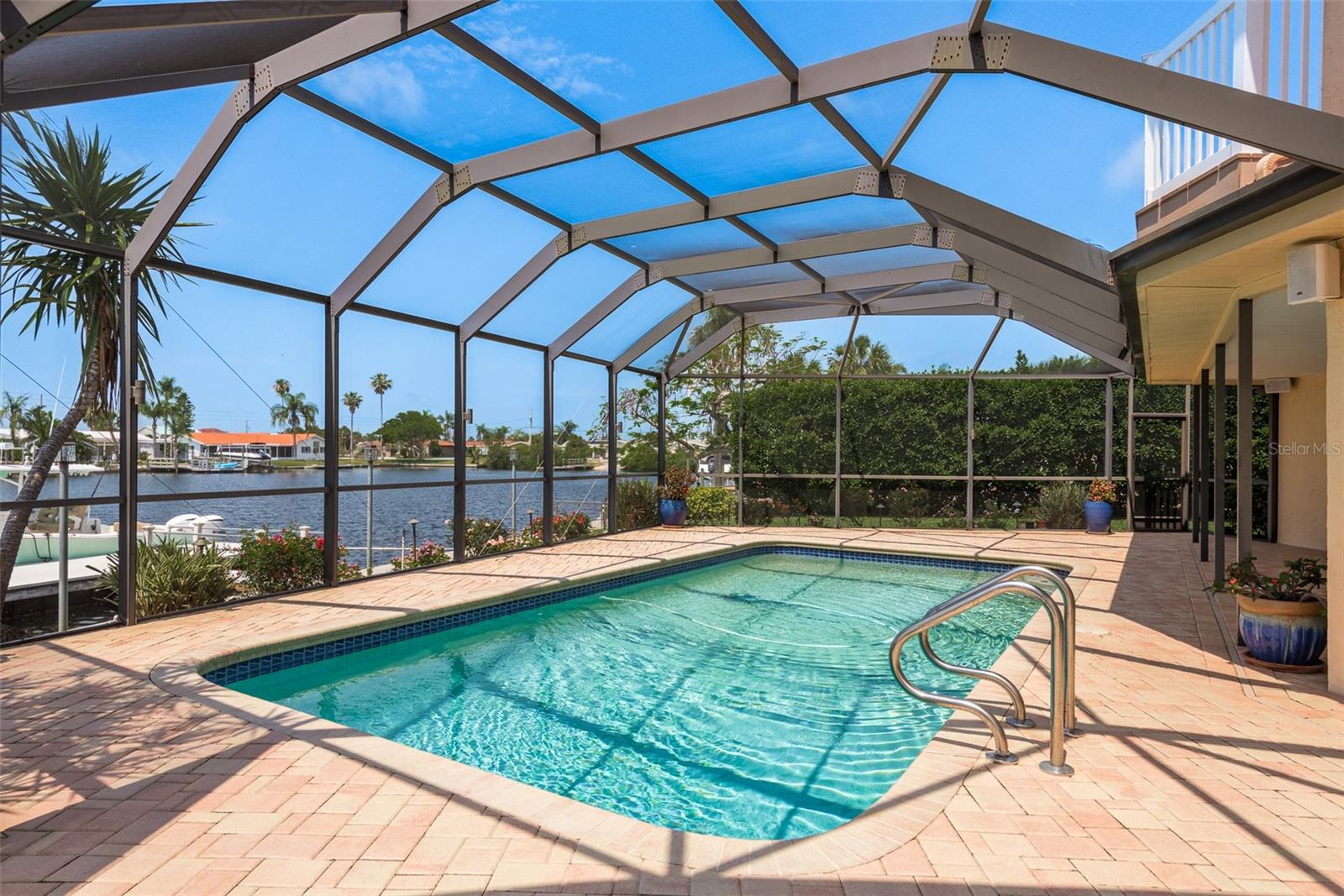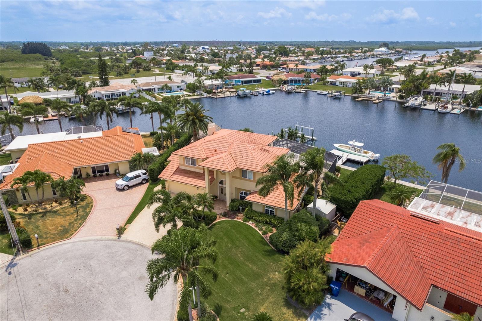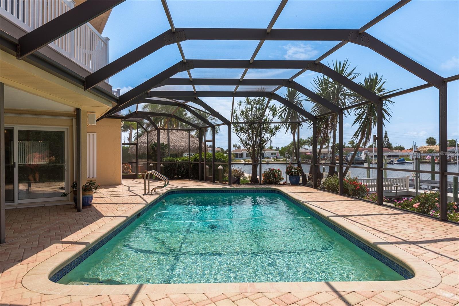 Discover your coastal paradise in an exquisite waterfront gem in the sought-after Gulf Harbors community! This 4 bedroom with den/office with 3 ½ bath impeccably maintained home is nestled on a quiet cul-de-sac and includes a fenced yard, mature landscaping, and privacy hedges around a refreshing screened pool, Tikki hut and bar under a covered lanai—steps away from 147’ of seawall / Bulkhead, a 24,000 lb boat lift, and two docks on a deep water canal. Whether you enjoy exploring the Gulf of Mexico, the fabulous restaurants, microbreweries, and shops in historic New Port Richey, or entertaining at home with surround sound throughout the open floor plan, you’ll enjoy immersing yourself in all this captivating property and community. With updated amenities, open design, and unrivaled proximity to the Gulf, owners of this 2,915 square foot home in a golf-cart community have access to a private beach, civic association, yacht club, two boat ramps, clubhouse, and a community park. With a formal dining room, bar, office, custom-designed kitchen with stainless steel appliances, granite counters, breakfast bar, and second-floor balconies with gorgeous ocean views, this is a rare opportunity for discerning buyers to own a slice of paradise. Contact me today for a list of upgrades, more information about this ultimate escape (a.k.a. your new home), and to schedule your private tour by water or land. Experience coastal living at its finest!