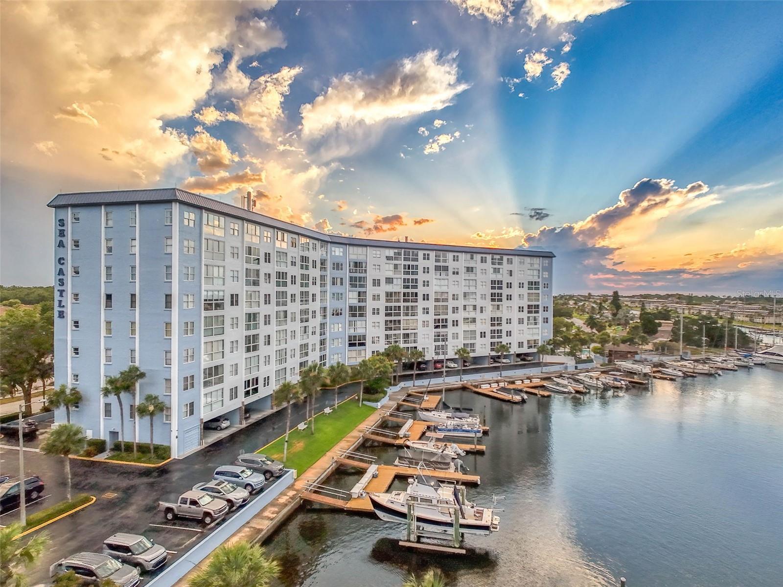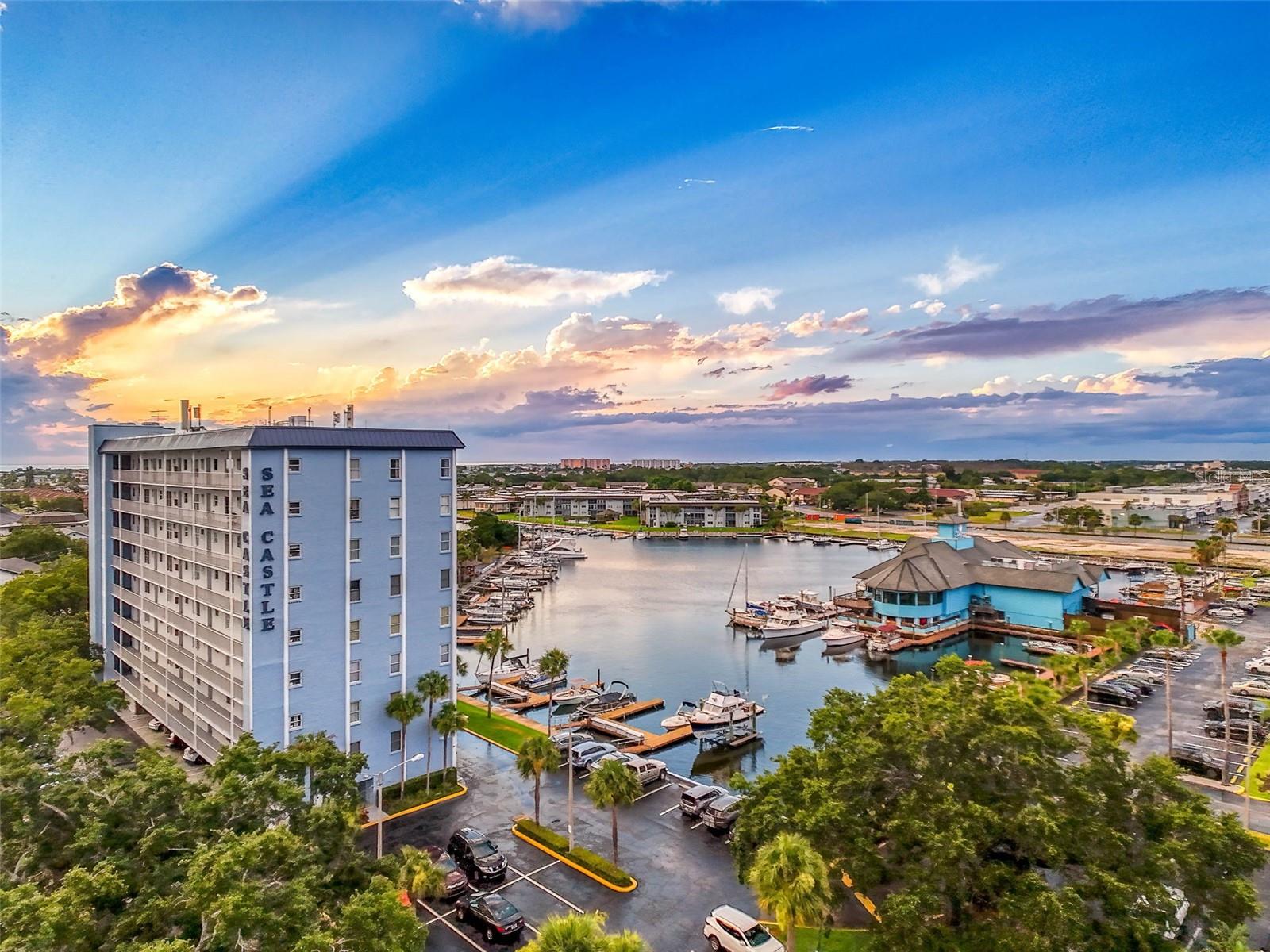 Spectacular condo that has upgrades galore with breath taking views of the harbor. This condo offers the high life on the water! Beautiful spacious 2-bedroom, 2-bath unit in the Sea Castle. The condo is situated with boating access to the Gulf of Mexico. Your private oasis overlooks the marina with gorgeous views! Main entrance to the building includes a wireless call box and wireless entry for owners. Main floor has security cameras throughout. Residents of the Sea Castle have dedicated, permitted parking spots. Owners also enjoy a decorated lobby, library, and dock for fishing or simply watching the beautiful sunsets. Pool area includes the use of outdoor BBQ grill, shuffleboard, heated pool, gazebo, and separate storage unit. Boat slips are available for a separate fee through the management company. Residents can also enjoy Gulf Harbors Private Beach for an annual fee. The Sea Castle is near public transportation and shopping.