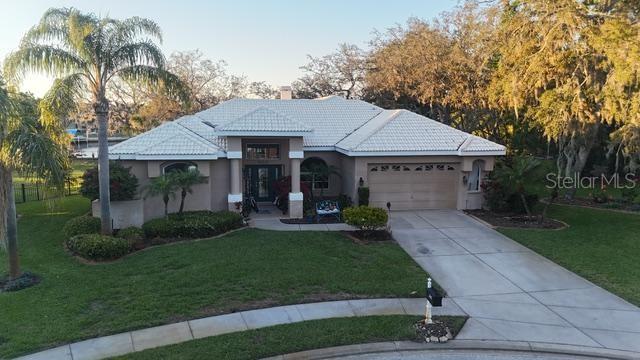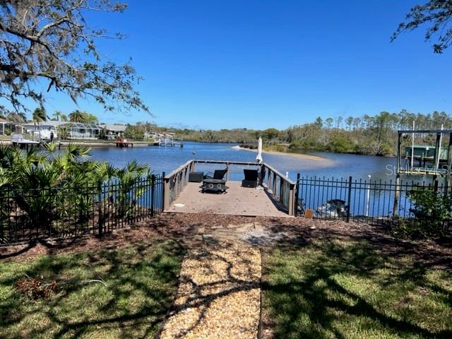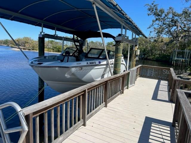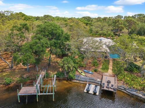 HIGH & DRY, GULF ACCESS!! This stunning waterfront pool home is nestled on a cul-de-sac with over half an acre of beautifully manicured landscape. Located in the exclusive and very private gated community of Riviera, your slice of paradise awaits! The home boasts not one but TWO composite docks where you can enjoy breathtaking views of the Anclote River and incredible sunsets. The 8000 lb covered lift is ready to launch your boat to the world-famous Tarpon Springs sponge docks which are just a short boat ride away with several waterfront restaurants. The large kitchen island with high end appliances and the fully screened lanai will make entertaining a breeze. This single-story home has a split layout for added privacy. The master suite features his and hers walk-in closets and a spacious en-suite bath. There are three additional generous bedrooms. There are too many extras to list--just to name a few there is a heated pool, whole house generator, water purifier, a well for irrigation, and a wood burning fireplace in the large family room. There is an outdoor kitchen with BBQ, smoker/pizza oven built in 2023. Enjoy the cooler evenings in the hot tub installed in 2023. You can enjoy watching a great variety of wildlife either from your private dock or the community dock. Manatees, dolphins, mata rays, falcons, hawks and eagles are just few examples of the wildlife that you can find right in your backyard. You can also enjoy fishing from your own dock. The community also provides a private boat ramp for the homeowners use. Zoned for excellent schools: Trinity Oaks Elementary, Seven Springs Middle, &Mitchell HS. Close to shopping, beaches, and the Tampa airport is only 45 minutes away. The home has endured major hurricanes over the last two years with absolutely no flooding nor damage. Shed and electric car charger in garage, they do not convey. Schedule a private showing today and make this your new HOME!