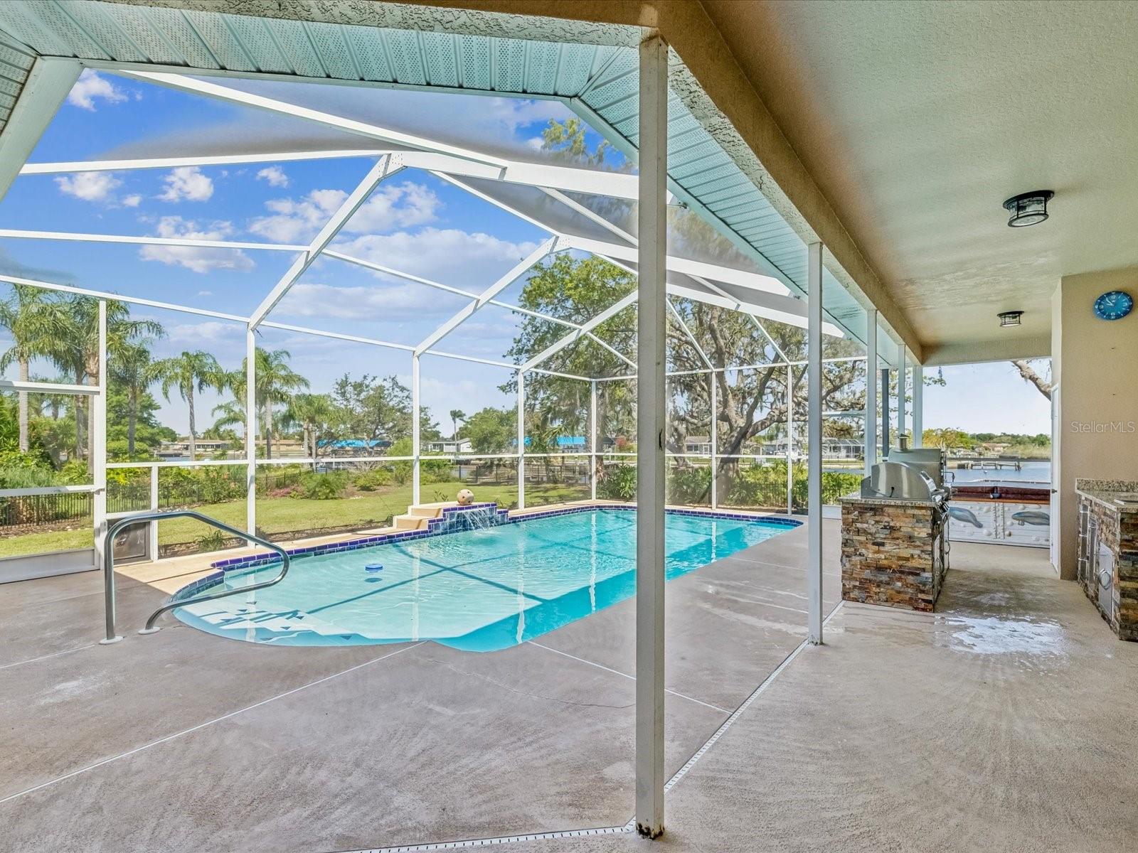 HIGH & DRY, GULF ACCESS!! This stunning waterfront pool home is nestled on a cul-de-sac with over half an acre of beautifully manicured landscape. Located in the exclusive and very private gated community of Riviera, your slice of paradise awaits! The home boasts not one but TWO composite docks where you can enjoy breathtaking views of the Anclote River and incredible sunsets. The 8000 lb covered lift is ready to launch your boat to the world-famous Tarpon Springs sponge docks which are just a short boat ride away with several waterfront restaurants. The large kitchen island with high end appliances and the fully screened lanai will make entertaining a breeze. This single-story home has a split layout for added privacy. The master suite features his and hers walk-in closets and a spacious en-suite bath. There are three additional generous bedrooms. There are too many extras to list--just to name a few there is a heated pool, whole house generator, water purifier, a well for irrigation, and a wood burning fireplace in the large family room. There is an outdoor kitchen with BBQ, smoker/pizza oven built in 2023. Enjoy the cooler evenings in the hot tub installed in 2023. You can enjoy watching a great variety of wildlife either from your private dock or the community dock. Manatees, dolphins, mata rays, falcons, hawks and eagles are just few examples of the wildlife that you can find right in your backyard. You can also enjoy fishing from your own dock. The community also provides a private boat ramp for the homeowners use. Zoned for excellent schools: Trinity Oaks Elementary, Seven Springs Middle, &Mitchell HS. Close to shopping, beaches, and the Tampa airport is only 45 minutes away. The home has endured major hurricanes over the last two years with absolutely no flooding nor damage. Shed and electric car charger in garage, they do not convey. Schedule a private showing today and make this your new HOME!